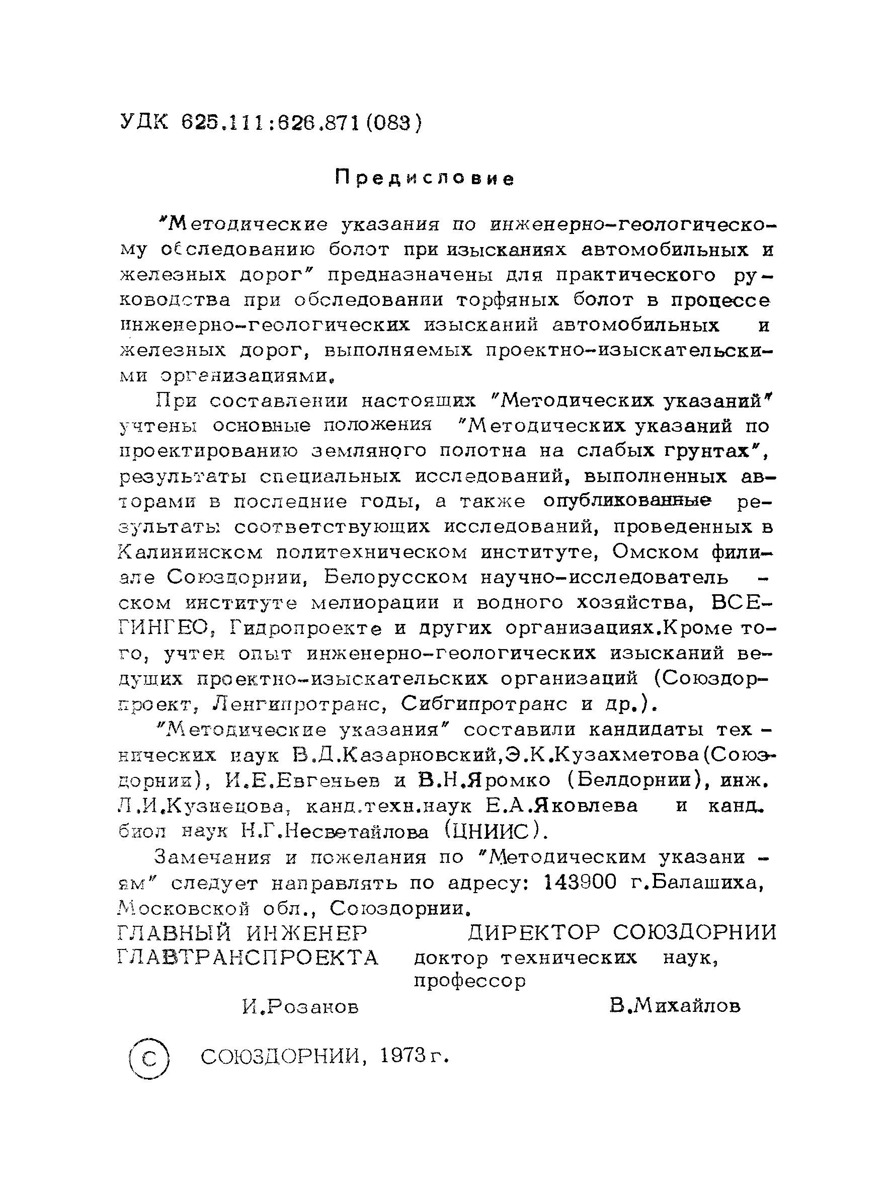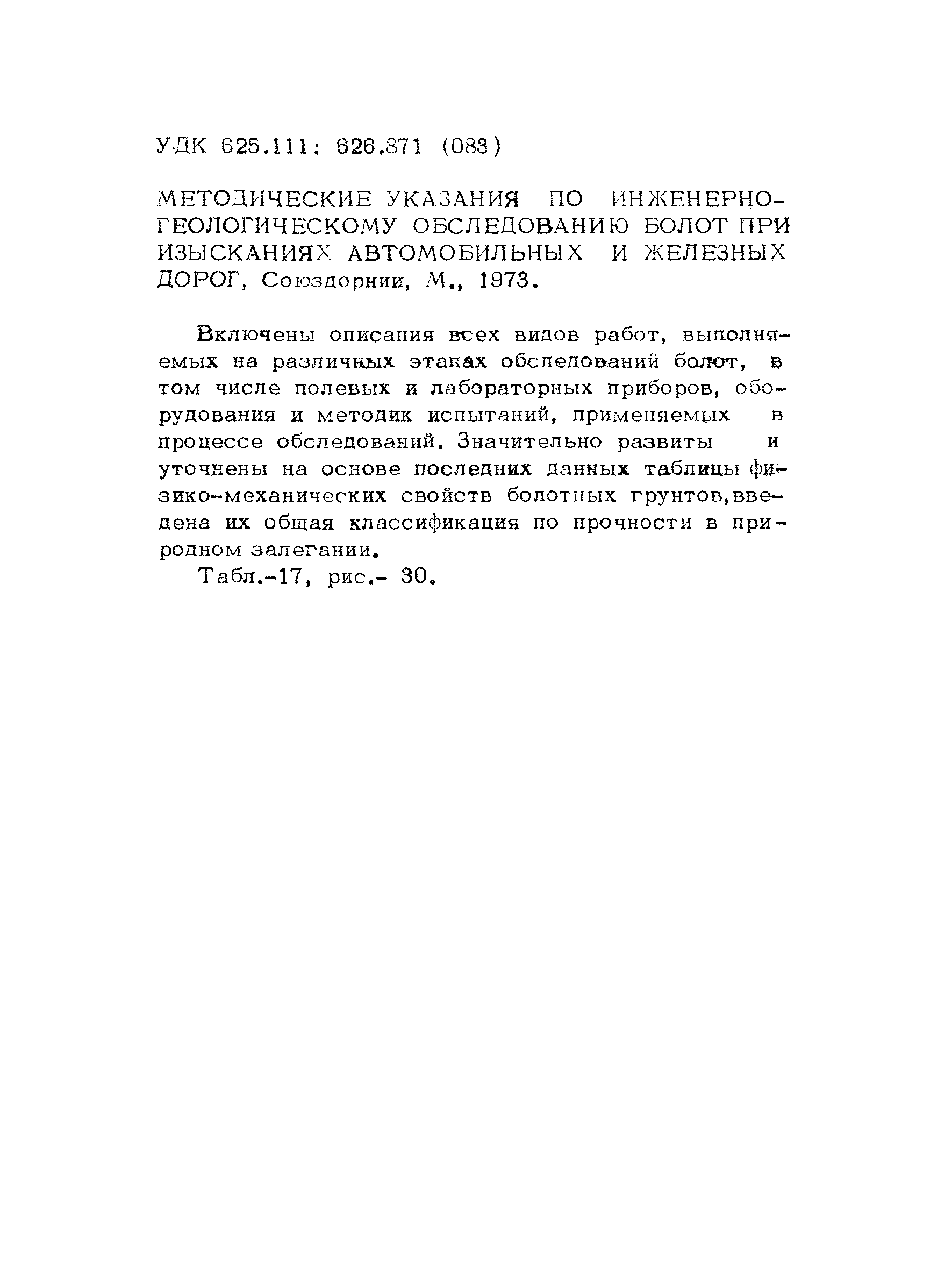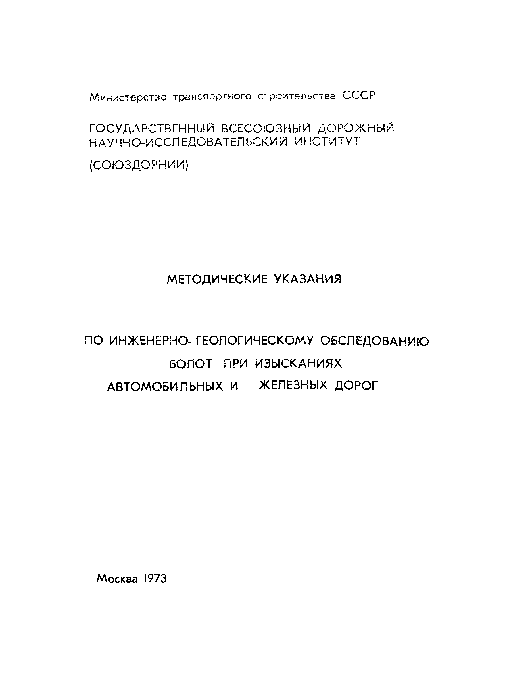 | Название рус.: | Методические указания по инженерно-геологическому обследованию болот при изысканиях автомобильных и железных дорог |