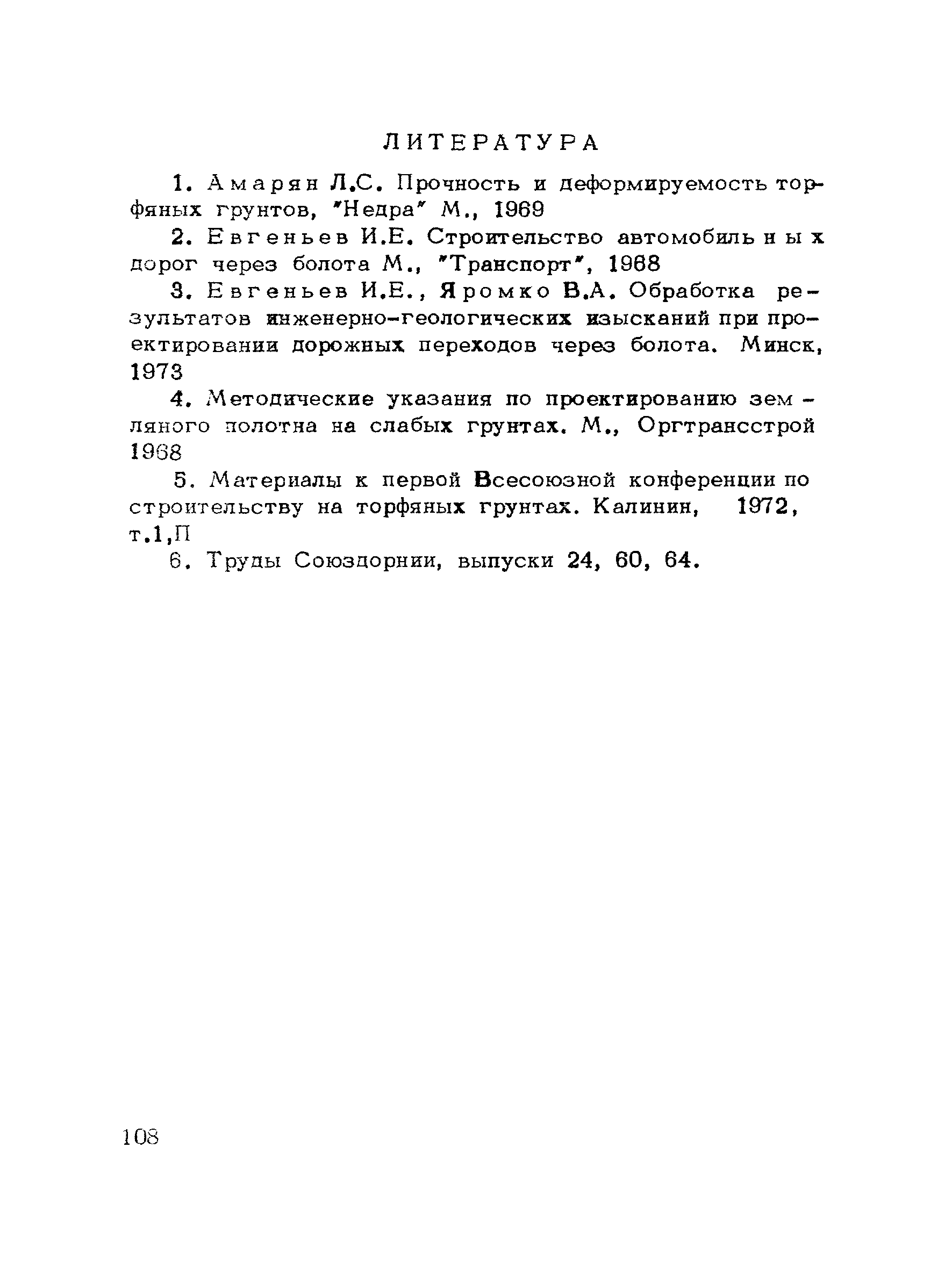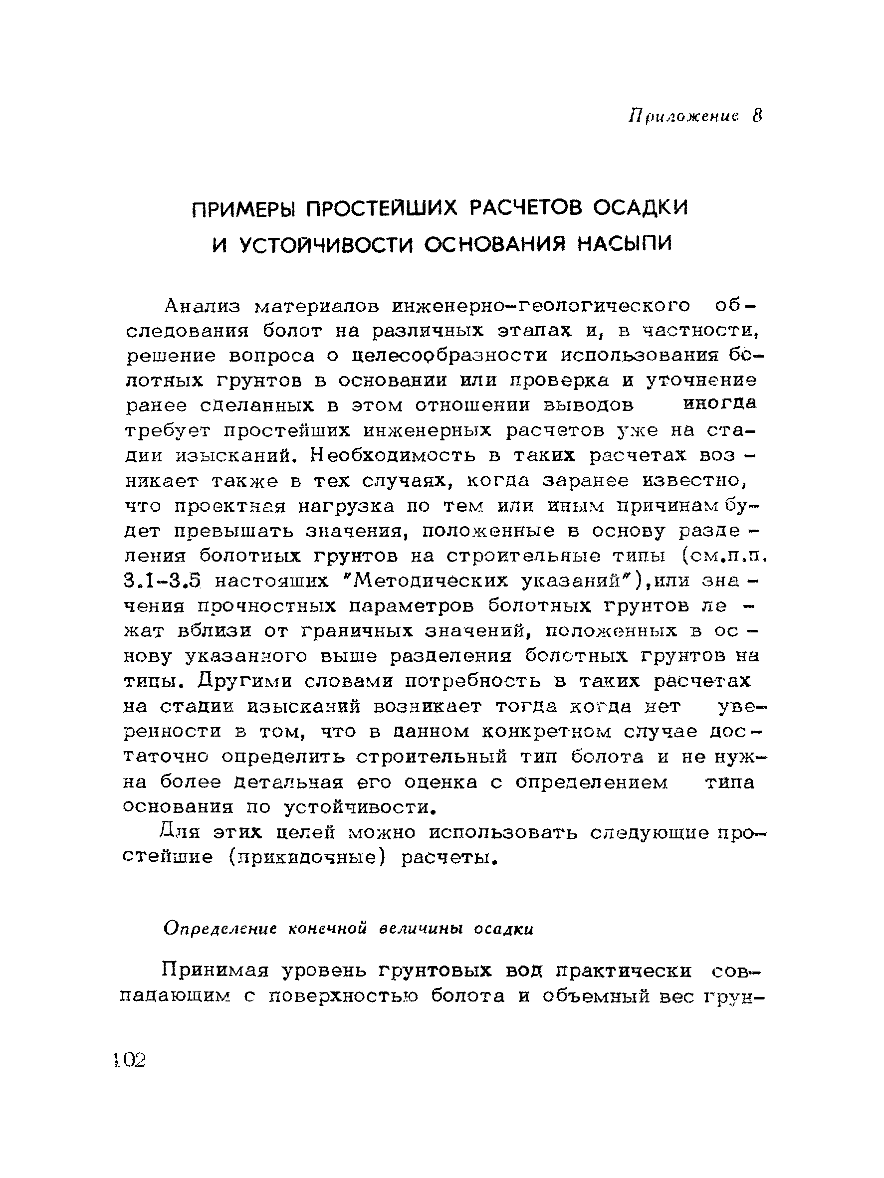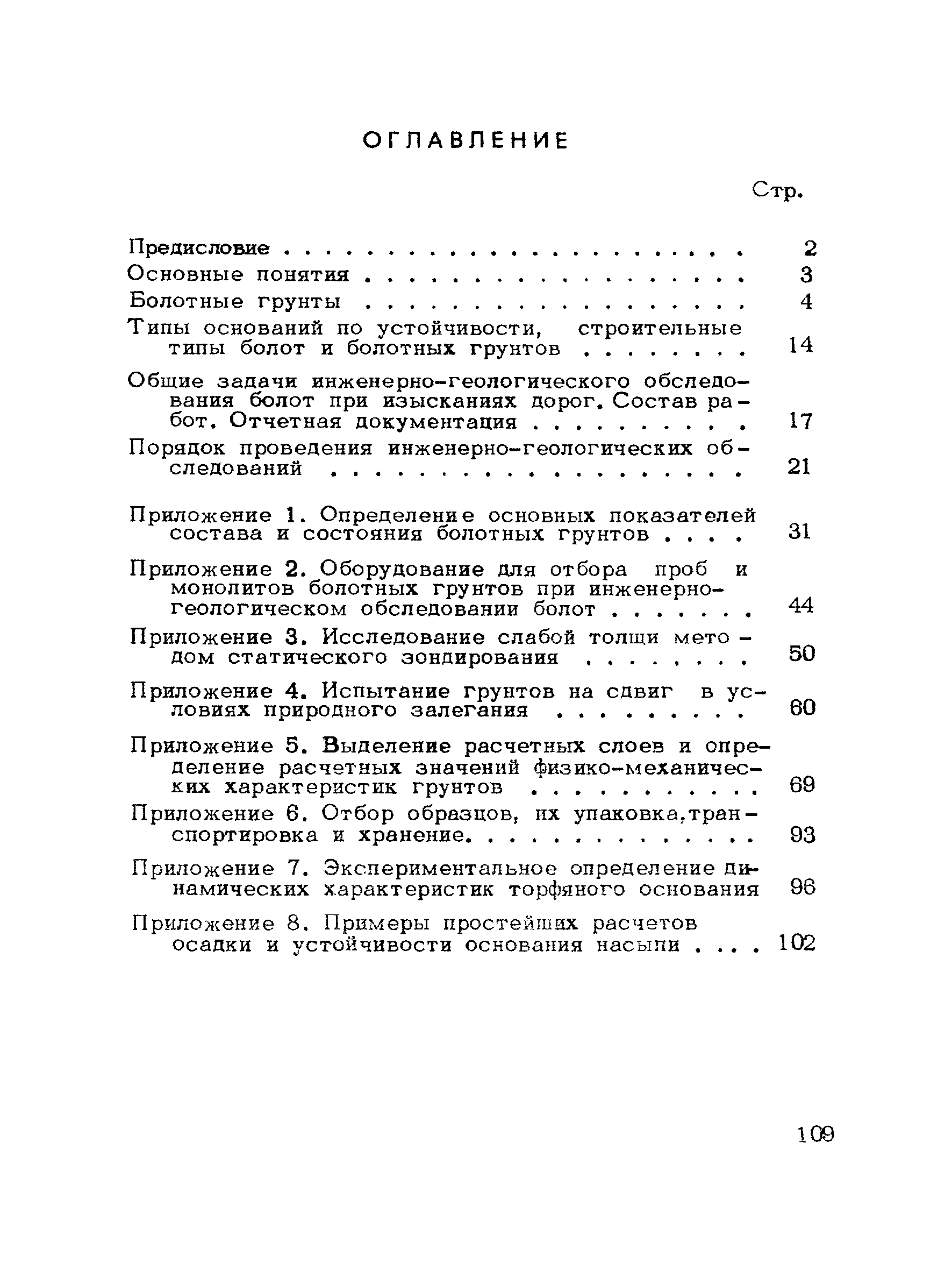 | Оглавление: | Предисловие Основные понятия Болотные грунты Типы оснований по устойчивости, строительные типы болот и болотных грунтов Общие задачи инженерно—геологического обследования болот при изысканиях дорог. Состав работ. Отчетная документация Порядок проведения инженерно—геологических обследований Приложение 1. Определение основных показателей состава и состояния болотных грунтов Приложение 2. Оборудование для отбора проб и монолитов болотных грунтов при инженерно-геологическом обследовании болот Приложение 3. Исследование слабой толщи методом статического зондирования Приложение 4. Испытание грунтов на сдвиг в условиях природного залегания Приложение 5. Выделение расчетных слоев и определение расчетных значений физико—механических характеристик грунтов Приложение 6. Отбор образцов, их упаковка, транспортировка и хранение Приложение 7. Экспериментальное определение динамических характеристик торфяного основания Приложение 8. Примеры простейших расчетов осадки и устойчивости основания насыпи |
