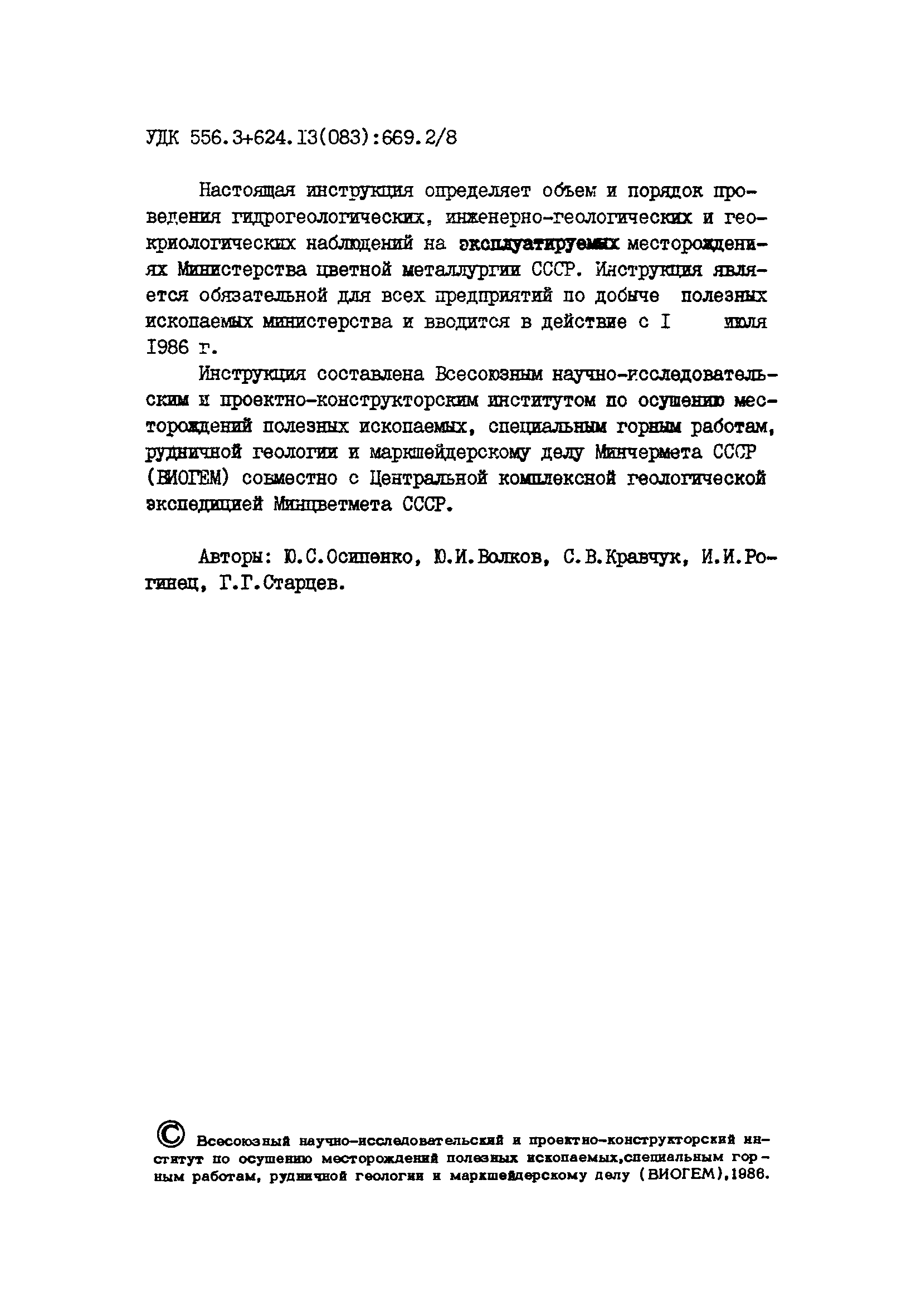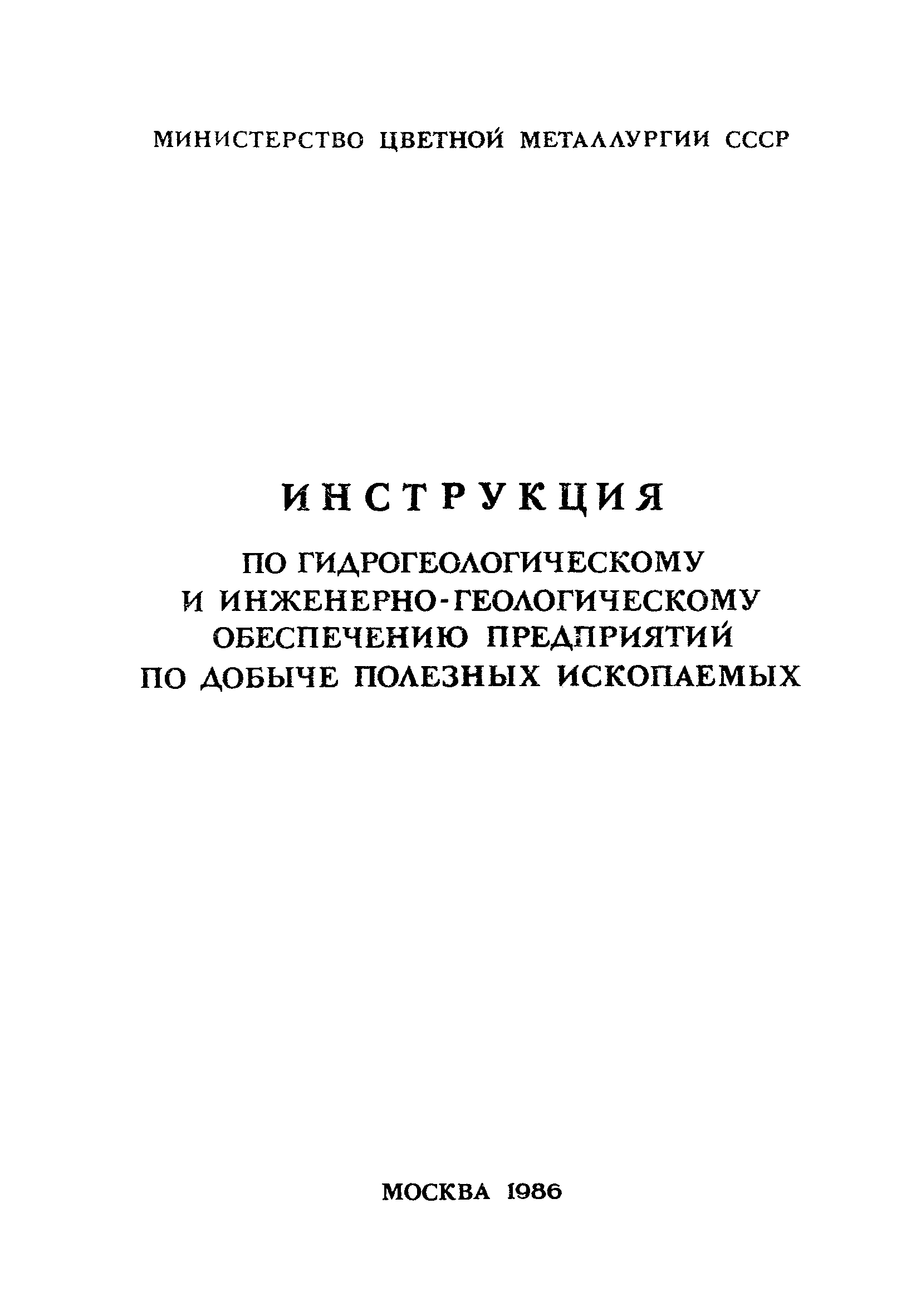 | Название рус.: | Инструкция по гидрогеологическому и инженерно-геологическому обеспечению предприятий по добыче полезных ископаемых |
