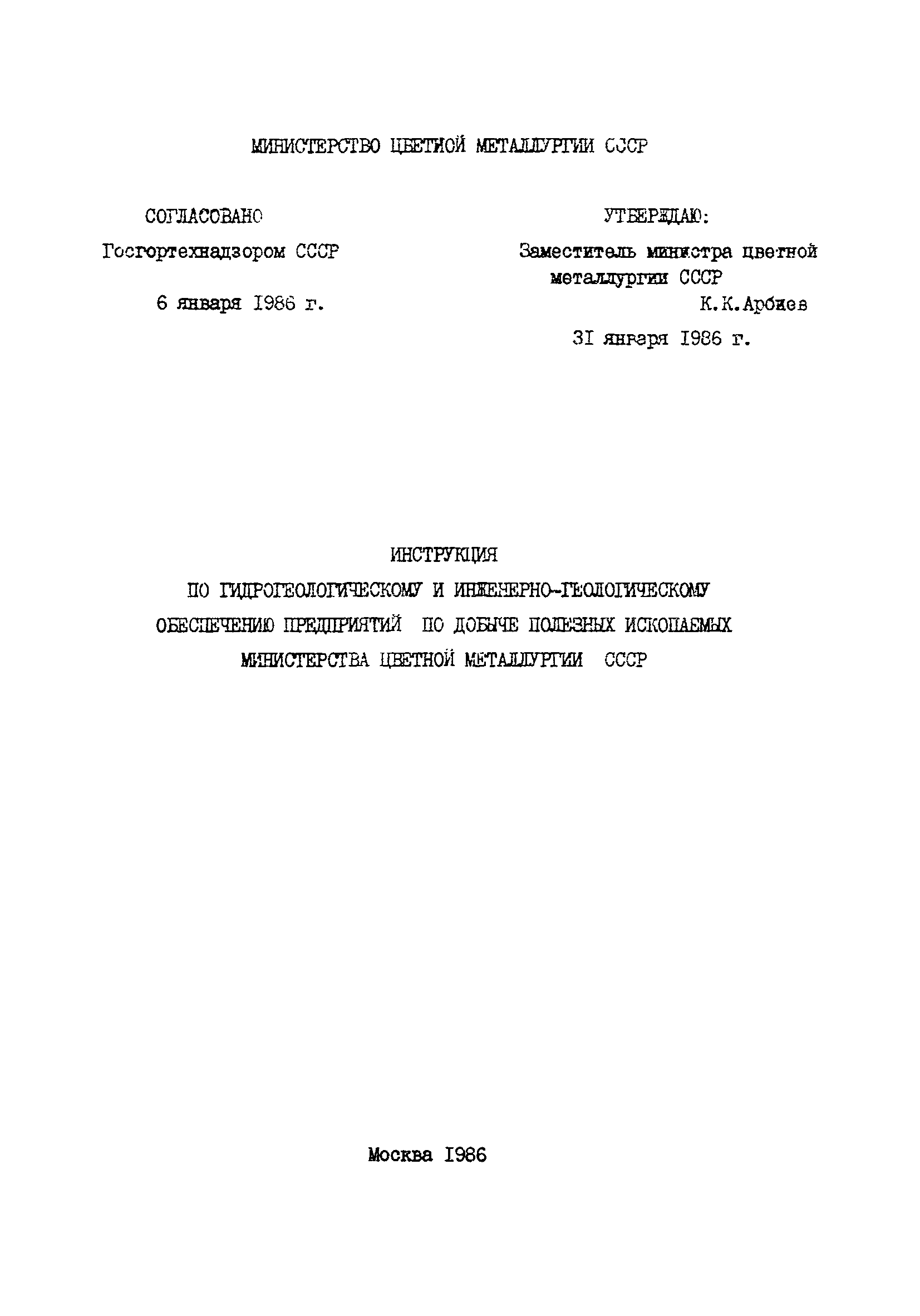 | Утверждён: | 31.01.1986 Министерство цветной металлургии СССР |