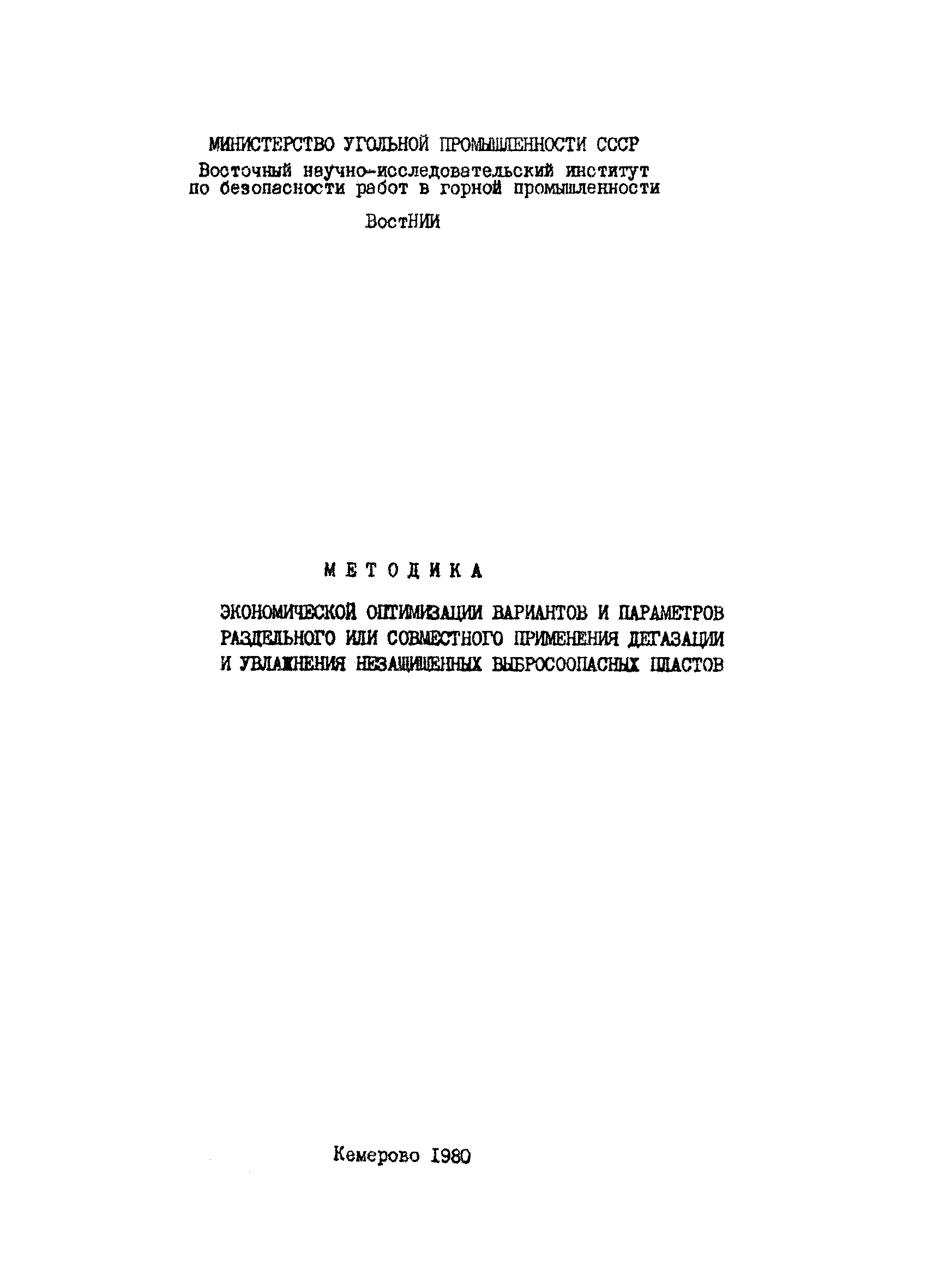 | Название рус.: | Методика экономической оптимизации вариантов и параметров раздельного или совместного применения дегазации и увлажнения незащищенных выбросоопасных пластов |