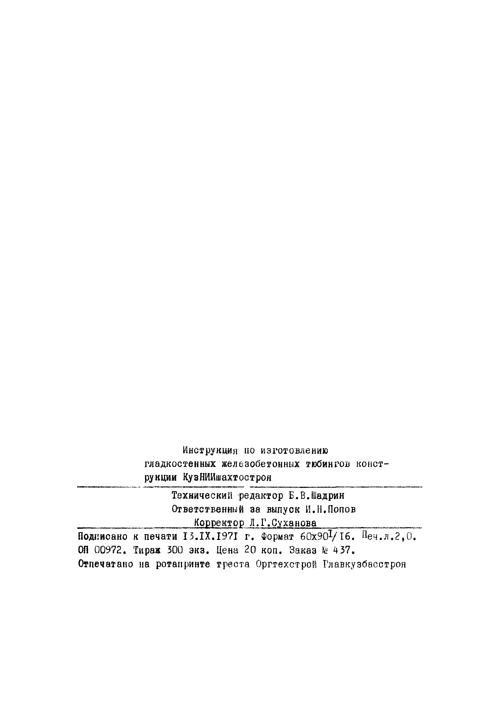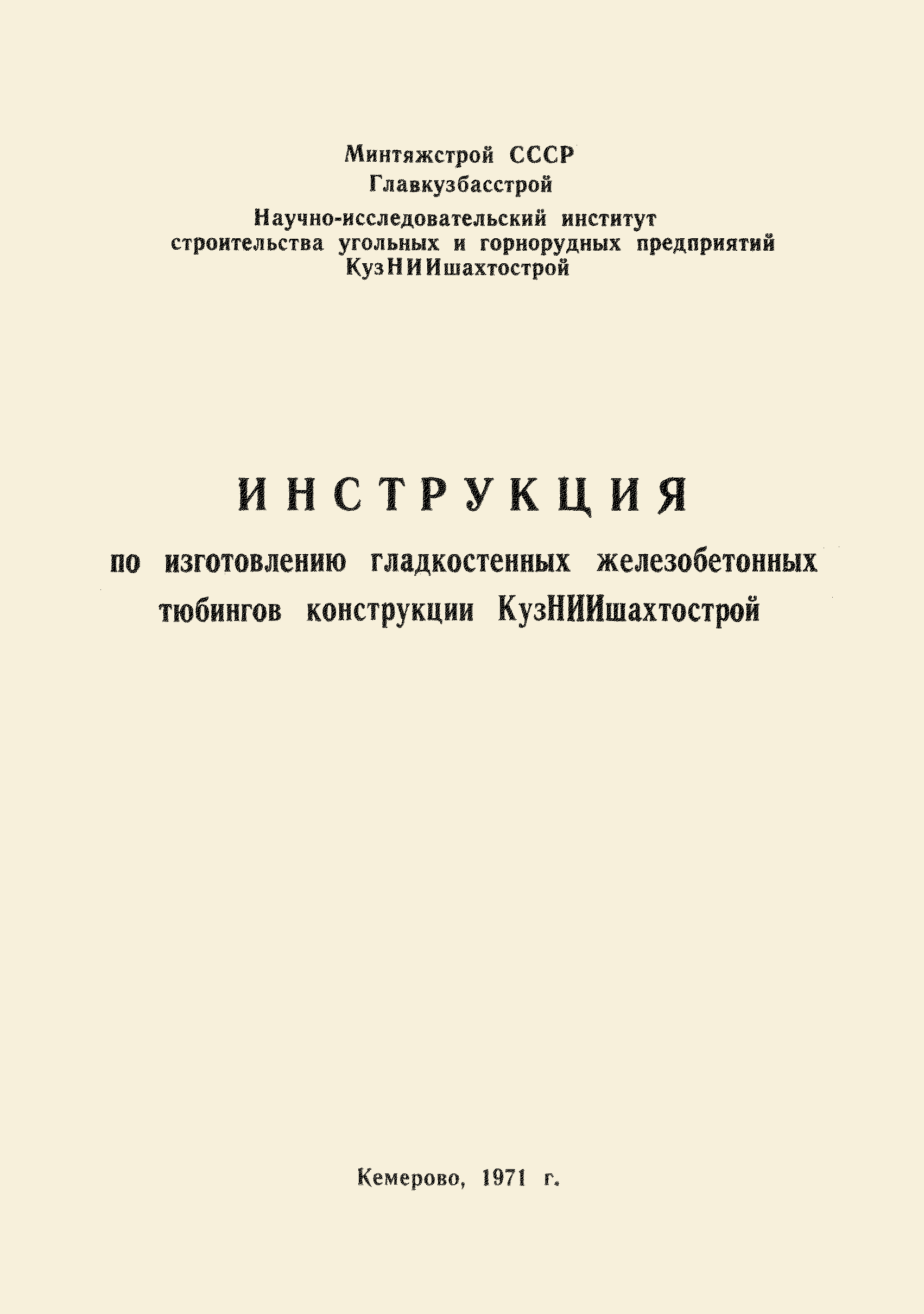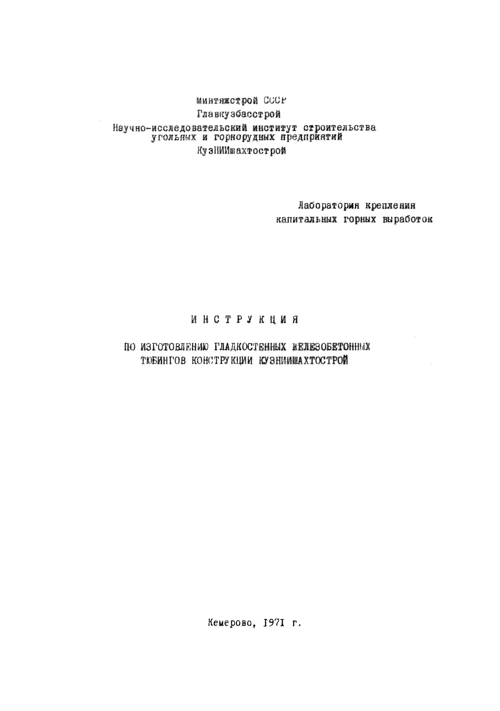 | Название рус.: | Инструкция по изготовлению гладкостенных железобетонных тюбингов конструкции КузНИИшахтострой |