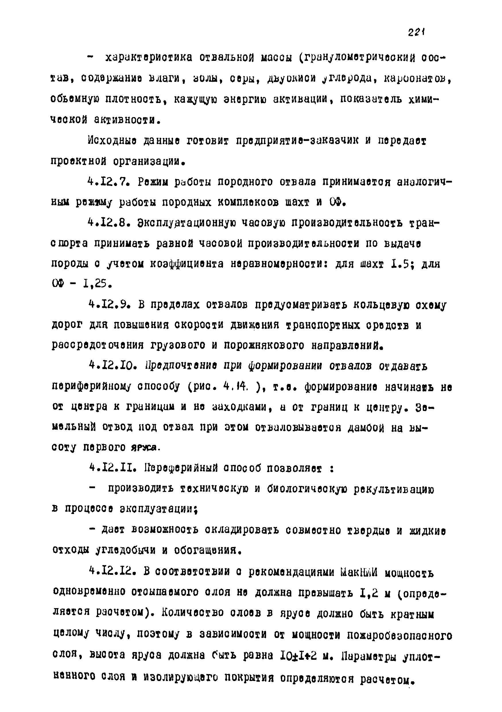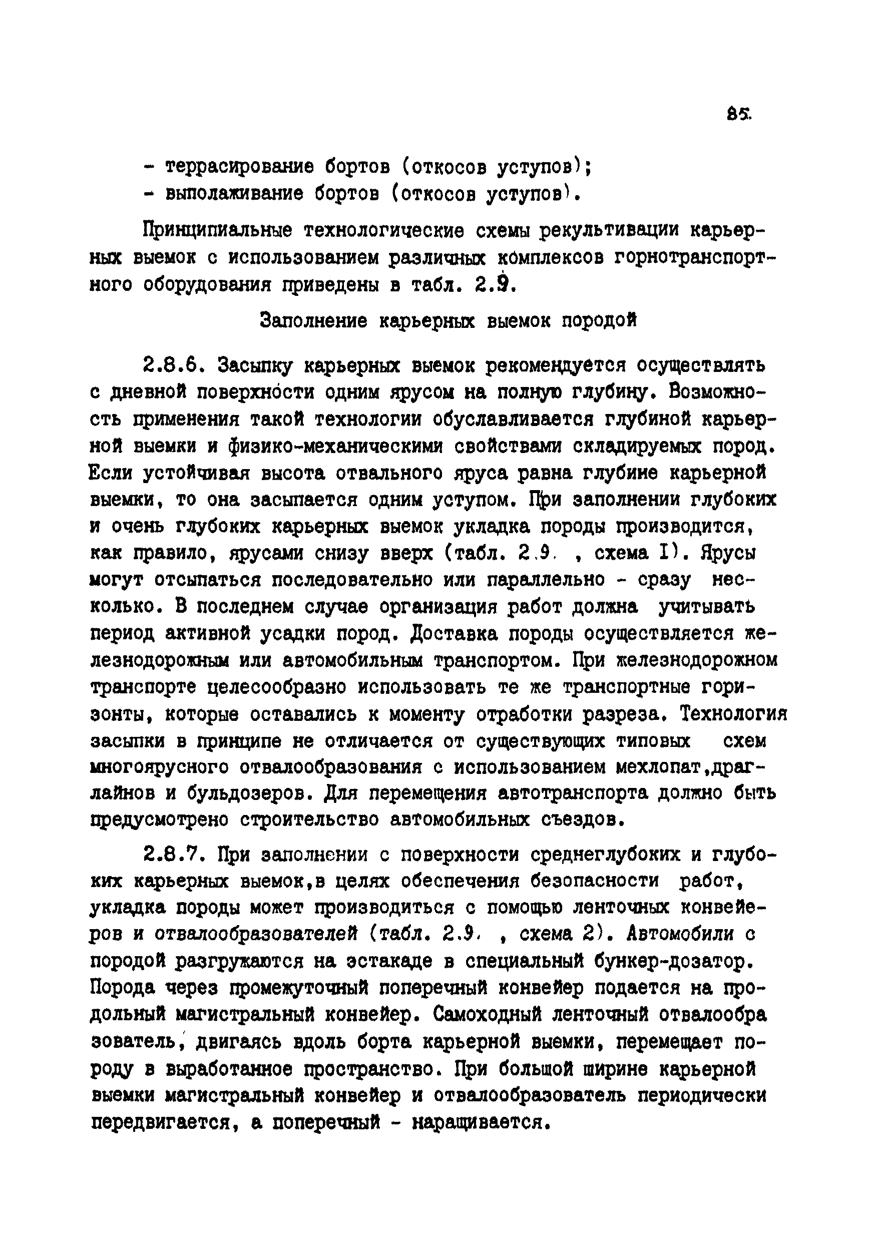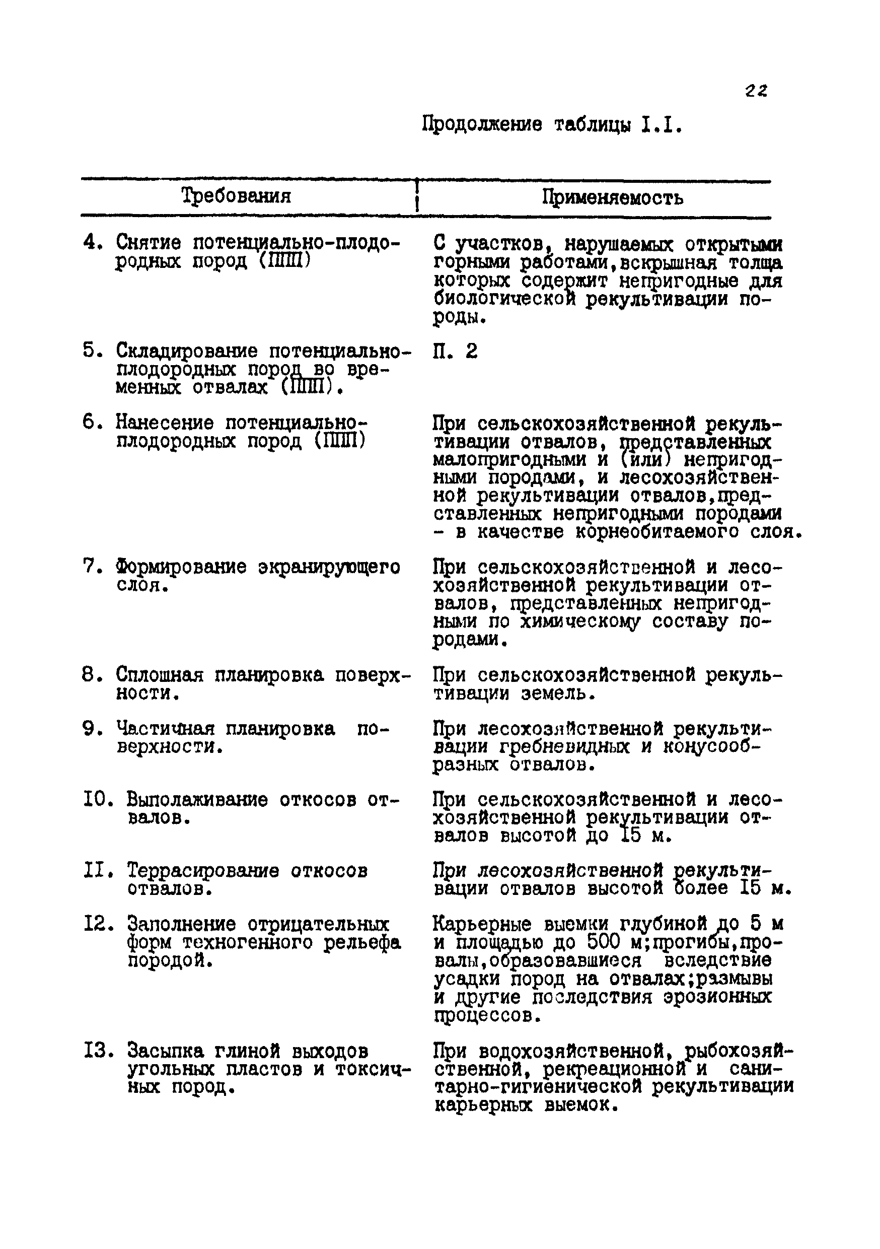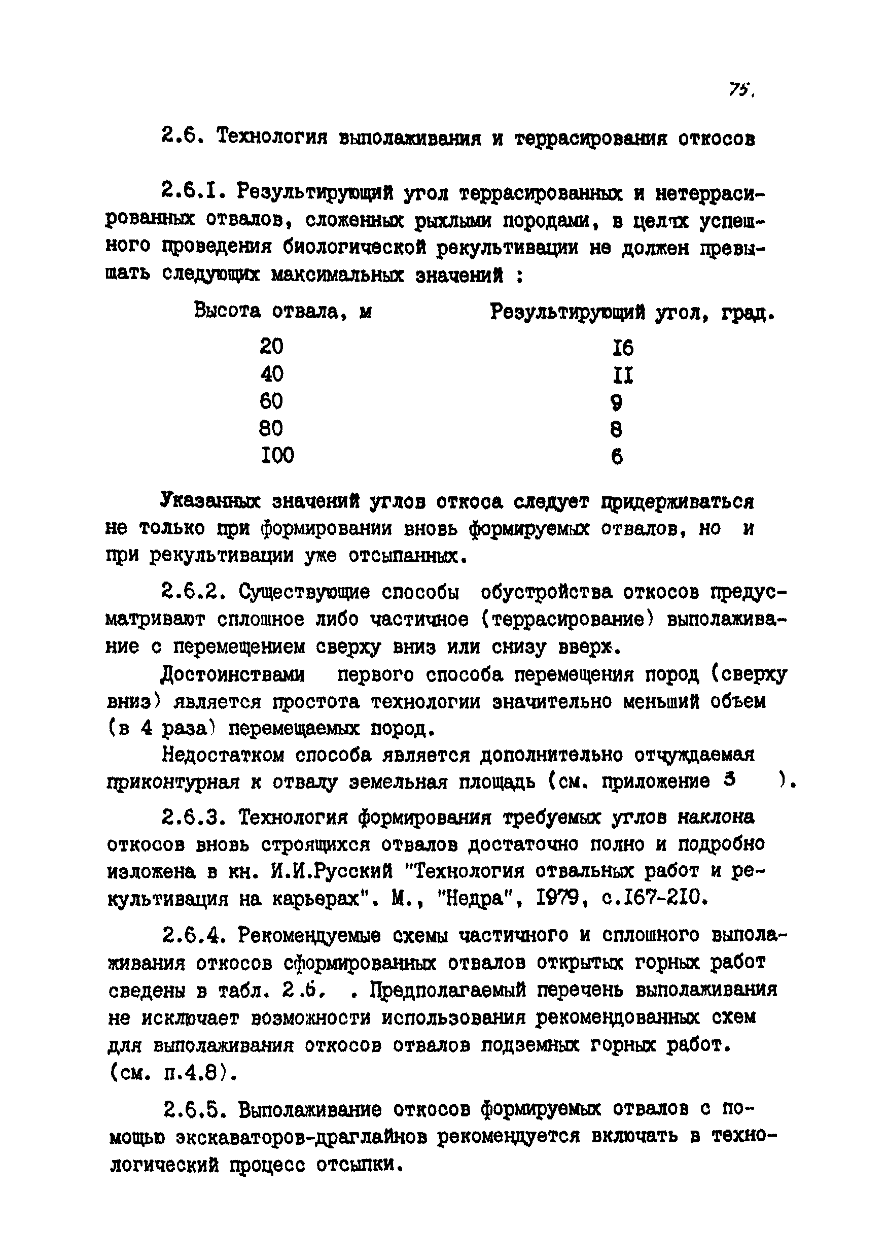 | Оглавление: | Введение 1 Общие положения 1.1 Основные принципы формирования горно-промышленных ландшафтов 1.2 Требовании к технологии горных работ с учётом последующей рекультивации 1.3 Технологические нормативы рекультивации нарушенных земель для основных угольных бассейнов страны 1.4 Состав проектно-сметной документации и порядок ее разработки 1.5 Исходные данные, порядок их подготовки и представления 1.6 Согласование и утверждение проектно—сметной документации 2 Проектирование технического этапа рекультивации при открытых разработках 2.1 Технология снятия и нанесения плодородного слоя 2.2 Формирование рекультивационного слоя при сельскохозяйственном направлении рекультивации 2.3 Формирование рекультивационного слоя при лесохозяйственном направлении рекультивации 2.4 Технология рекультивации внутренних и внешних отвалов 2.5 Планировочные работы 2.6 Технологии выполаживания и террасирования откосов 2.7 Регулирование водного режима 2.8 Рекультивация карьерных выемок 2.9 Подготовка отвалов под строительство 2.10 Формирование технологических комплексов средств механизации для выполнения технического этапа 2.11 Инженерная подготовка рекультивируемых земель 2.12 Автомобильные дороги для рекультивации нарушенных земель 3 Проектирование биологической рекультивации при открытых разработках 3.1 Сельскохозяйственное направление рекультивации 3.2 Лесохозяйственное направление рекультивации 3.3 Санитарно-гигиеническое направление рекультивации 3.4 Рекреационное направление рекультивации 3.5 Водохозяйственное направление рекультивации 3.6 Формирование технологических комплексов средств механизации 4 Проектирование рекультивации земель, нарушенных при подземной добыче угля 4.1 Нарушенные и нарушаемые земли 4.2 Общие положения 4.3 Требования к технологии технической рекультивации 4.4 Технология технического этапа 4.5 Устройство подъездных дорог 4.6 Нарезка въездных полутраншей и траншей 4.7 Снятие вершин конических и хребтовых отвалов 4.8 Понижение отвалов 4.9 Выполаживание откосов 4.10 Тушение отвалов 4.11 Нарезка террас, микротеррас 4.12 Формирование плоских породных отвалов 4.13 Рекультивация ило- и шламохранилищ 4.14 Рекультивация подрабатываемых нарушенных земель 4.15 Формирование технологических комплексов средств механизации 5 Проектирование биологической рекультивации при подземной добыче угля 5.1 Озеленение террикоников 5.2 Освоение нарушенных шахтных полей 5.3 Формирование технологических комплексов средств механизации Приложение 1. Перечень основных нормативных документов, используемых при проектировании Приложение 2. Перечень госстандартов по рекультивации нарушенных земель Приложение 3. Расчетные формулы для определения боковой поверхности, объема и приращения площади Приложение 4. Перечень машин и оборудования для рекультивации земель, нарушенных разрезами, шахтами и ОФ Приложение 5. Проект пруда Приложение 6. Схемы тушения и профилактики самовозгорания породных отвалов Приложение 7. Методика определения основных свойств пород и их смесей Приложение 8. Методика определения объемов нагретых, перегоревших и неперегоревших пород |