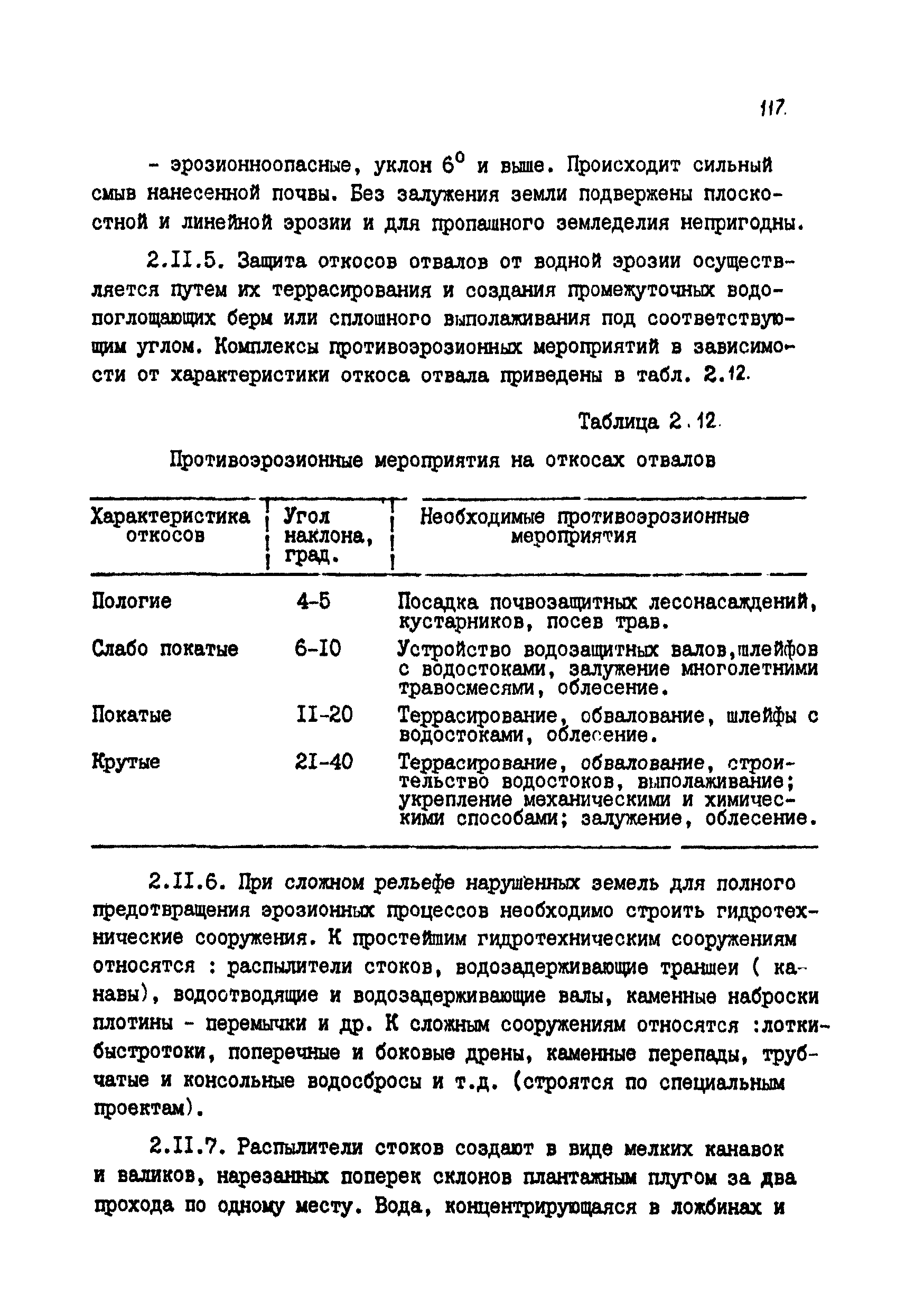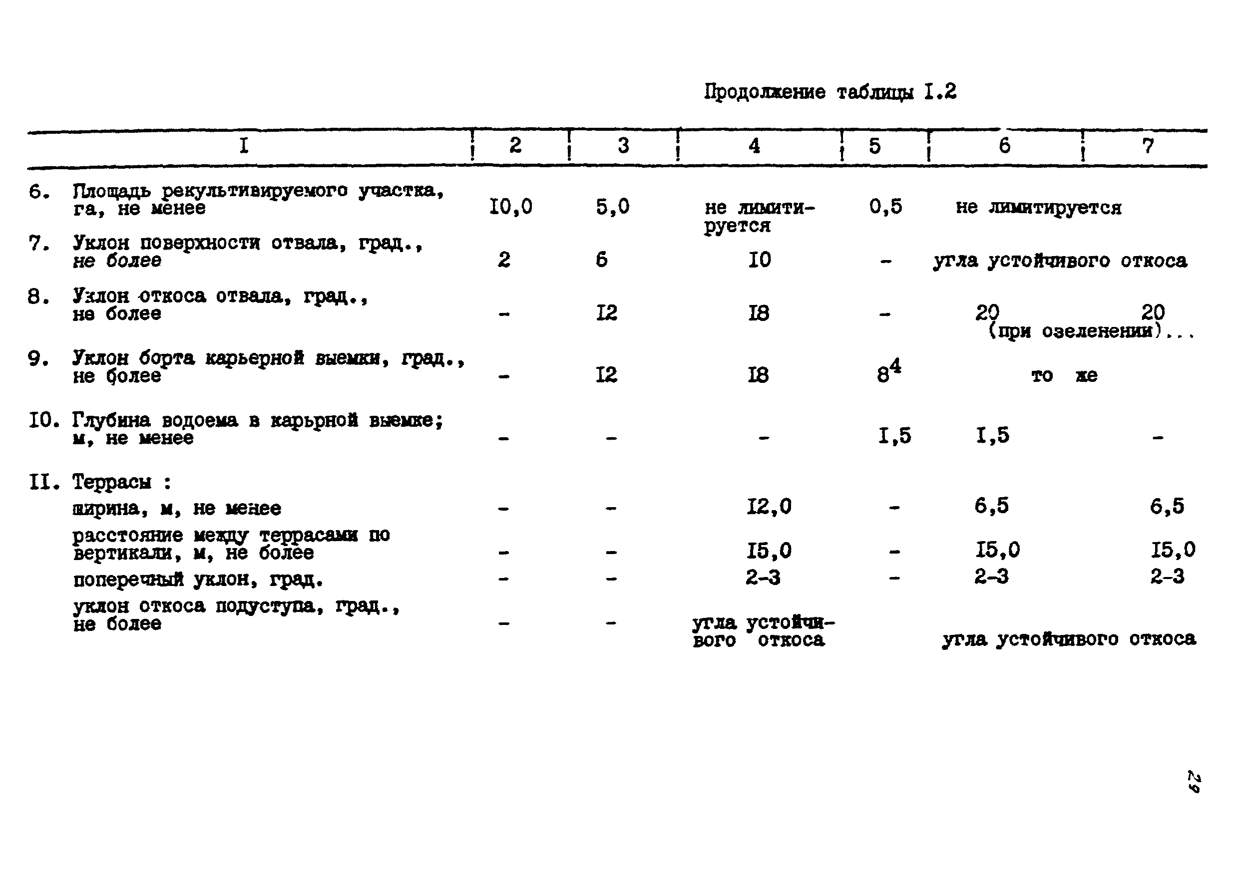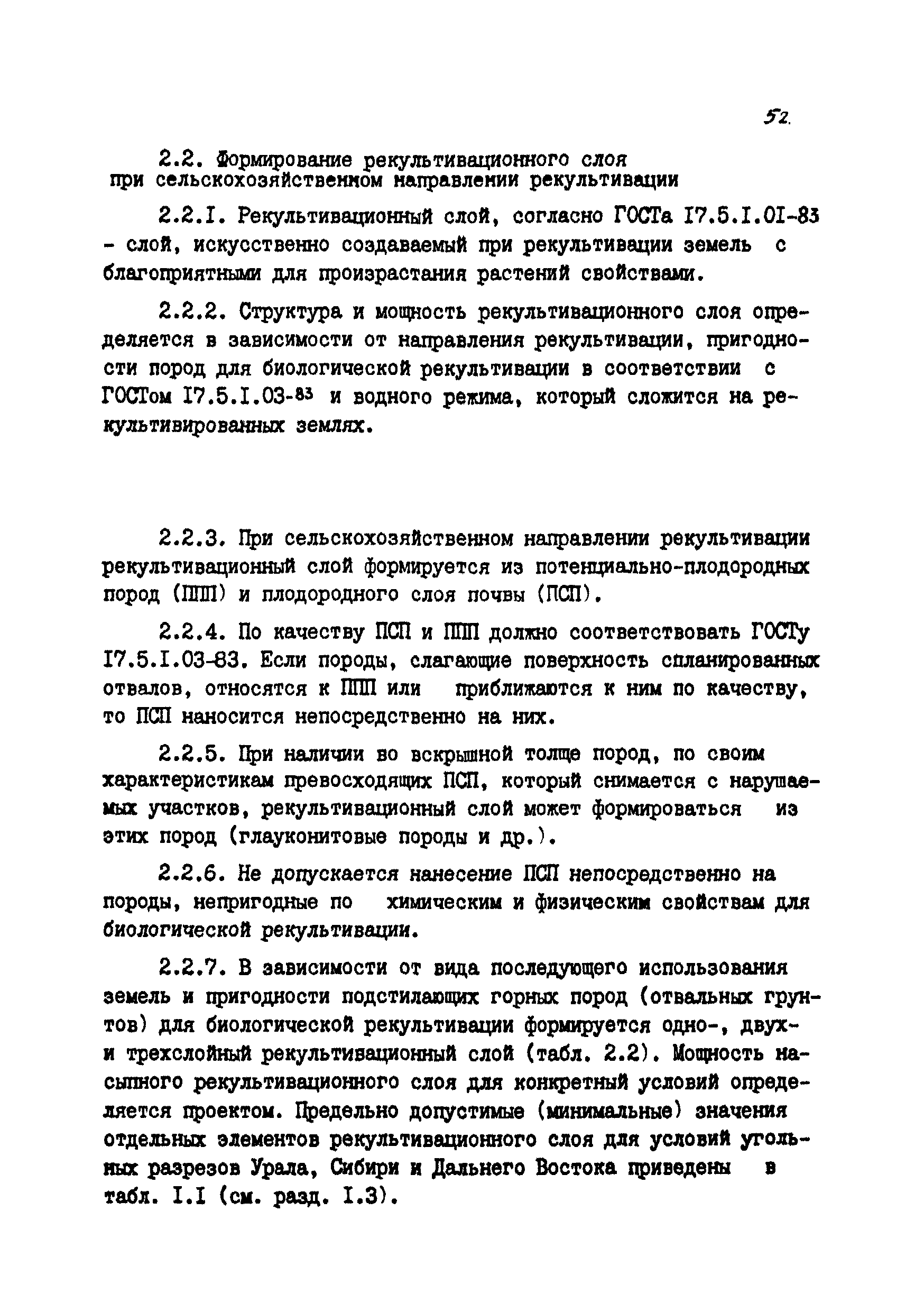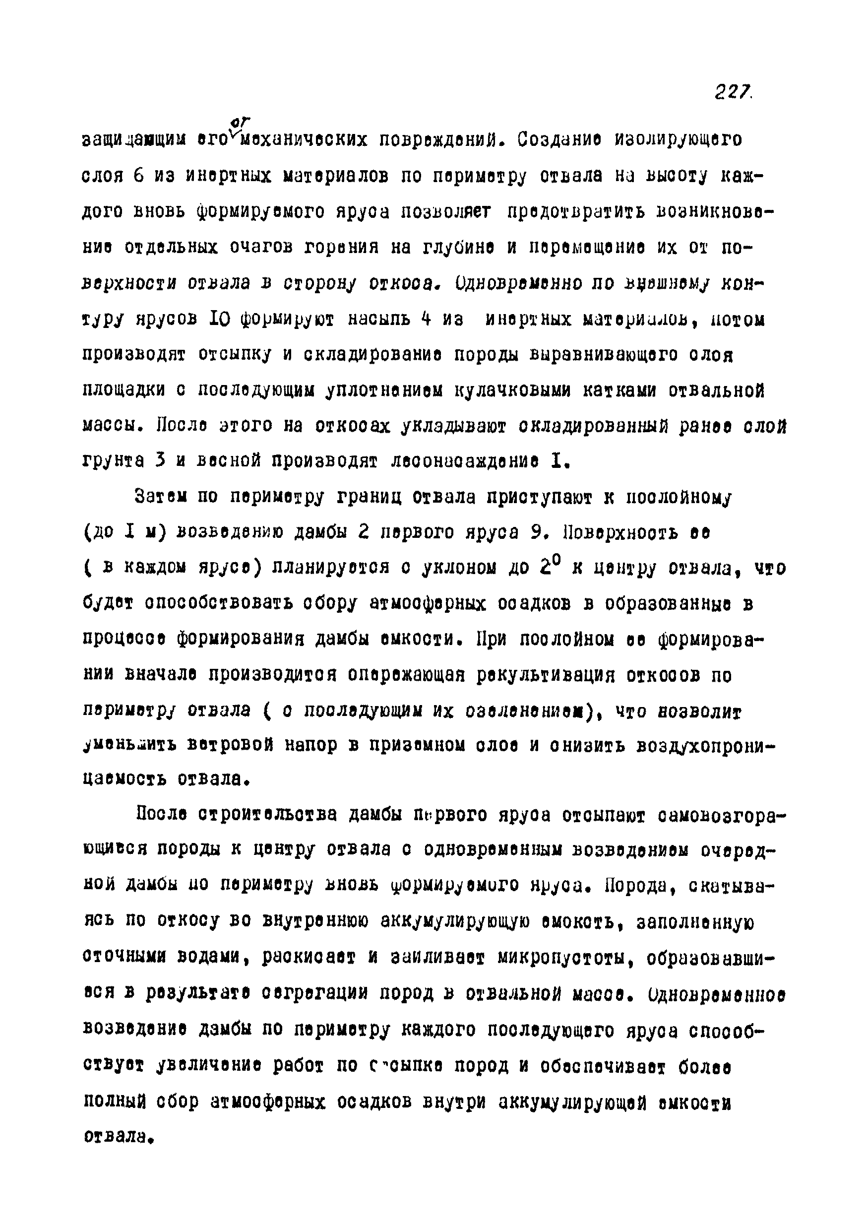 | Оглавление: | Введение 1 Общие положения 1.1 Основные принципы формирования горно-промышленных ландшафтов 1.2 Требовании к технологии горных работ с учётом последующей рекультивации 1.3 Технологические нормативы рекультивации нарушенных земель для основных угольных бассейнов страны 1.4 Состав проектно-сметной документации и порядок ее разработки 1.5 Исходные данные, порядок их подготовки и представления 1.6 Согласование и утверждение проектно—сметной документации 2 Проектирование технического этапа рекультивации при открытых разработках 2.1 Технология снятия и нанесения плодородного слоя 2.2 Формирование рекультивационного слоя при сельскохозяйственном направлении рекультивации 2.3 Формирование рекультивационного слоя при лесохозяйственном направлении рекультивации 2.4 Технология рекультивации внутренних и внешних отвалов 2.5 Планировочные работы 2.6 Технологии выполаживания и террасирования откосов 2.7 Регулирование водного режима 2.8 Рекультивация карьерных выемок 2.9 Подготовка отвалов под строительство 2.10 Формирование технологических комплексов средств механизации для выполнения технического этапа 2.11 Инженерная подготовка рекультивируемых земель 2.12 Автомобильные дороги для рекультивации нарушенных земель 3 Проектирование биологической рекультивации при открытых разработках 3.1 Сельскохозяйственное направление рекультивации 3.2 Лесохозяйственное направление рекультивации 3.3 Санитарно-гигиеническое направление рекультивации 3.4 Рекреационное направление рекультивации 3.5 Водохозяйственное направление рекультивации 3.6 Формирование технологических комплексов средств механизации 4 Проектирование рекультивации земель, нарушенных при подземной добыче угля 4.1 Нарушенные и нарушаемые земли 4.2 Общие положения 4.3 Требования к технологии технической рекультивации 4.4 Технология технического этапа 4.5 Устройство подъездных дорог 4.6 Нарезка въездных полутраншей и траншей 4.7 Снятие вершин конических и хребтовых отвалов 4.8 Понижение отвалов 4.9 Выполаживание откосов 4.10 Тушение отвалов 4.11 Нарезка террас, микротеррас 4.12 Формирование плоских породных отвалов 4.13 Рекультивация ило- и шламохранилищ 4.14 Рекультивация подрабатываемых нарушенных земель 4.15 Формирование технологических комплексов средств механизации 5 Проектирование биологической рекультивации при подземной добыче угля 5.1 Озеленение террикоников 5.2 Освоение нарушенных шахтных полей 5.3 Формирование технологических комплексов средств механизации Приложение 1. Перечень основных нормативных документов, используемых при проектировании Приложение 2. Перечень госстандартов по рекультивации нарушенных земель Приложение 3. Расчетные формулы для определения боковой поверхности, объема и приращения площади Приложение 4. Перечень машин и оборудования для рекультивации земель, нарушенных разрезами, шахтами и ОФ Приложение 5. Проект пруда Приложение 6. Схемы тушения и профилактики самовозгорания породных отвалов Приложение 7. Методика определения основных свойств пород и их смесей Приложение 8. Методика определения объемов нагретых, перегоревших и неперегоревших пород |