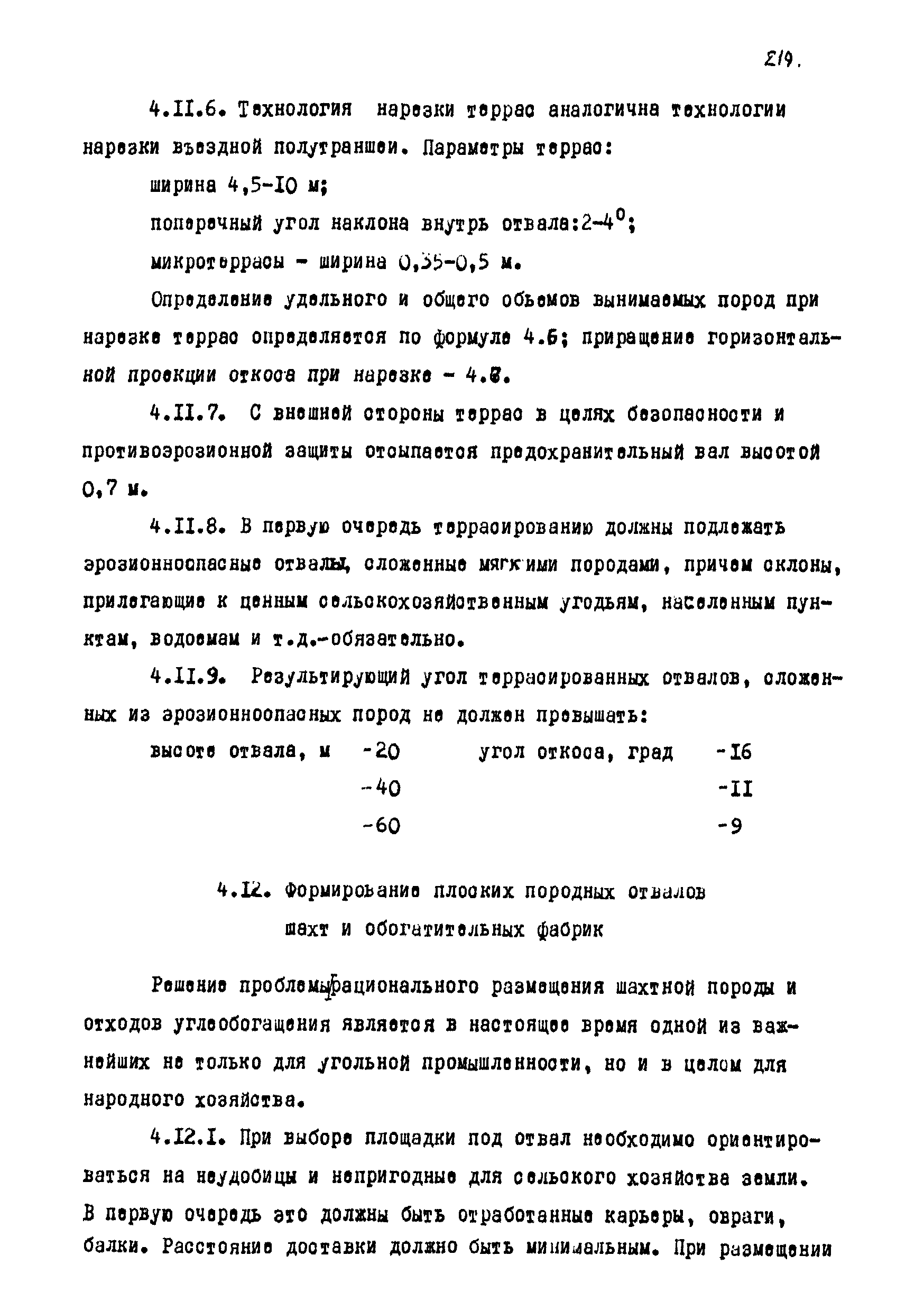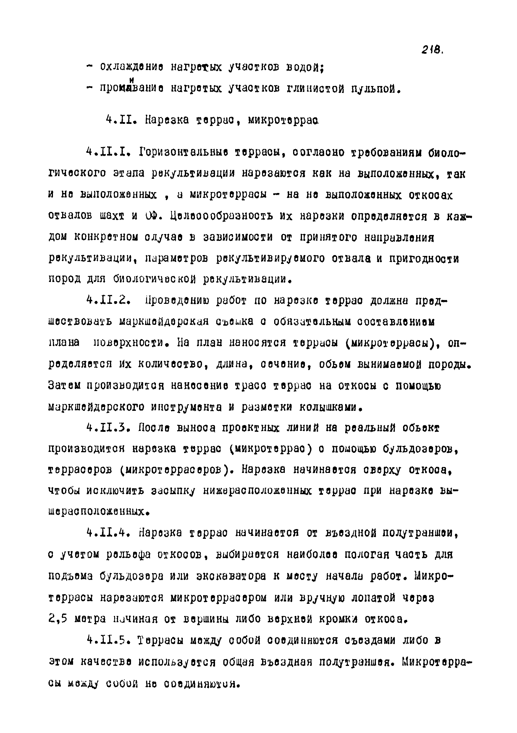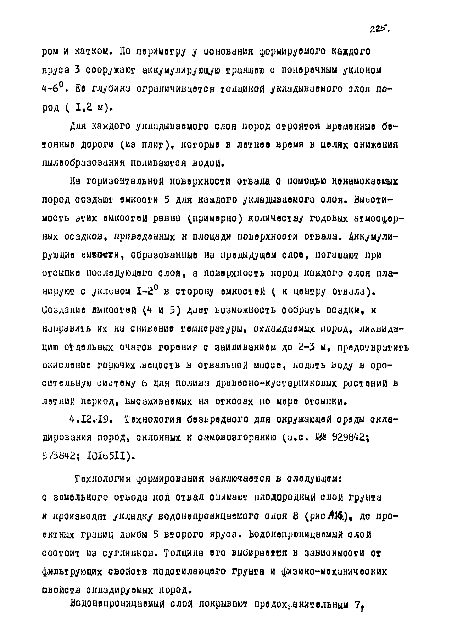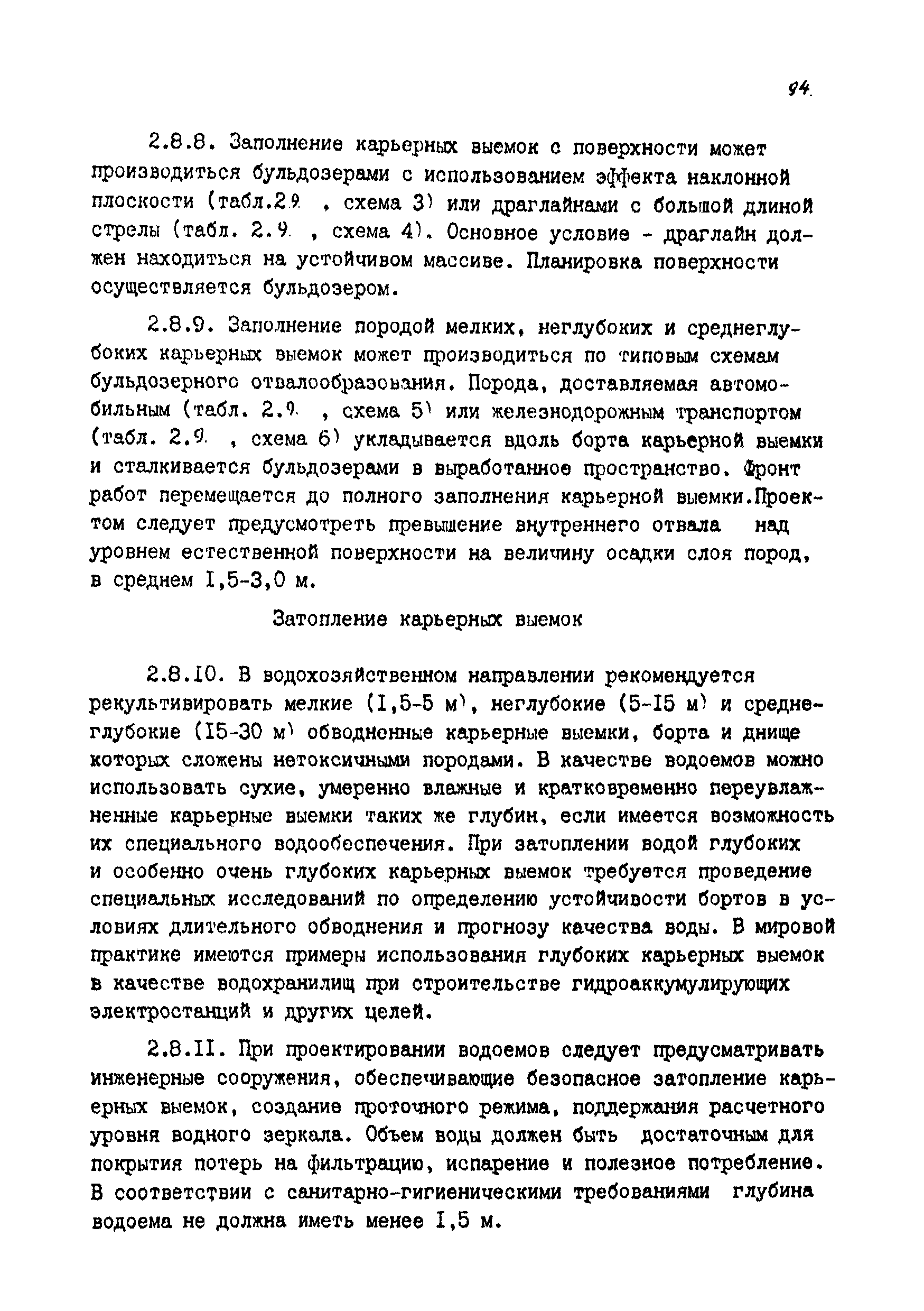 | Оглавление: | Введение 1 Общие положения 1.1 Основные принципы формирования горно-промышленных ландшафтов 1.2 Требовании к технологии горных работ с учётом последующей рекультивации 1.3 Технологические нормативы рекультивации нарушенных земель для основных угольных бассейнов страны 1.4 Состав проектно-сметной документации и порядок ее разработки 1.5 Исходные данные, порядок их подготовки и представления 1.6 Согласование и утверждение проектно—сметной документации 2 Проектирование технического этапа рекультивации при открытых разработках 2.1 Технология снятия и нанесения плодородного слоя 2.2 Формирование рекультивационного слоя при сельскохозяйственном направлении рекультивации 2.3 Формирование рекультивационного слоя при лесохозяйственном направлении рекультивации 2.4 Технология рекультивации внутренних и внешних отвалов 2.5 Планировочные работы 2.6 Технологии выполаживания и террасирования откосов 2.7 Регулирование водного режима 2.8 Рекультивация карьерных выемок 2.9 Подготовка отвалов под строительство 2.10 Формирование технологических комплексов средств механизации для выполнения технического этапа 2.11 Инженерная подготовка рекультивируемых земель 2.12 Автомобильные дороги для рекультивации нарушенных земель 3 Проектирование биологической рекультивации при открытых разработках 3.1 Сельскохозяйственное направление рекультивации 3.2 Лесохозяйственное направление рекультивации 3.3 Санитарно-гигиеническое направление рекультивации 3.4 Рекреационное направление рекультивации 3.5 Водохозяйственное направление рекультивации 3.6 Формирование технологических комплексов средств механизации 4 Проектирование рекультивации земель, нарушенных при подземной добыче угля 4.1 Нарушенные и нарушаемые земли 4.2 Общие положения 4.3 Требования к технологии технической рекультивации 4.4 Технология технического этапа 4.5 Устройство подъездных дорог 4.6 Нарезка въездных полутраншей и траншей 4.7 Снятие вершин конических и хребтовых отвалов 4.8 Понижение отвалов 4.9 Выполаживание откосов 4.10 Тушение отвалов 4.11 Нарезка террас, микротеррас 4.12 Формирование плоских породных отвалов 4.13 Рекультивация ило- и шламохранилищ 4.14 Рекультивация подрабатываемых нарушенных земель 4.15 Формирование технологических комплексов средств механизации 5 Проектирование биологической рекультивации при подземной добыче угля 5.1 Озеленение террикоников 5.2 Освоение нарушенных шахтных полей 5.3 Формирование технологических комплексов средств механизации Приложение 1. Перечень основных нормативных документов, используемых при проектировании Приложение 2. Перечень госстандартов по рекультивации нарушенных земель Приложение 3. Расчетные формулы для определения боковой поверхности, объема и приращения площади Приложение 4. Перечень машин и оборудования для рекультивации земель, нарушенных разрезами, шахтами и ОФ Приложение 5. Проект пруда Приложение 6. Схемы тушения и профилактики самовозгорания породных отвалов Приложение 7. Методика определения основных свойств пород и их смесей Приложение 8. Методика определения объемов нагретых, перегоревших и неперегоревших пород |