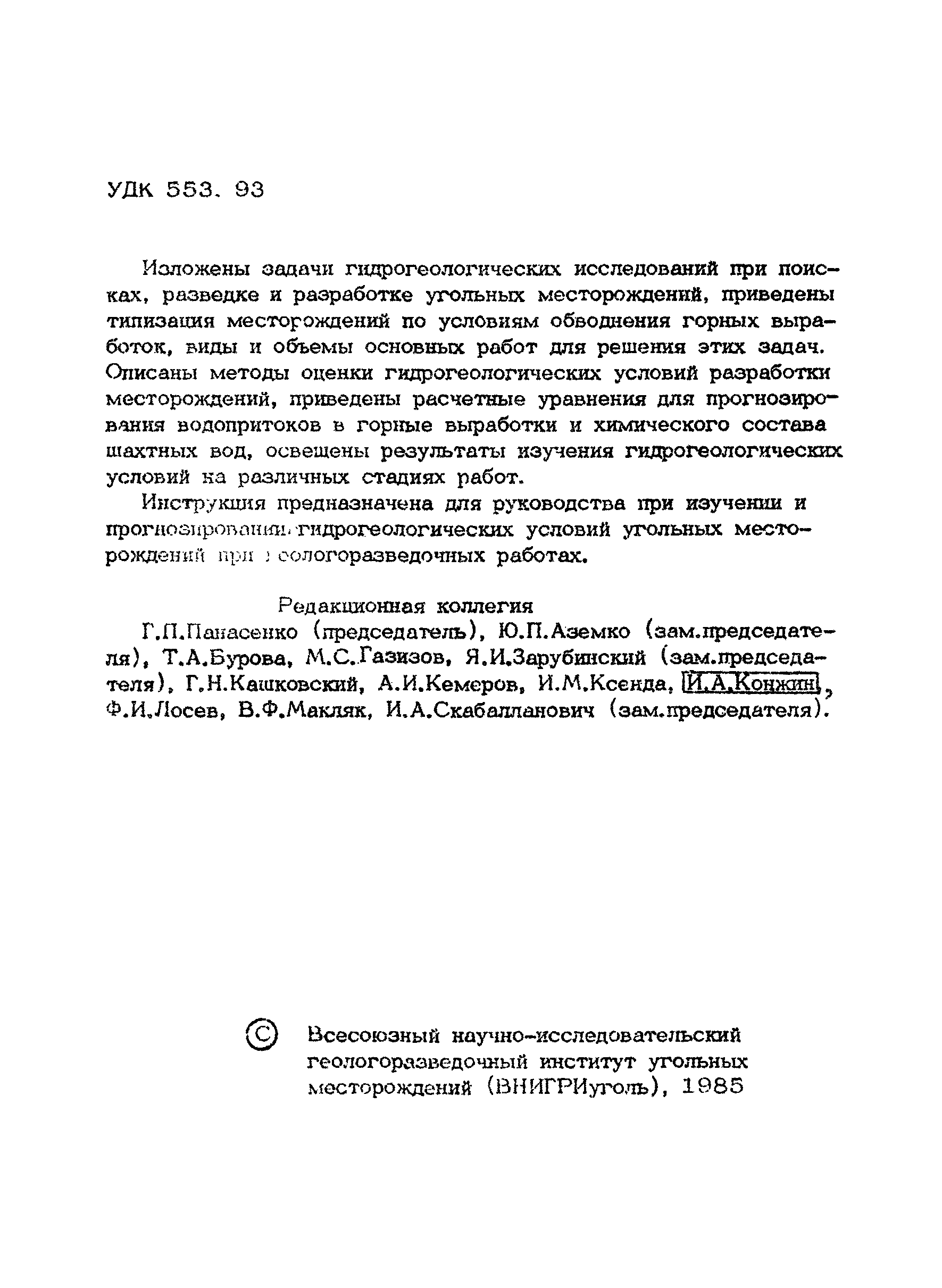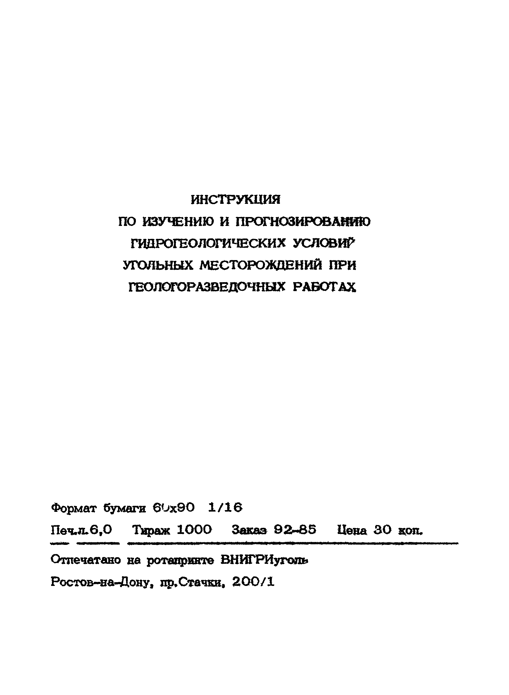 | Название рус.: | Инструкция по изучению и прогнозированию гидрогеологических условий угольных месторождений при геологоразведочных работах |