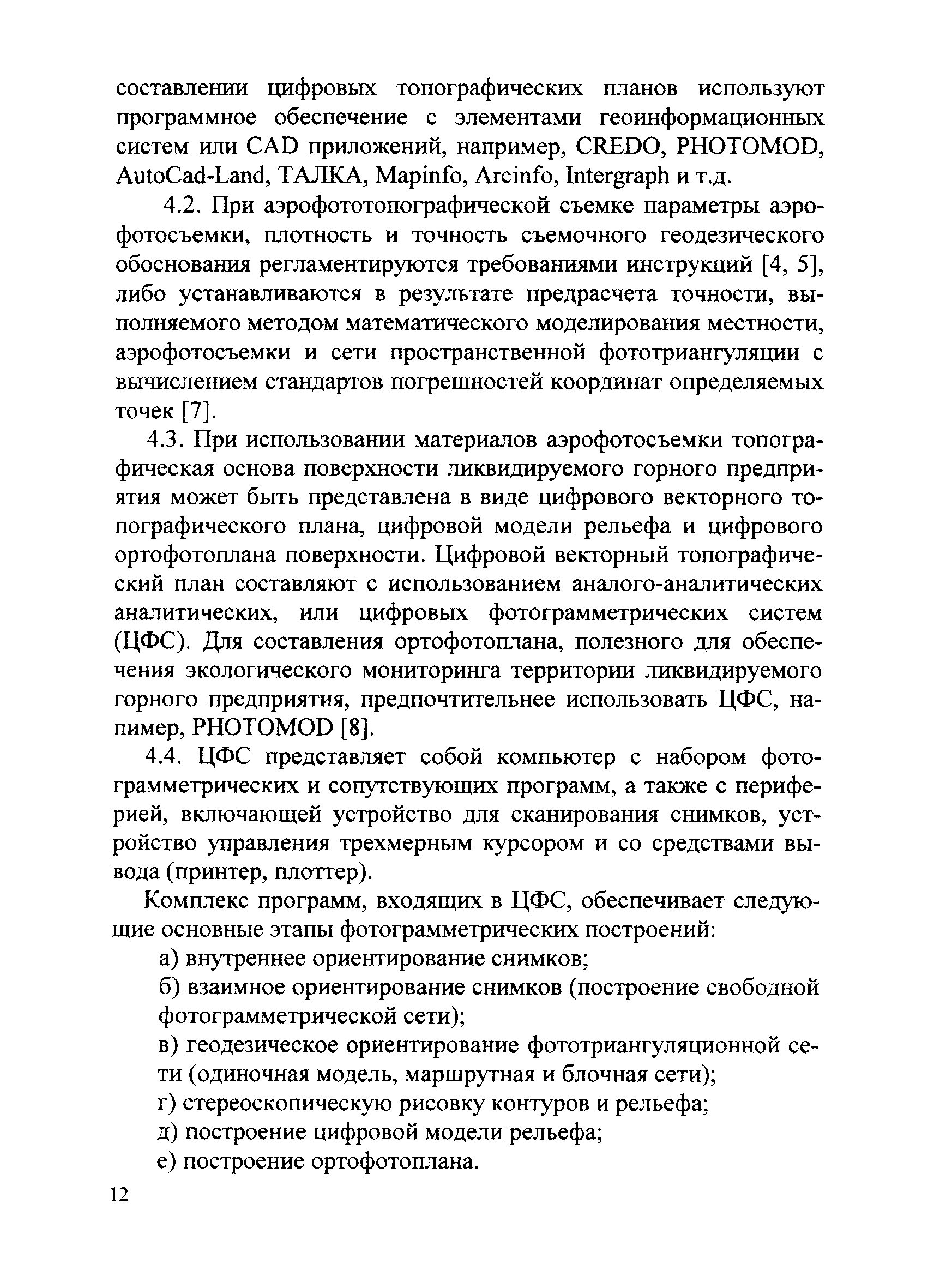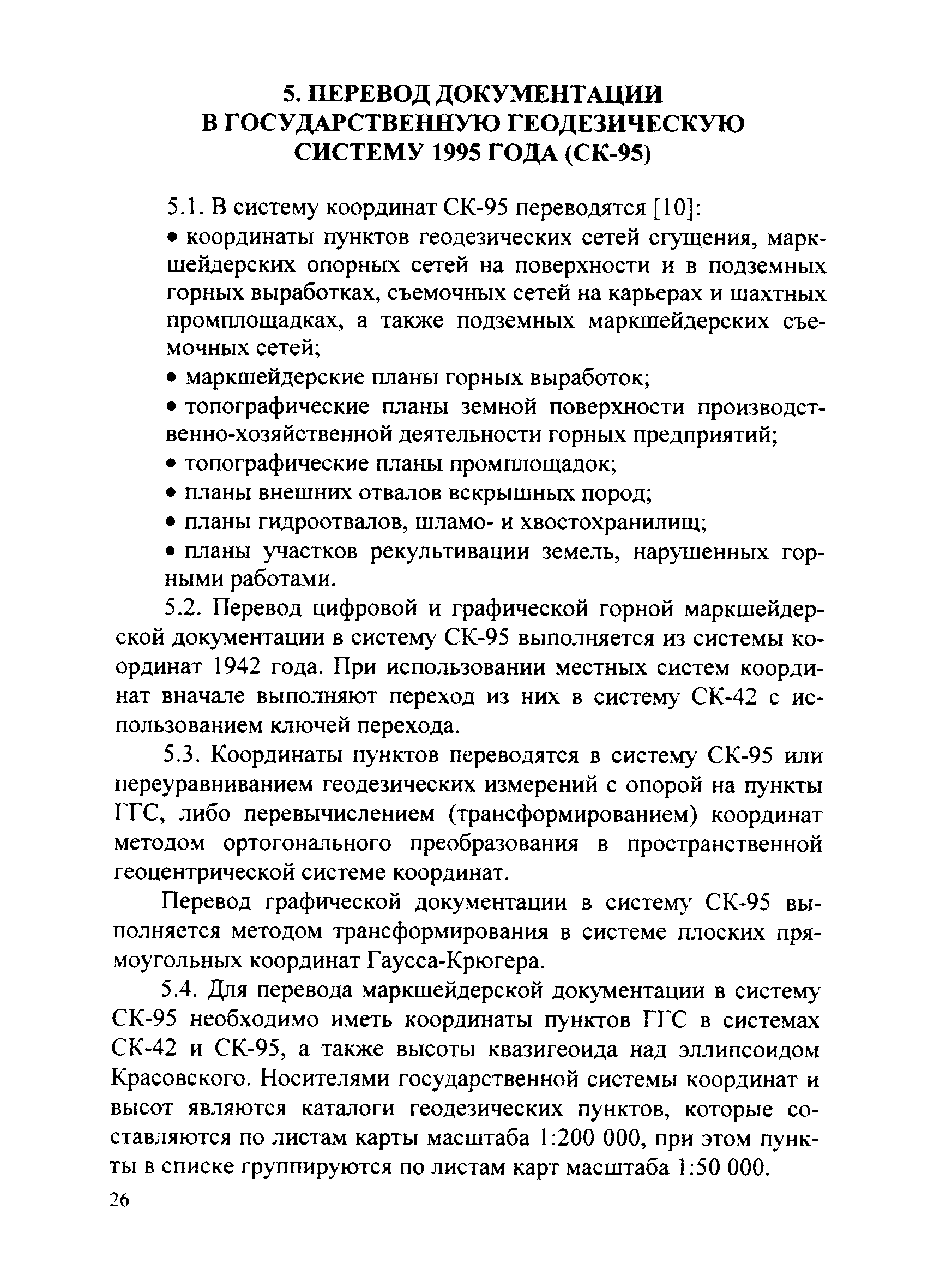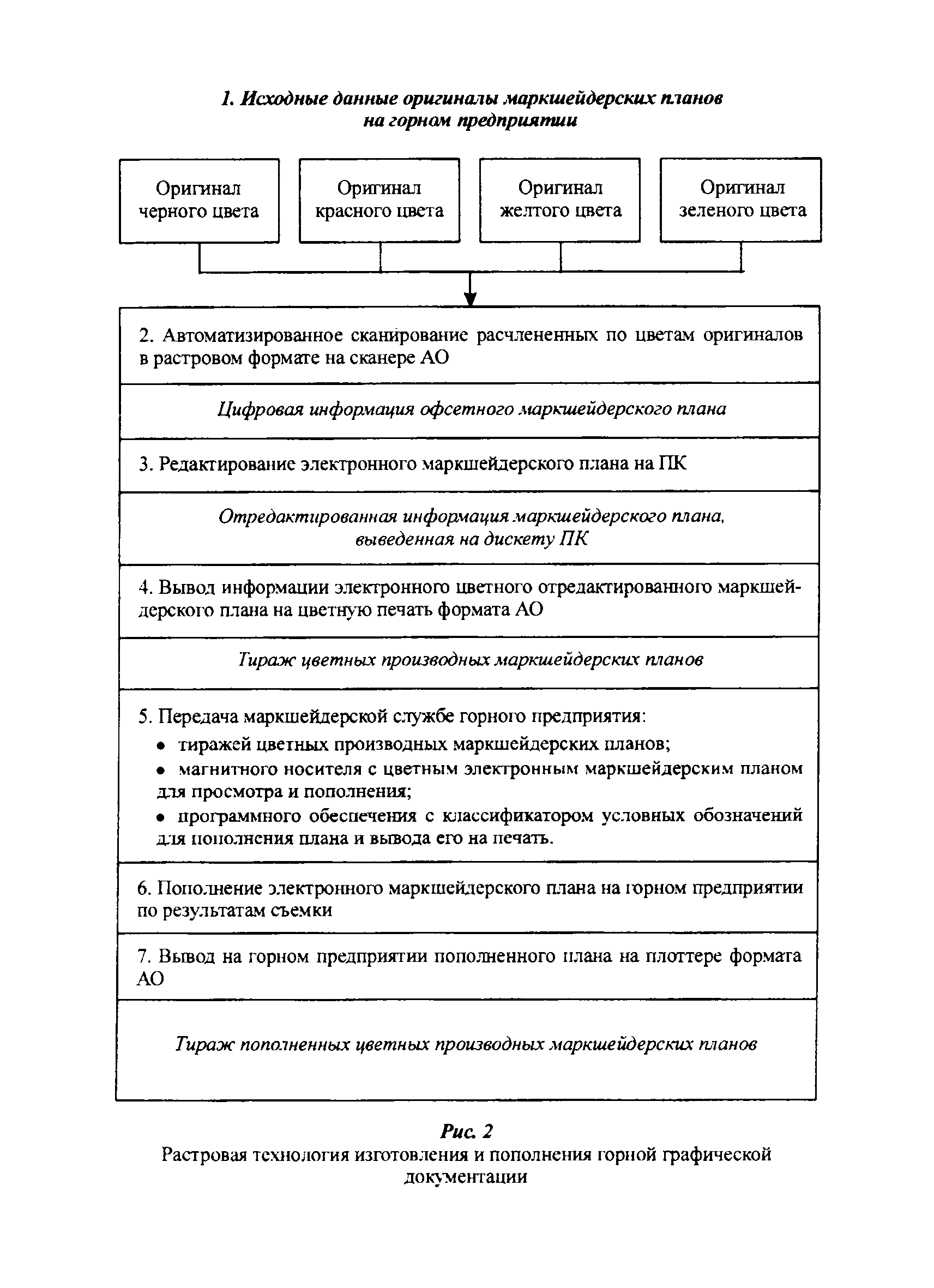 | Оглавление: | Введение 1 Общие положения 2 Автоматизированное составление горной графической документации 3 Растрово-векторная технология составления горной графической документации 4 Составление топографических планов земной поверхности 5 Перевод документации в Государственную систему 1995 года (СК-95) Приложение А. Перечень необходимой горной графической документации, передаваемой на хрангение при ликвидации предприятия |