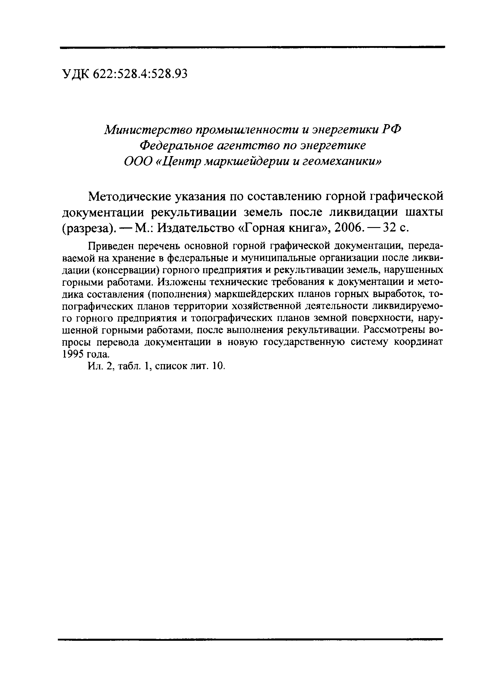 | Название рус.: | Методические указания по составлению горной графической документации рекультивации земель после ликвидации шахты (разреза) |