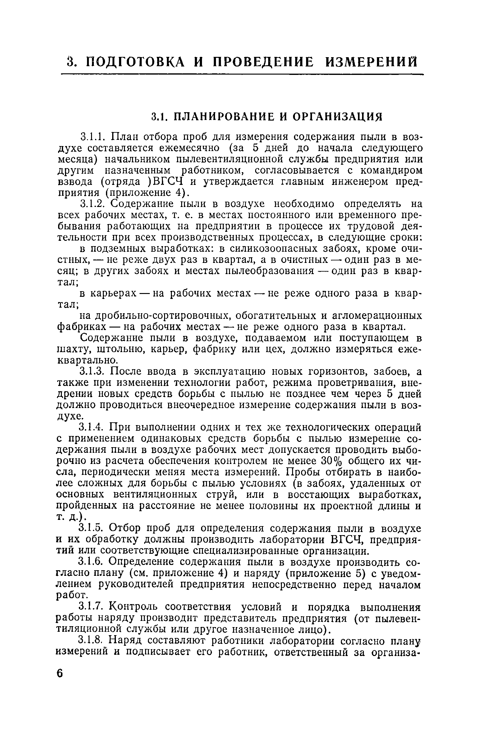 Инструкция по контролю содержания пыли на предприятиях горнорудной и нерудной промышленности (рудниках, карьерах, геологоразведочных работах, обогатительных, агломерационных и дробильно-сортировочных фабриках)| Статус: | справочные материалы, мп, тпр | | Название рус.: | Инструкция по контролю содержания пыли на предприятиях горнорудной и нерудной промышленности (рудниках, карьерах, геологоразведочных работах, обогатительных, агломерационных и дробильно-сортировочных фабриках) | | Дата добавления в базу: | 01.01.2018 | | Дата актуализации: | 01.01.2021 | | Область применения: | Документ определяет порядок и сроки контроля за запыленностью воздуха и обязательна к применению на действующих, строящихся и реконструируемых предприятиях горнорудной и нерудной промышленности, подконтрольных Госгортехнадзору СССР. | | Оглавление: | 1 Общие положения 2 Приборы, материалы и условия измерений 3 Подготовка к проведение измерений 3.1, Планирование и организация 3.2. Подготовка к определению содержания пыли в воздухе 3.3. Определен е содержания пыли в воздухе 3.4. Расчет содержания пыли в воздухе 4. Требования к квалификации пробоотборщика Приложение 1. Перечень рабочих мест и других пунктов для измерения содержания пыли в воздухе Приложение 2. Приведение объема воздуха к нормальным условиям, определение объема фильтруемого воздуха Приложение 3. Приборы и материалы, необходимые для измерения содержания пыли в воздухе Приложение 4. План отбора проб воздуха для измерения содержания в нем пыли Приложение 5. Наряд на отбор проб воздуха для определения содержания в нем пыли Приложение 6. Рабочий журнал регистрации результатов измерений содержания пыли в воздухе Приложение 7. Извещение о результатах измерения пыли в воздухе на предприятии Приложение 8. Отчет о содержании пыли в воздухе на рабочих местах рудника Приложение 9. Отчет о содержании пыли в воздухе на открытых горных работах (карьерах) Приложение 10. Отчет о содержании пыли в воздухе при обогащении и агломерации руд Приложение 11. Методика экстрагирования загрязнения масел с фильтров АФА-ВП Приложение 12. Термины и определения основных понятий | | Разработан: | НИИ гигиены труда и профзаболеваний АМН СССР ЦНИИПП ВНИИБТГ Минчермета СССР ЦНИИГРИ Мингео СССР