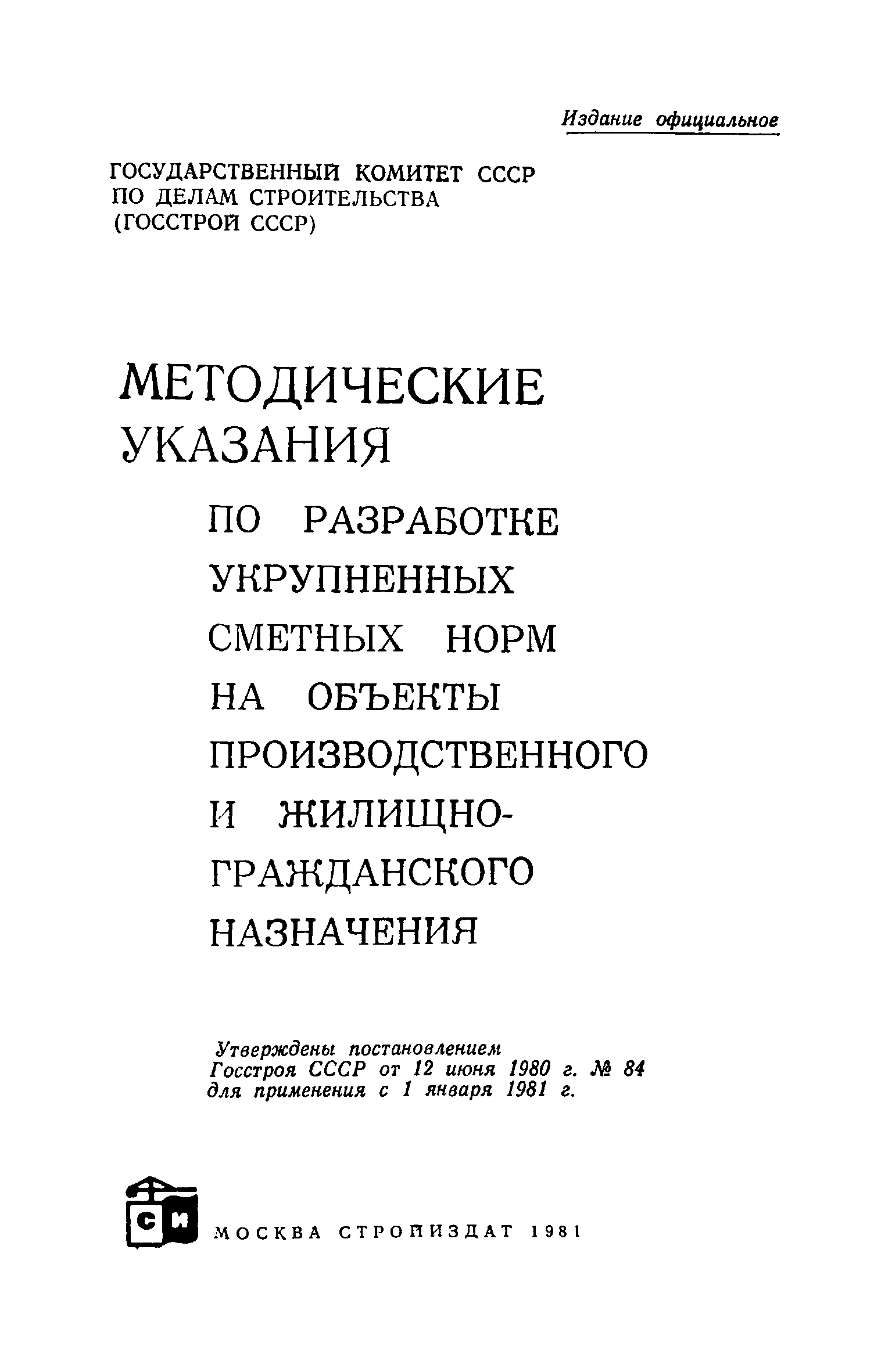| | Утверждён: | 12.06.1980 Госстрой СССР (84)