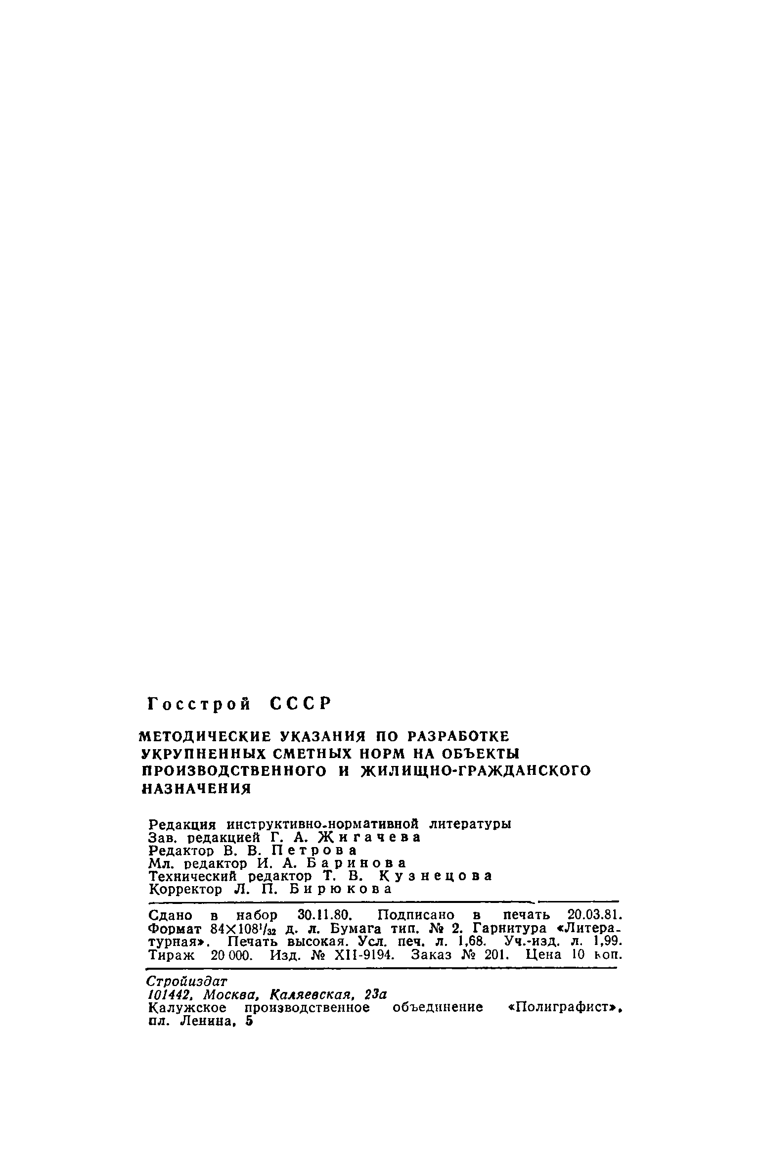 Методические указания по разработке укрупненных сметных норм на объекты производственного и жилищно-гражданского назначения| Статус: | действует | | Название рус.: | Методические указания по разработке укрупненных сметных норм на объекты производственного и жилищно-гражданского назначения | | Дата добавления в базу: | 01.01.2018 | | Дата актуализации: | 01.01.2021 | | Дата введения: | 01.01.1981 | | Область применения: | Методические указания содержат основные положения по разработке укрупненных сметных норм (УСН) на здания и сооружения в целом и на части зданий, сооружений и виды работ производственного и жилищно-гражданского строительства. | | Оглавление: | 1Классификация укрупненных сметных норм и их назначение 2 Методика разработки укрупненных сметных норм на здания и сооружения в целом 3 Методика разработки укрупненных сметных норм на части зданий, сооружений и виды работ 4 Организация разработки укрупненных сметных норм и порядок их рассмотрения 5 Округление числовых величин показателей УСН 6 Анализ уровня УСН Приложение 1. Пример составления таблицы "А" — постоянные затраты укрупненных сметных норм на здания и сооружения в целом, предназначенных для составления смет Приложение 2. Пример составления таблицы "Б"— местные материалы укрупненных сметных норм на здания и сооружения в целом Приложение 3. Пример составления таблицы укрупненных сметных норм на монтажные работы, предназначенные для составления смет Приложение 4. Пример расчета, обосновывающего стоимость строительных работ по УСН Приложение 5. Пример расчета, обосновывающего стоимость монтажных работ по УСН Приложение 6. Распределение территориальных районов страны по градациям расчетных зимних температур наружного воздуха по главе СНиП II-А.6-72 Приложение 7. Пример расчета, обосновывающего сокращение номенклатуры местных материалов Приложение 8. Пример составления таблицы стоимости оборудования Приложение 9. Пример составления таблицы УСН, предназначенных для составления смет на части зданий, сооружений и виды работ при числе наименований местных материалов менее трех Приложение 10. Распределение работ по рассмотрению проектов УСН между строительными министерствами Приложение 11. Пример построения Общей части к укрупненным сметным нормам на здания и сооружения в целом Приложение 12. Пример построения Общей части сборника укрупненных сметных норм на части зданий, сооружений и виды работ | | Разработан: | НИИ экономики строительства Госстроя СССР