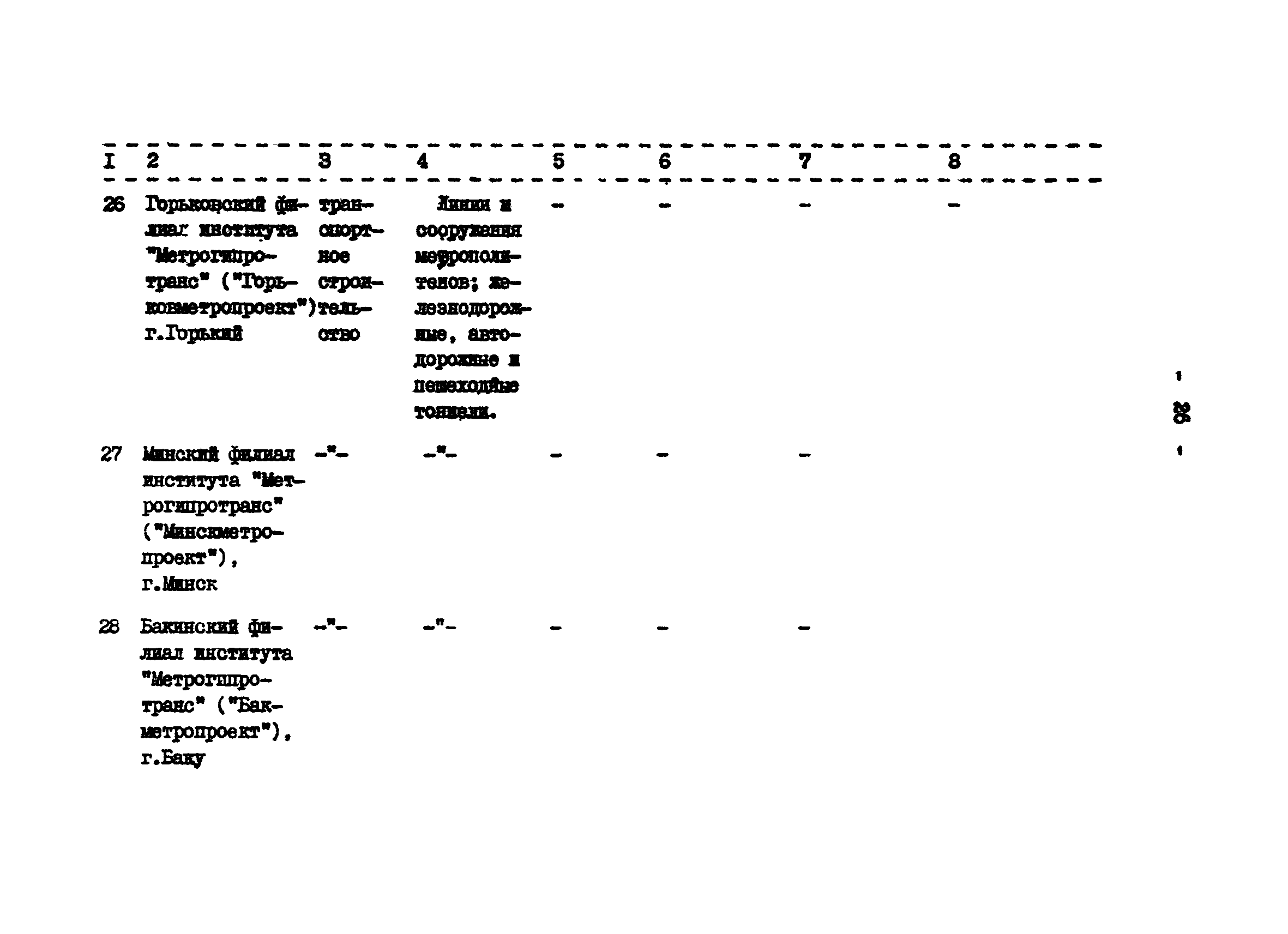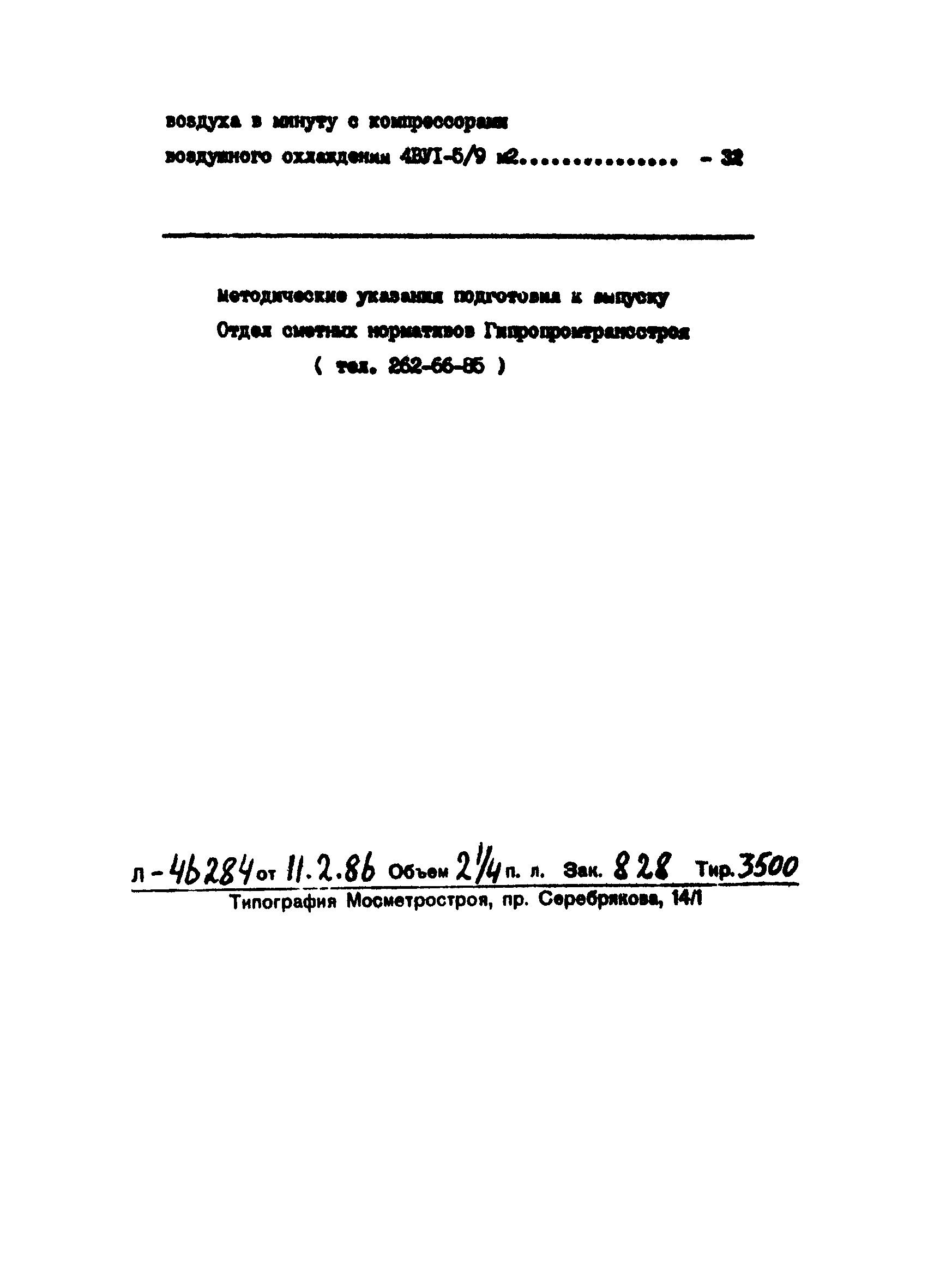 Методические указания по вопросам проектирования и составления смет (март 1986)| Статус: | справочные материалы, мп, тпр | | Название рус.: | Методические указания по вопросам проектирования и составления смет (март 1986) | | Дата добавления в базу: | 01.01.2018 | | Дата актуализации: | 01.01.2021 | | Утверждён: | Министерство транспортного строительства СССР (USSR Ministry of Transport Construction )