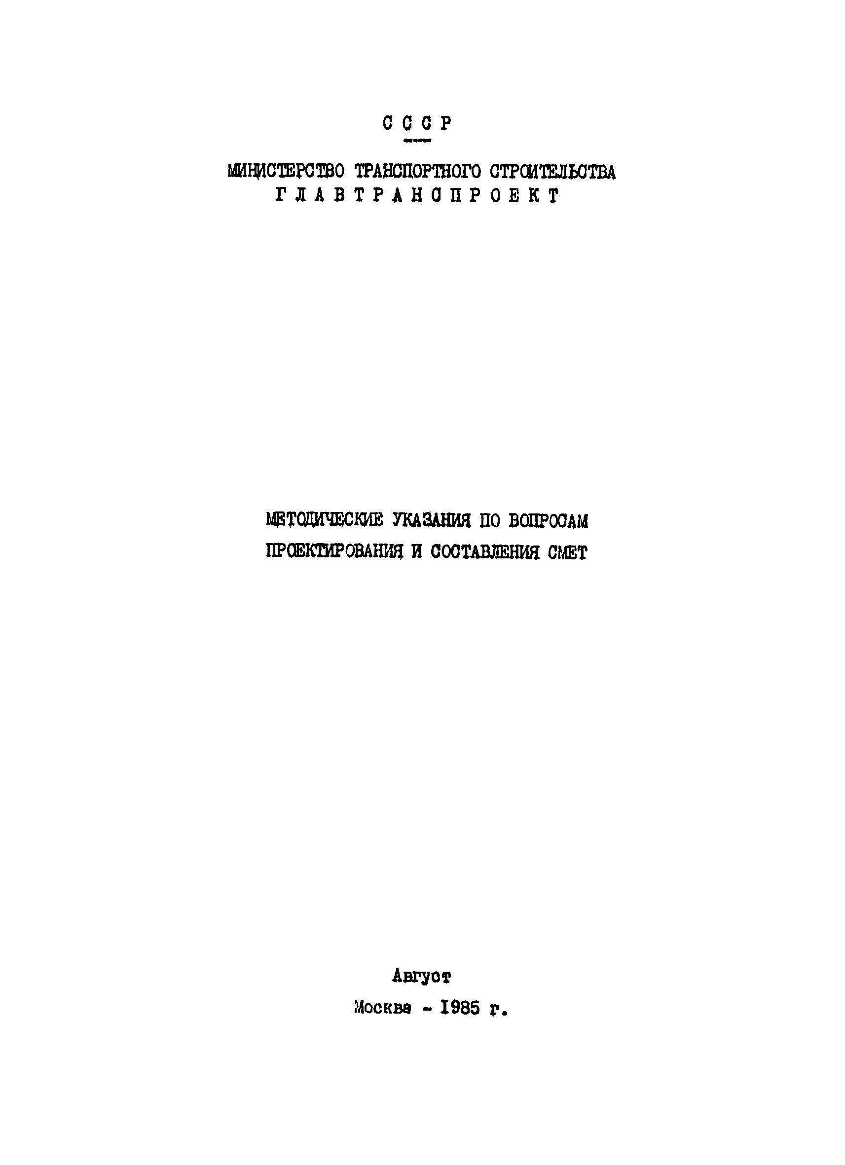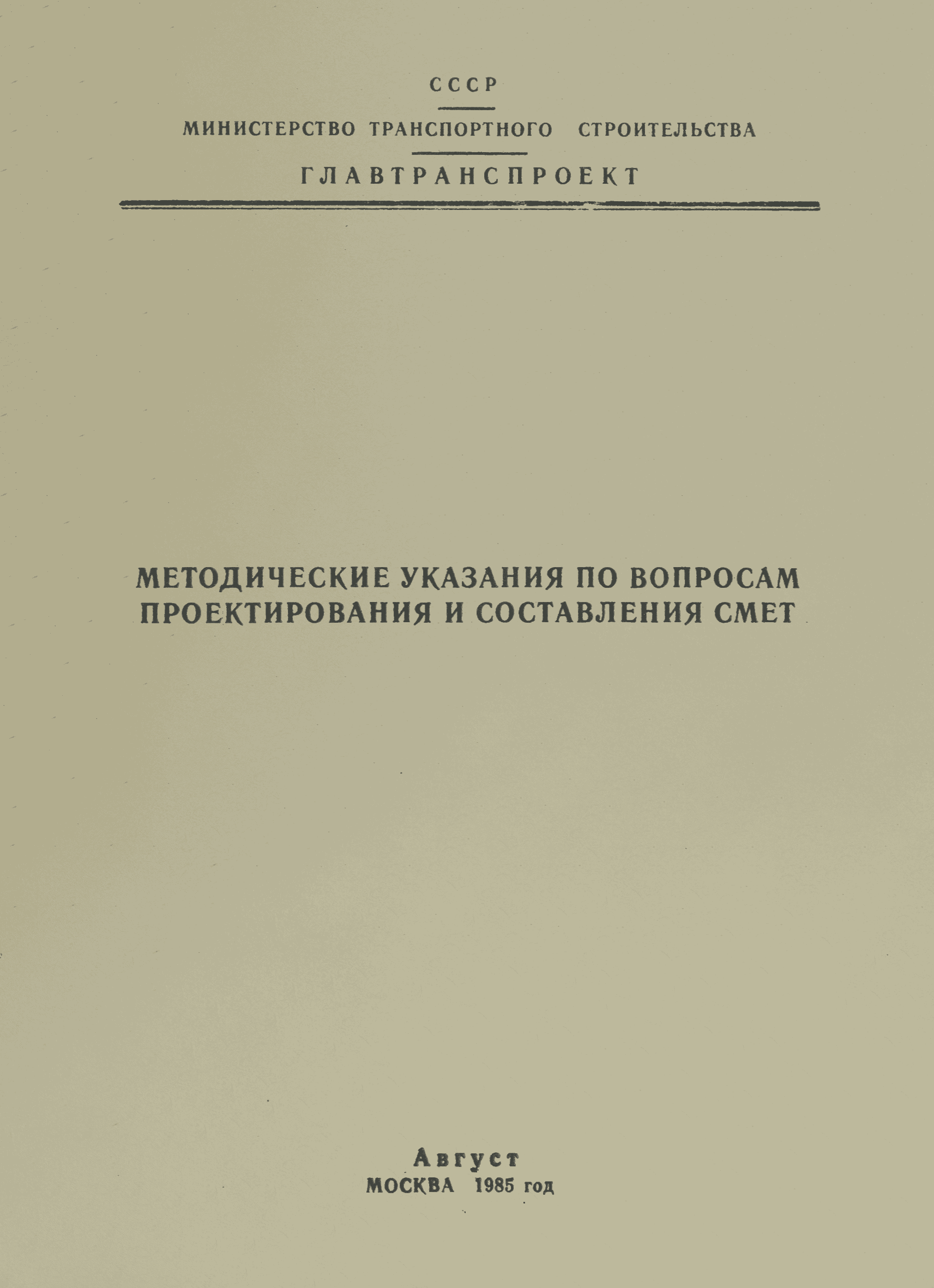 Методические указания по вопросам проектирования и составления смет (август 1985)| Статус: | справочные материалы, мп, тпр | | Название рус.: | Методические указания по вопросам проектирования и составления смет (август 1985) | | Дата добавления в базу: | 01.01.2018 | | Дата актуализации: | 01.01.2021 | | Утверждён: | Министерство транспортного строительства СССР (USSR Ministry of Transport Construction )