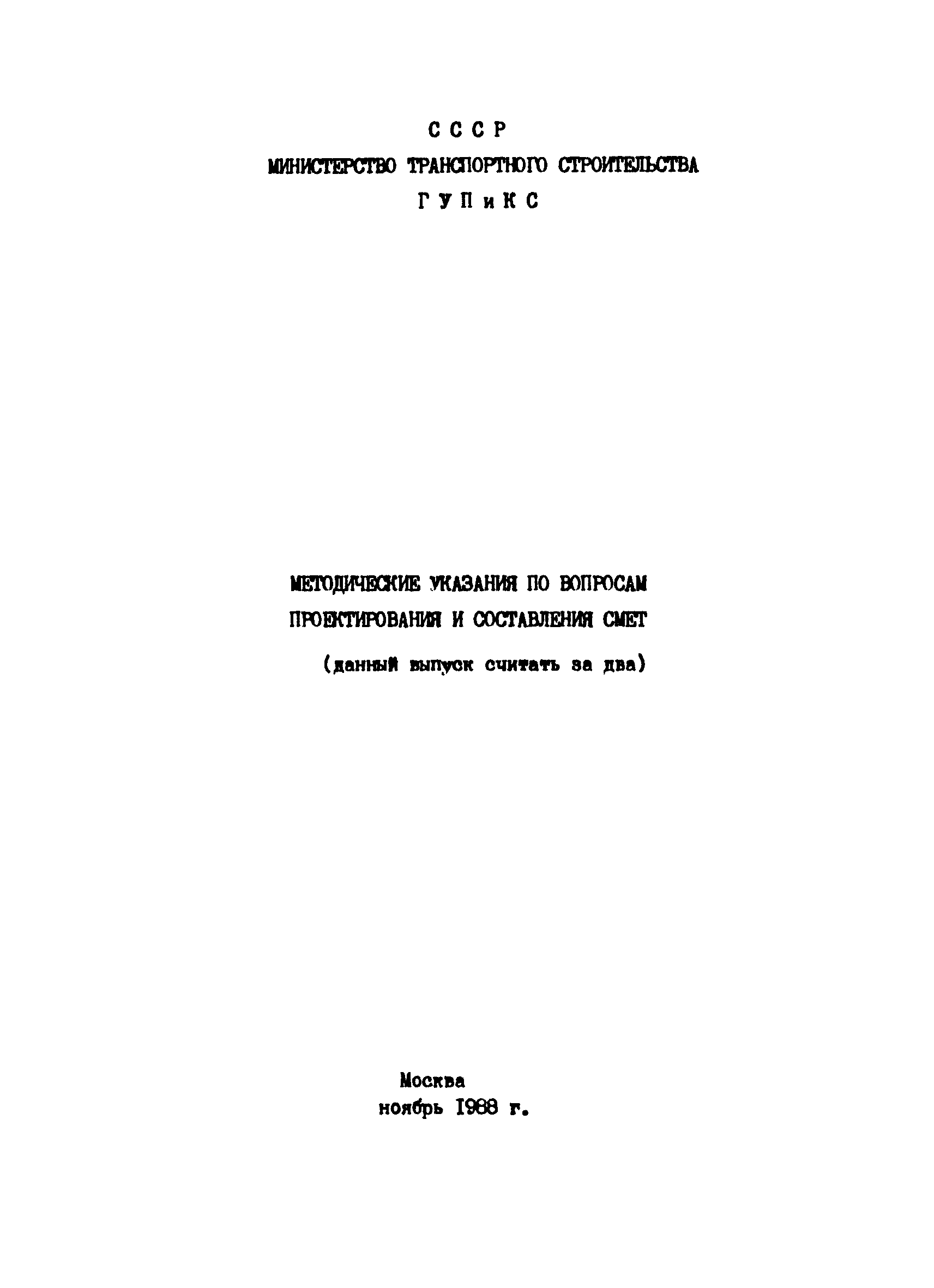 Методические указания по вопросам проектирования и составления смет (ноябрь 1988)| Статус: | справочные материалы, мп, тпр | | Название рус.: | Методические указания по вопросам проектирования и составления смет (ноябрь 1988) | | Дата добавления в базу: | 01.01.2018 | | Дата актуализации: | 01.01.2021 | | Утверждён: | Министерство транспортного строительства СССР (USSR Ministry of Transport Construction )