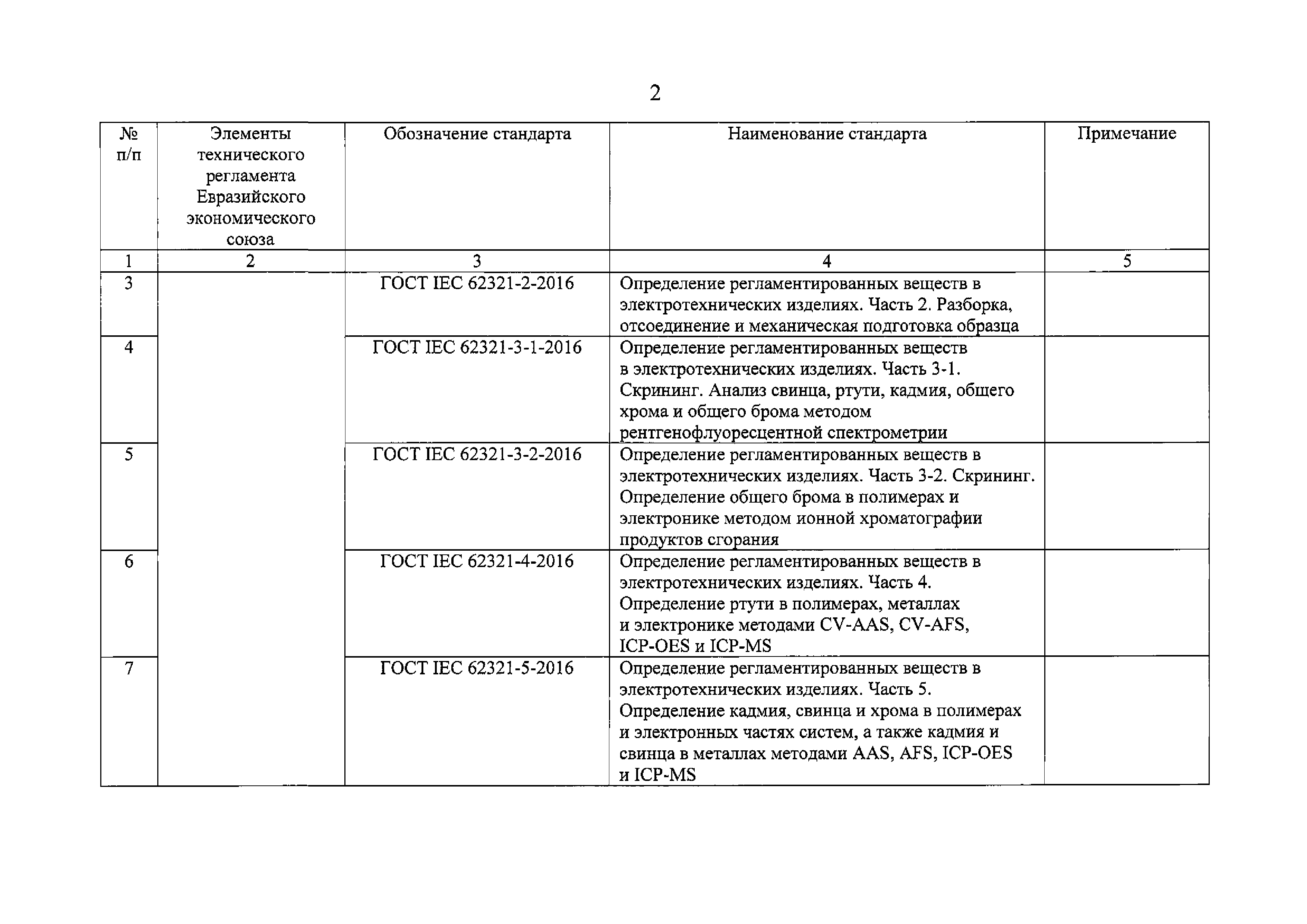 | | Нормативные ссылки: |   ТР ЕАЭС 037/2016 «Об ограничении применения опасных веществ в изделиях электротехники и радиоэлектроники» СТБ IEC/PAS 62596-2012 «Изделия электротехнические. Определение содержания веществ ограниченного применения. Руководство по отбору проб» ГОСТ IEC 62321-3-1-2016 «Определение регламентированных веществ в электротехнических изделиях. Часть 3-1. Скрининг. Анализ свинца, ртути, кадмия, общего хрома и общего брома методом рентгенофлуоресцентной спектрометрии» ГОСТ IEC 62321-3-2-2016 «Определение регламентированных веществ в электротехнических изделиях. Часть 3-2. Скрининг. Определение общего брома в полимерах и электронике методом ионной хроматографии продуктов сгорания» ГОСТ IEC 62321-1-2016 «Определение регламентированных веществ в электротехнических изделиях. Часть 1. Введение и обзор» ГОСТ IEC 62321-2-2016 «Определение регламентированных веществ в электротехнических изделиях. Часть 2. Разборка, отсоединение и механическая подготовка образца» ГОСТ IEC 62321-4-2016 «Определение регламентированных веществ в электротехнических изделиях. Часть 4. Определение ртути в полимерах, металлах и электронике методами CV-AAS, CV-AFS, ICP-OES и ICP-MS» ГОСТ IEC 62321-5-2016 «Определение регламентированных веществ в электротехнических изделиях. Часть 5. Определение кадмия, свинца и хрома в полимерах и электронных частях систем, а также кадмия и свинца в металлах методами AAS, AFS, ICP-OES и ICP-MS» СТБ IEC 62321-2012 «Изделия электротехнические. Определение уровня шести регламентированных веществ (свинца, ртути, кадмия, шестивалентного хрома, полибромбифенилов, полибромированных дифениловых эфиров)» ГОСТ EN 50581-2016 «Техническая документация для оценки электрических и электронных изделий относительно ограничения использования опасных веществ»