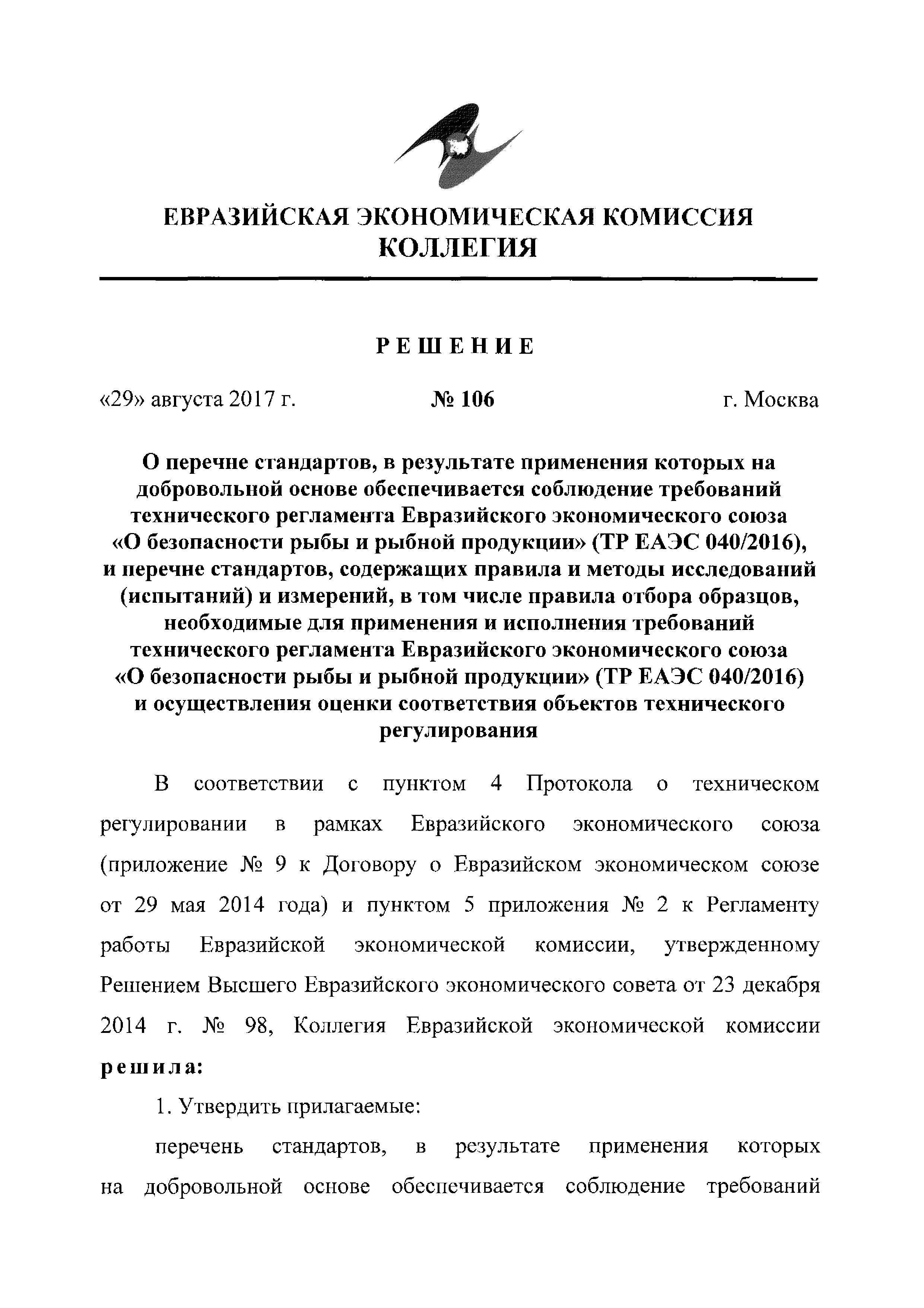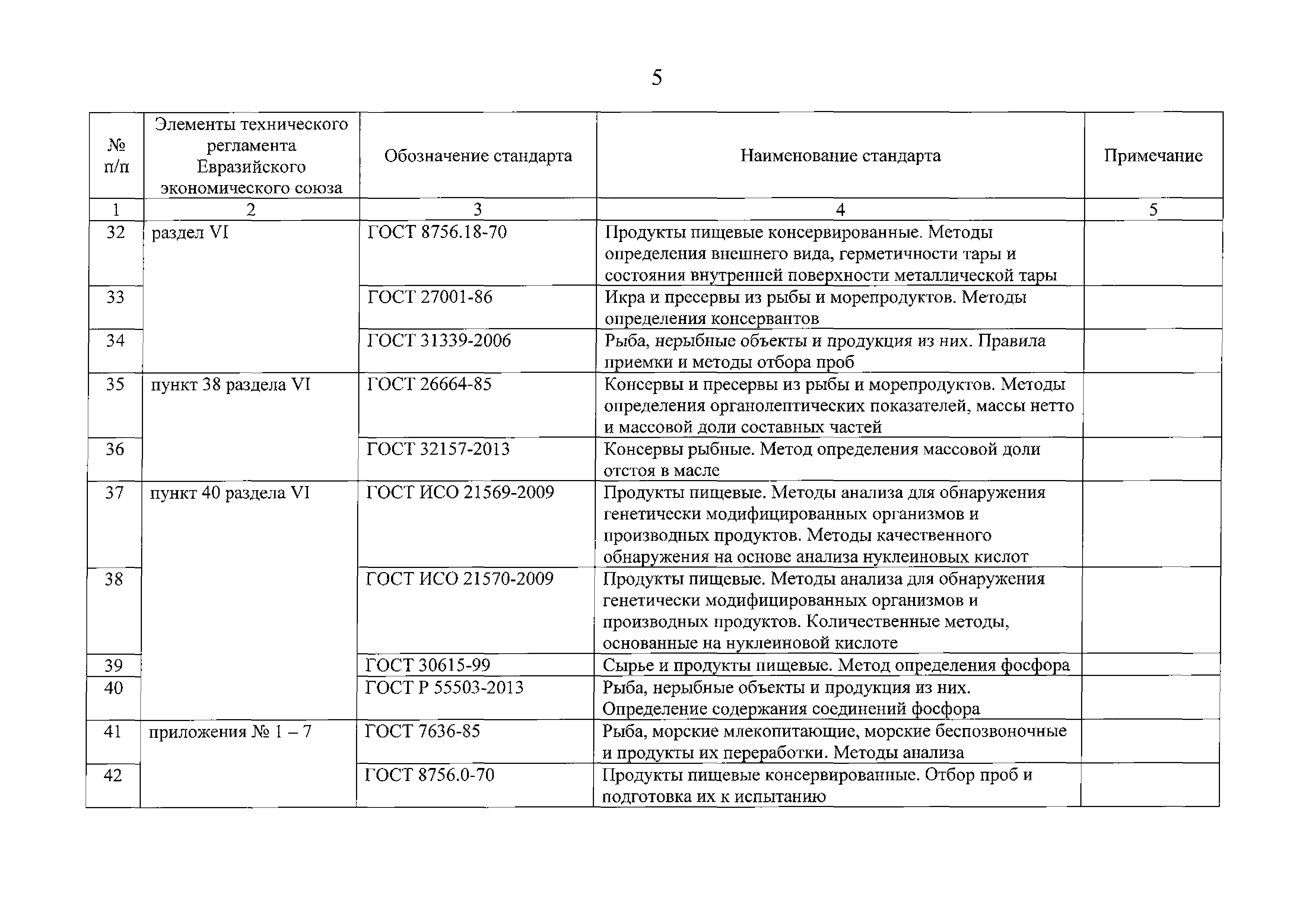 | Название рус.: | Перечень стандартов, содержащих правила и методы исследований (испытаний) и измерений, в том числе правила отбора образцов, необходимые для применения и исполнения требований технического регламента Евразийского экономического союза "О безопасности рыбы и рыбной продукции" (ТР ЕАЭС 040/2016) и осуществления оценки соответствия объектов технического регулирования |