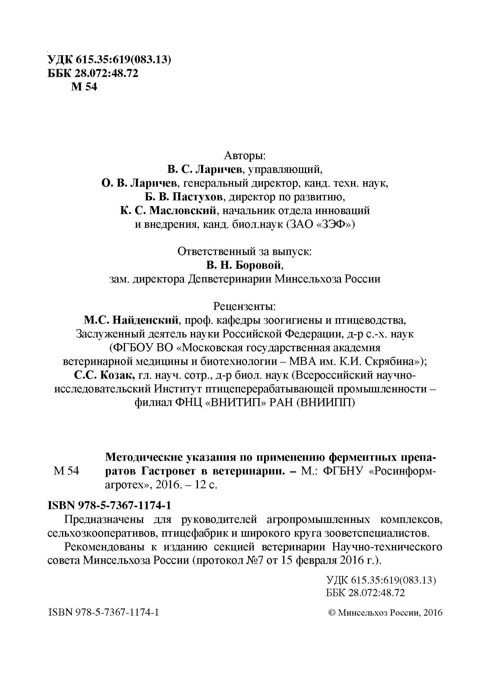 | Название рус.: | Методические указания по применению ферментных препаратов Гастровет в ветеринарии |