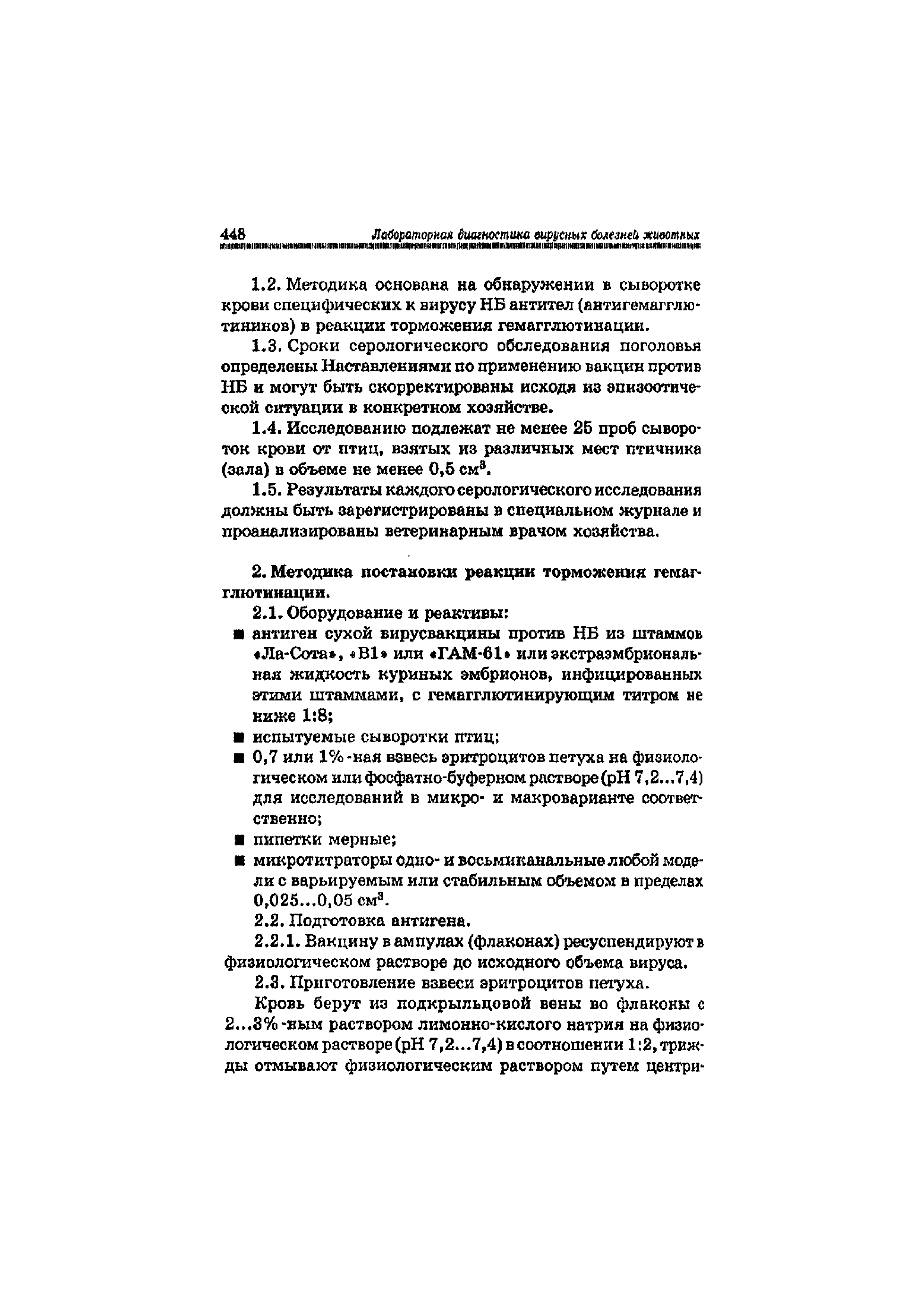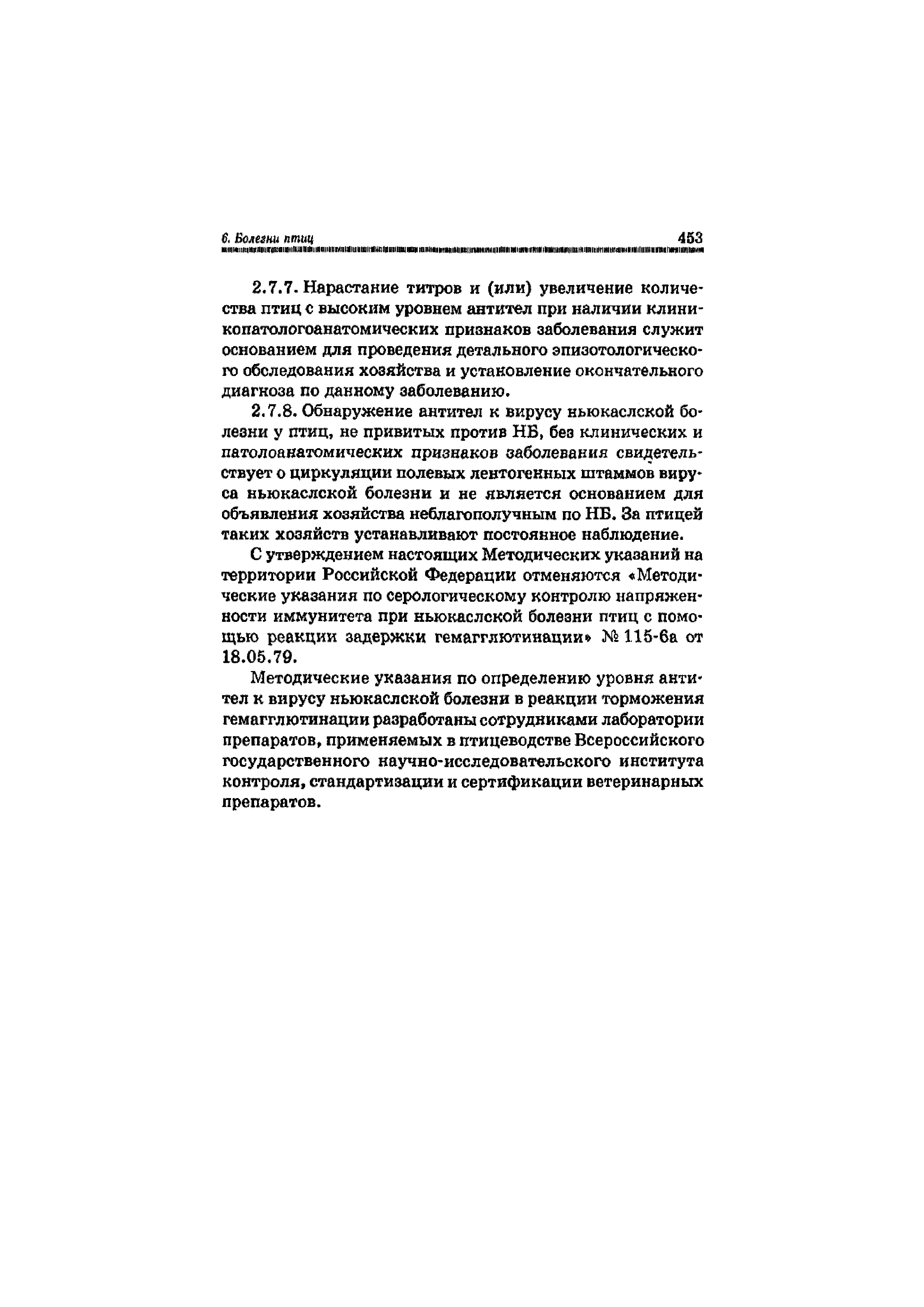 | Заменяет собой: | - «Методические указания по серологическому контролю напряженности иммунитета при ньюкаслской болезни птиц с помощью реакции задержки гемагглютинации»