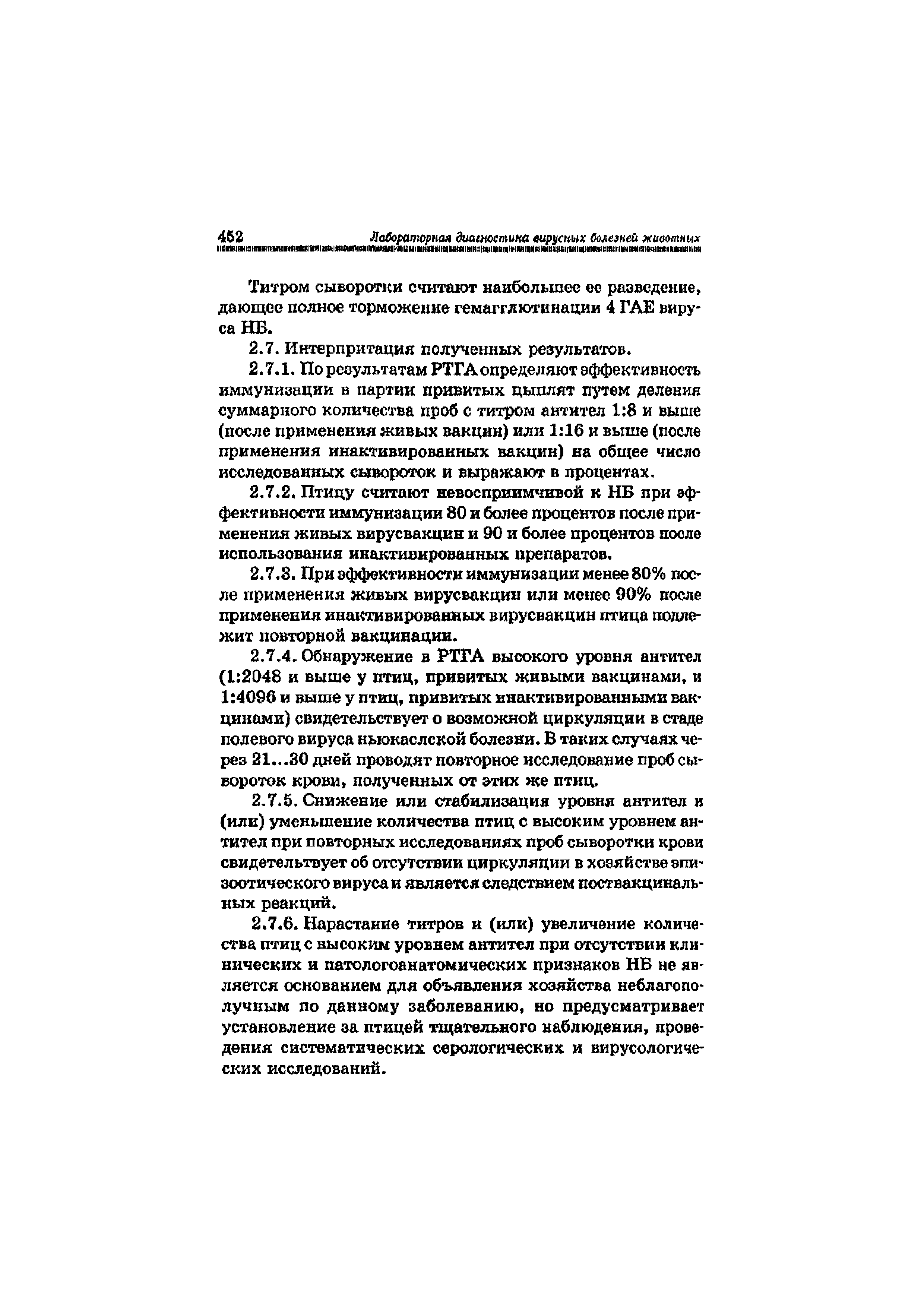 | Название рус.: | Методические указания по определению уровня антител к вирусу ньюкаслской болезни в реакции торможения гемагглютинации (РТГА) |