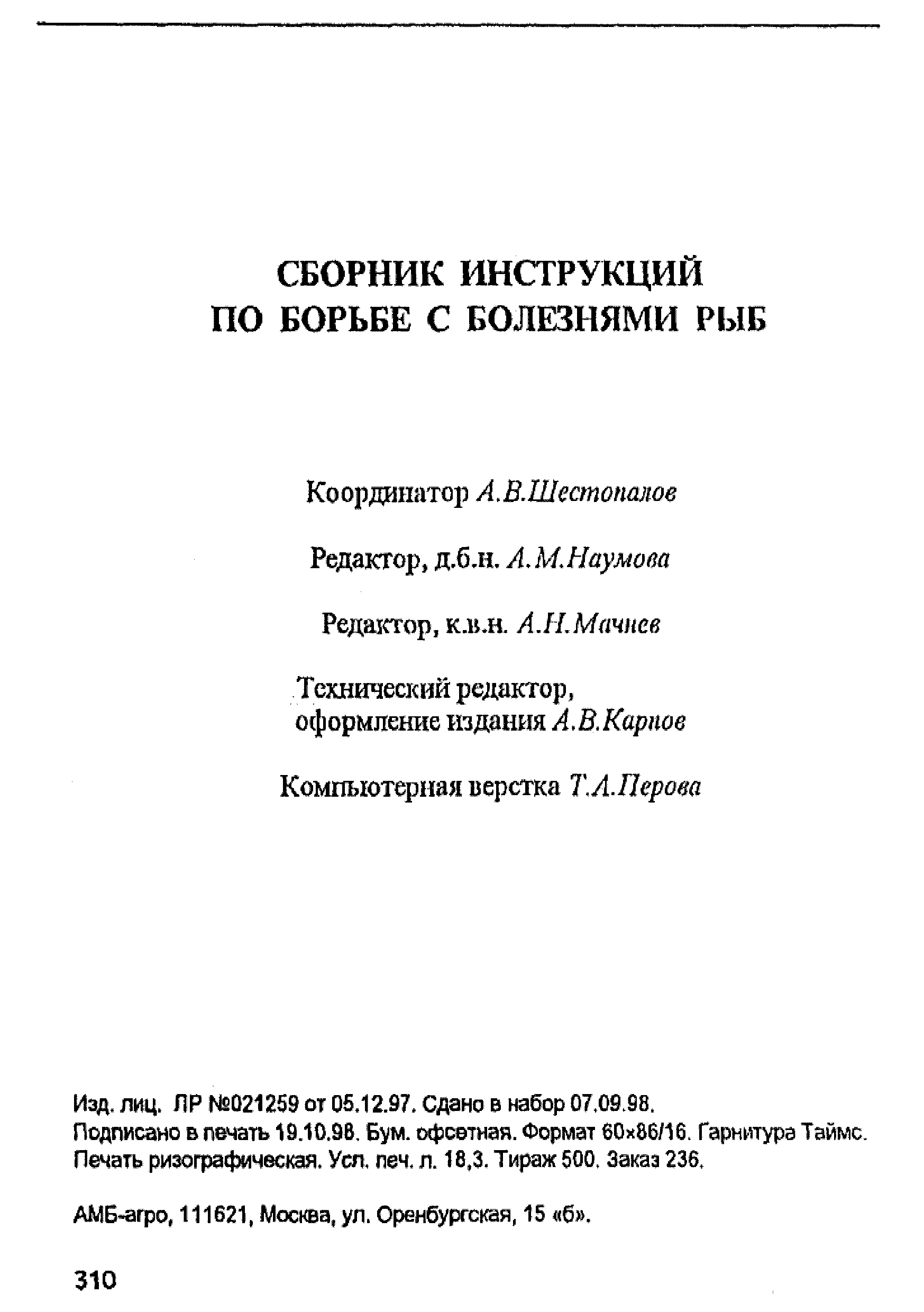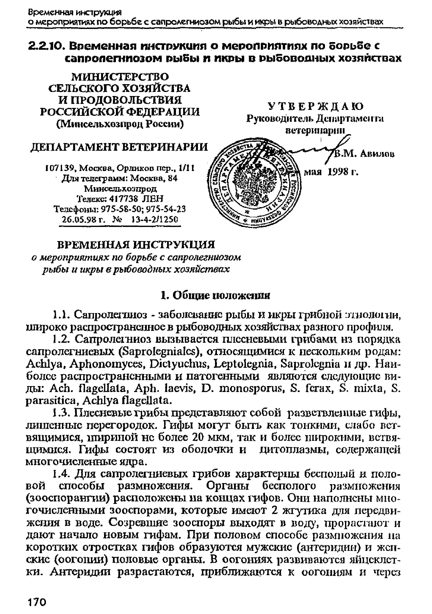 | Название рус.: | Временная инструкция о мероприятиях по борьбе с сапролегниозом рыбы и икры в рыбоводных хозяйствах |