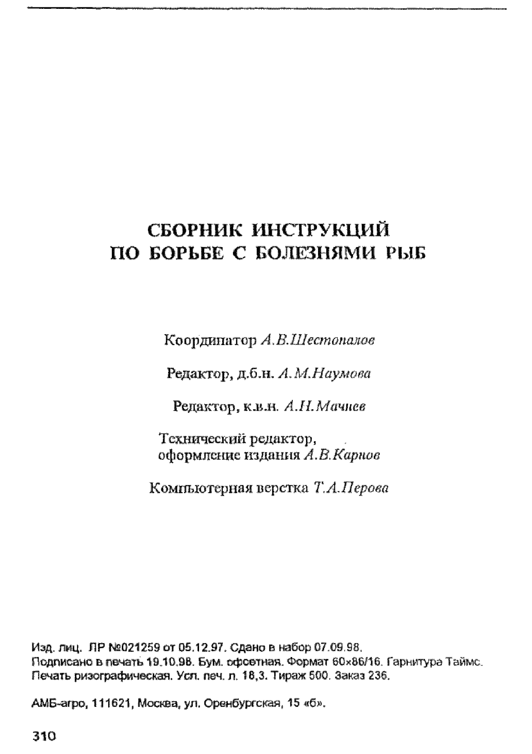 | Название рус.: | Методические указания по лабораторной диагностике псевдомонозов рыб |