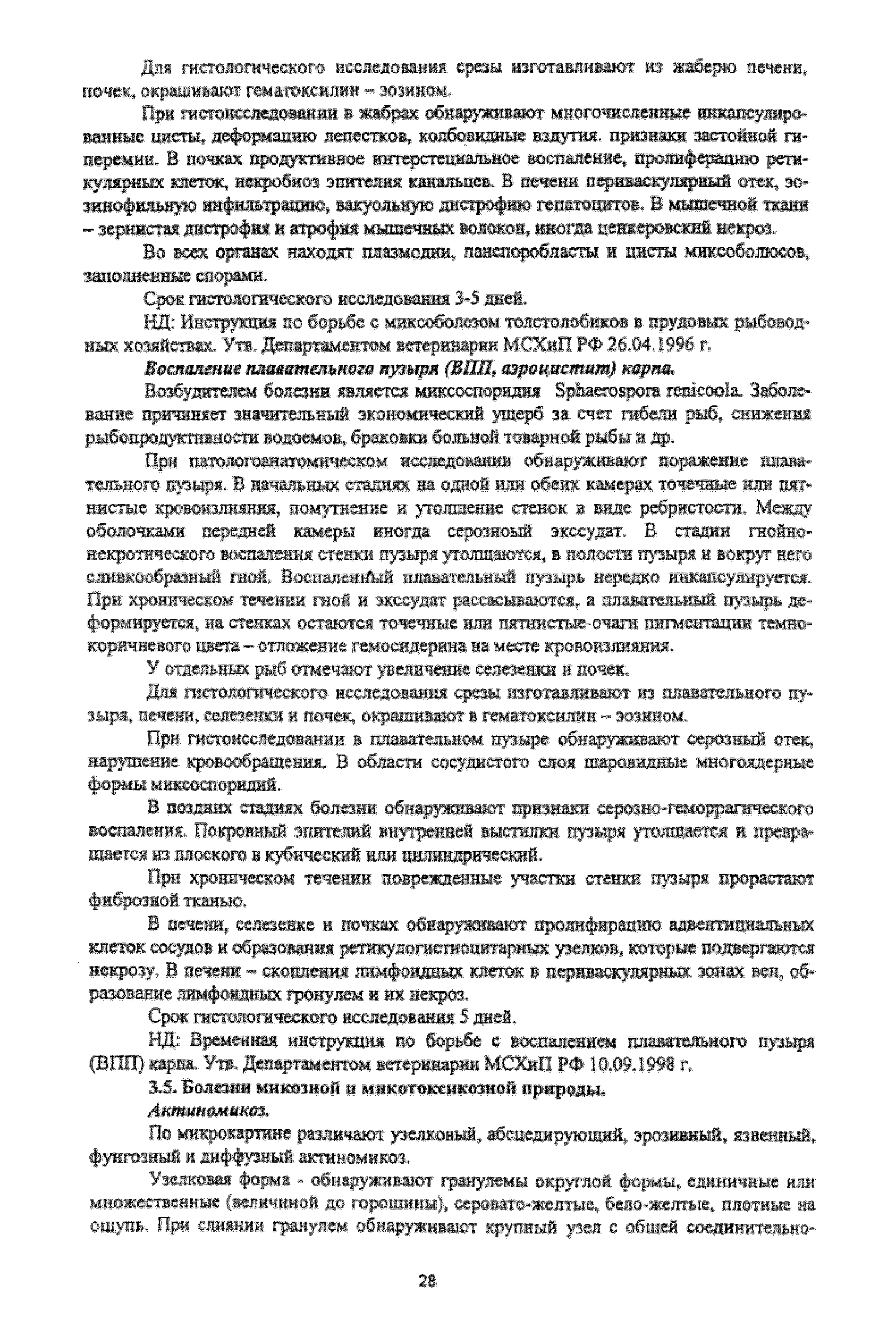 Методические указания по патоморфологической диагностике болезней животных, птиц и рыб в ветеринарных лабораториях| Статус: | действует | | Название рус.: | Методические указания по патоморфологической диагностике болезней животных, птиц и рыб в ветеринарных лабораториях | | Дата добавления в базу: | 01.01.2018 | | Дата актуализации: | 01.01.2021 | | Оглавление: | 1. Общие положения 2. Методы вскрытия трупов животных, птиц и рыб 3. Специальная часть | | Разработан: | Центральная научно-методическая ветеринарная лаборатория Департамент ветеринарии Минсельхоза России