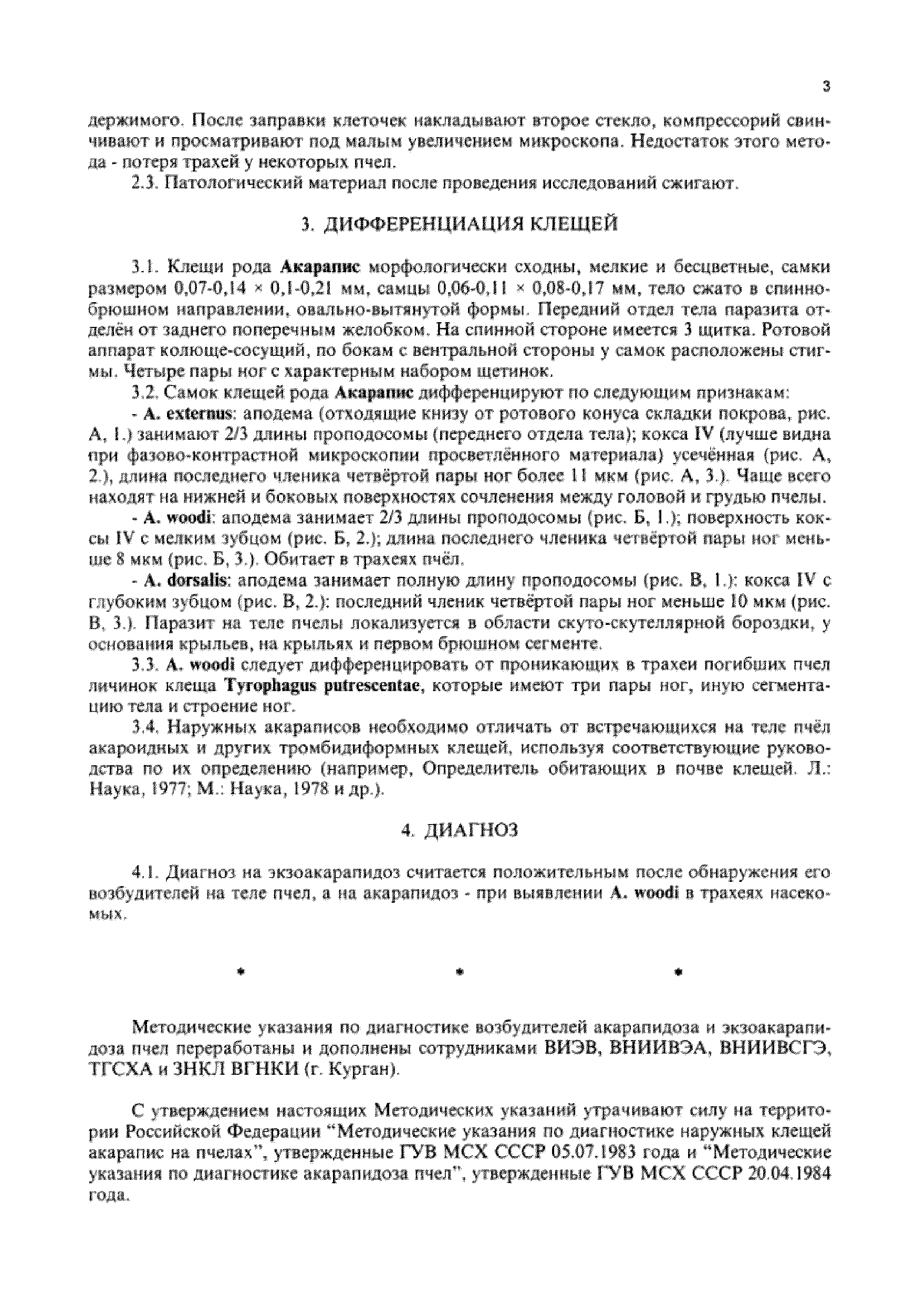 | Название рус.: | Методические указания по диагностике акарапидоза и экзоакарапидоза пчел |