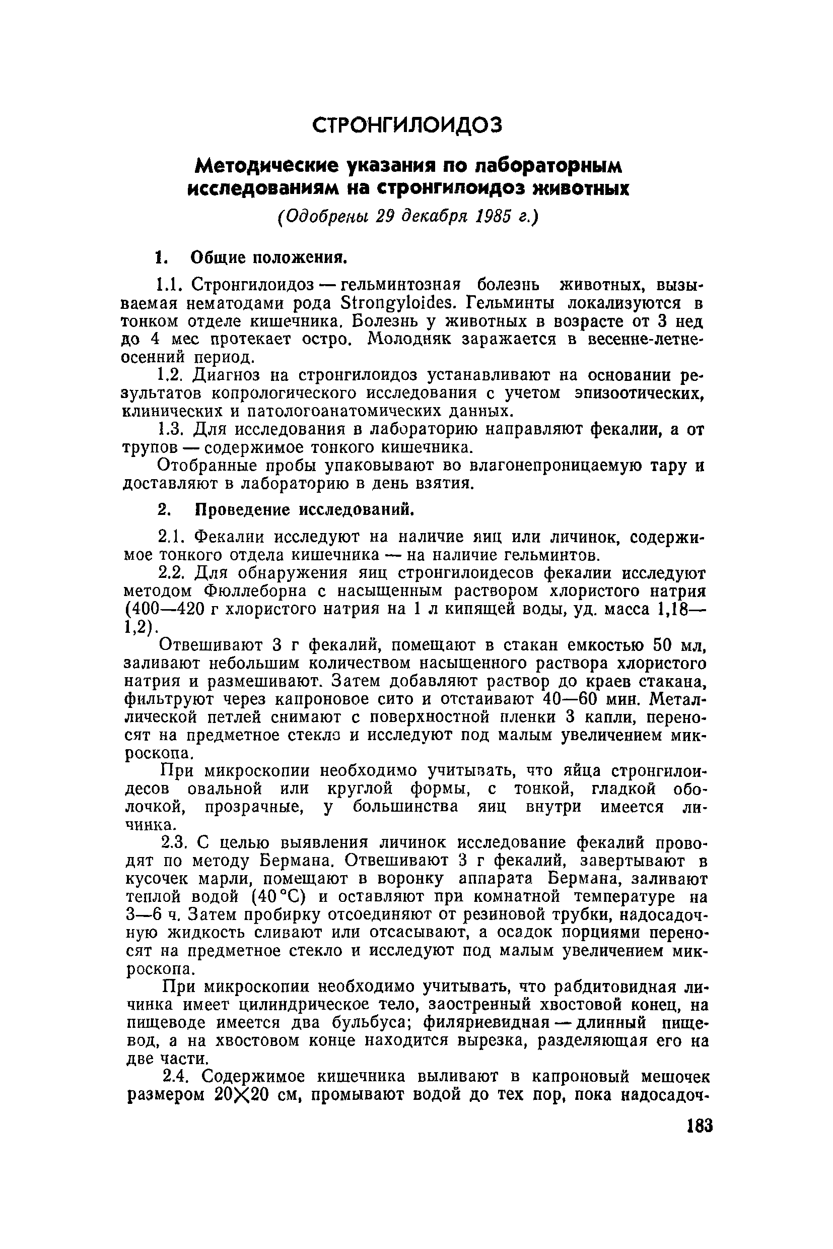 Методические указания по лабораторным исследованиям на стронгилоидоз животных| Статус: | действует | | Название рус.: | Методические указания по лабораторным исследованиям на стронгилоидоз животных | | Дата добавления в базу: | 01.01.2018 | | Дата актуализации: | 01.01.2021 | | Оглавление: | 1. Общие положения 2. Проведение исследований | | Утверждён: | 29.12.1985 Главное управление ветеринарии Министерства сельского хозяйства СССР