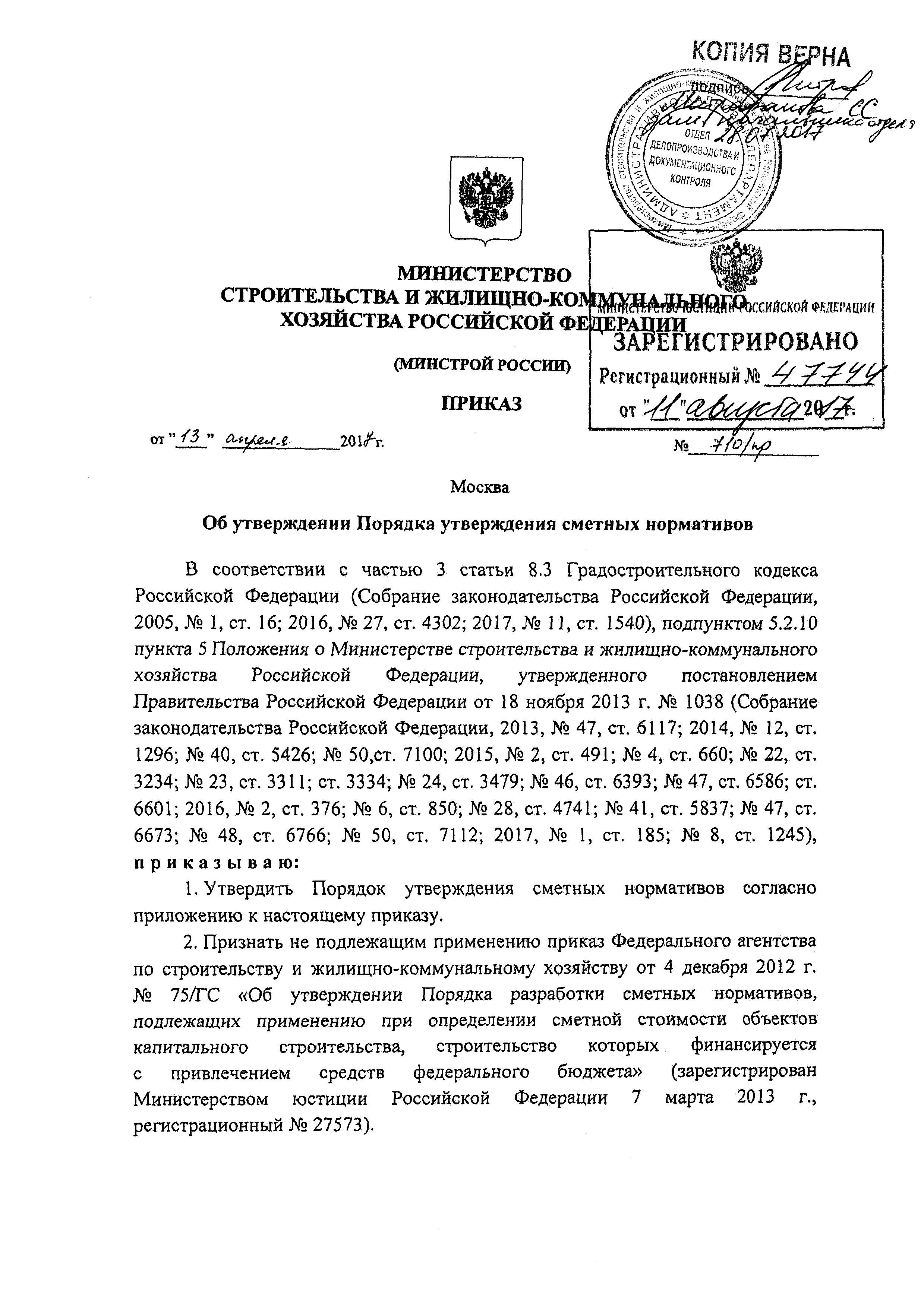| Область применения: | Порядок устанавливает правила планирования, рассмотрения и утверждения сметных нормативов, применяемых для определения сметной стоимости строительства, реконструкции, капитального ремонта объектов капитального строительства, в том числе многоквартирных домов |