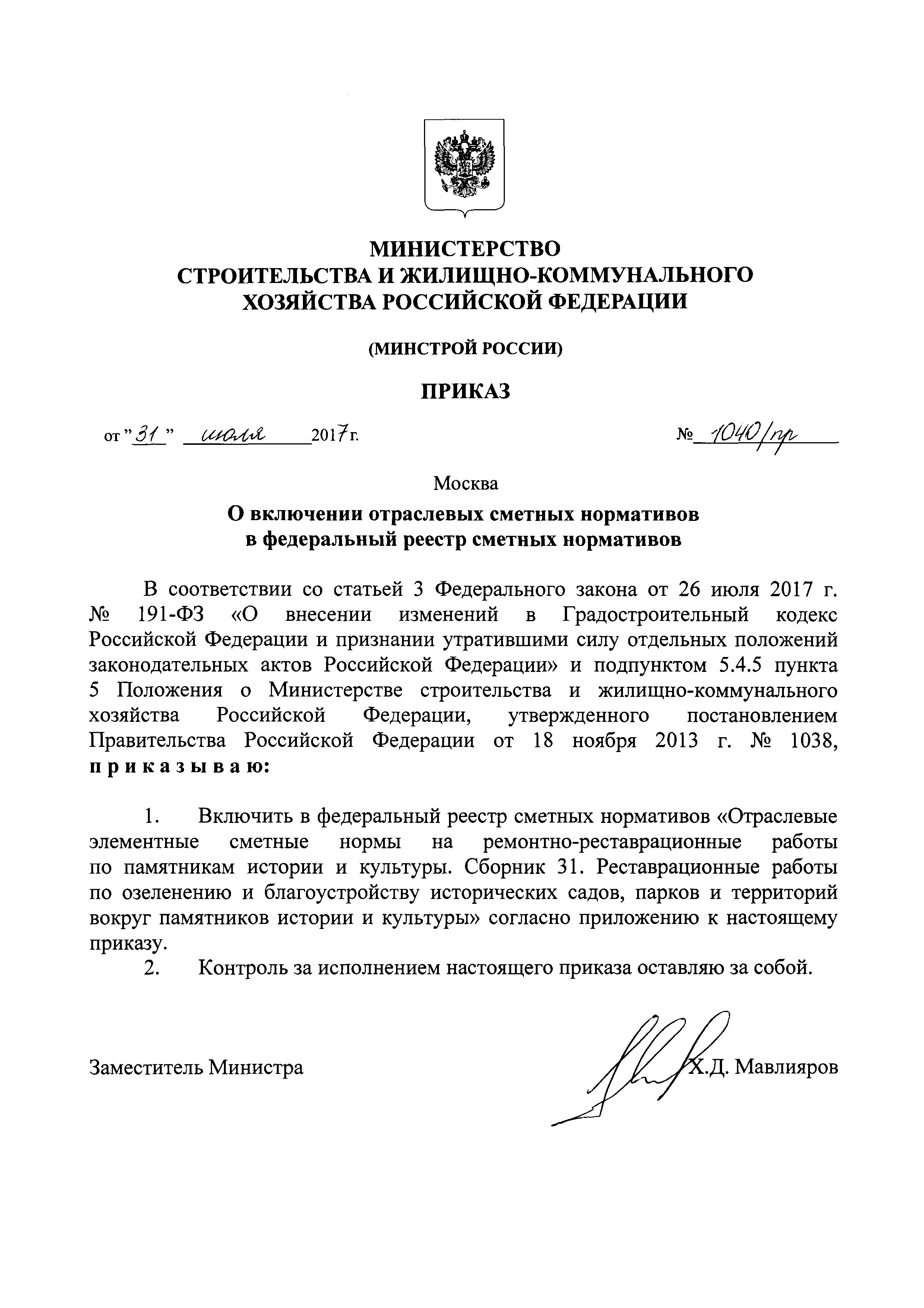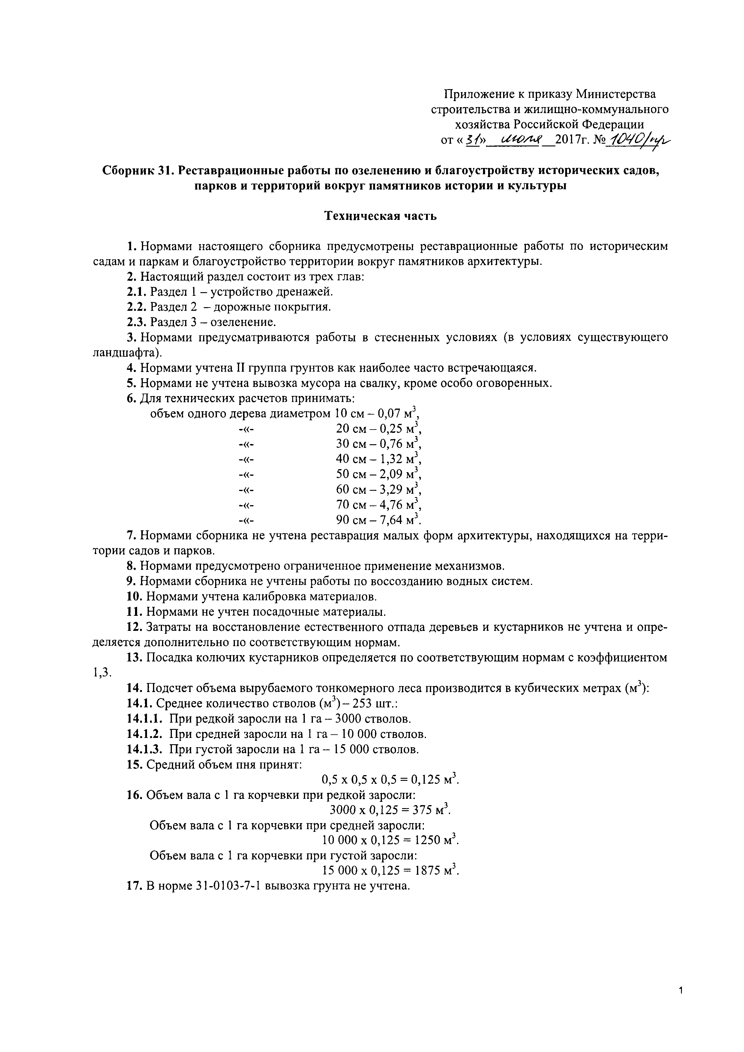 Сборник 31. Реставрационные работы по озеленению и благоустройству исторических садов, парков и территорий вокруг памятников истории и культуры. Отраслевые элементные сметные нормы на ремонтно-реставрационные работы по памятникам истории и культуры| Статус: | действует | | Название рус.: | Сборник 31. Реставрационные работы по озеленению и благоустройству исторических садов, парков и территорий вокруг памятников истории и культуры. Отраслевые элементные сметные нормы на ремонтно-реставрационные работы по памятникам истории и культуры | | Дата добавления в базу: | 01.01.2018 | | Дата актуализации: | 01.01.2021 | | Дата введения: | 31.07.2017 | | Область применения: | Нормами сборника предусмотрены реставрационные работы по историческим садам и паркам и благоустройство территории вокруг памятников архитектуры | | Утверждён: | 31.07.2017 Министерство строительства и жилищно-коммунального хозяйства Российской Федерации (1040/пр)
