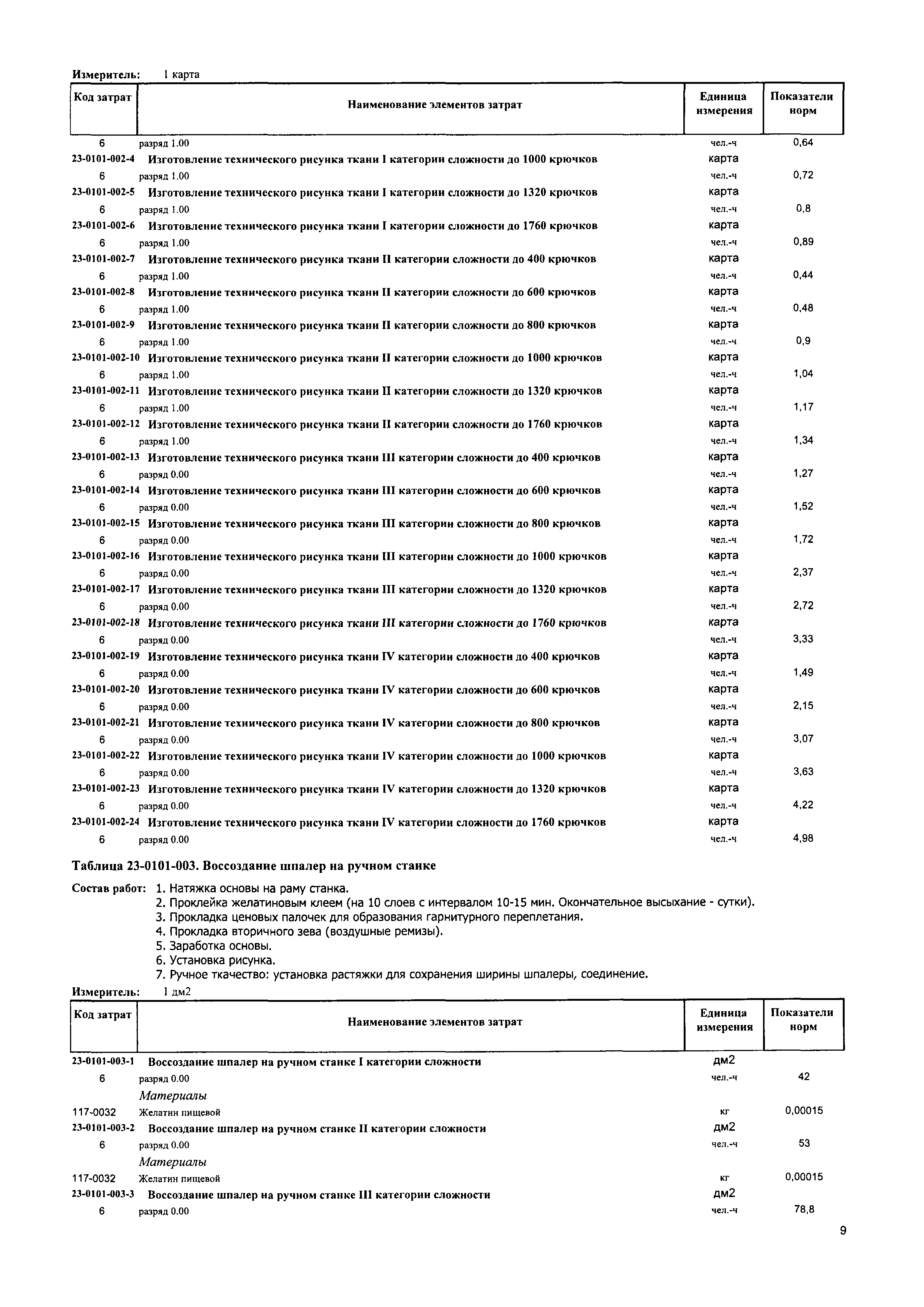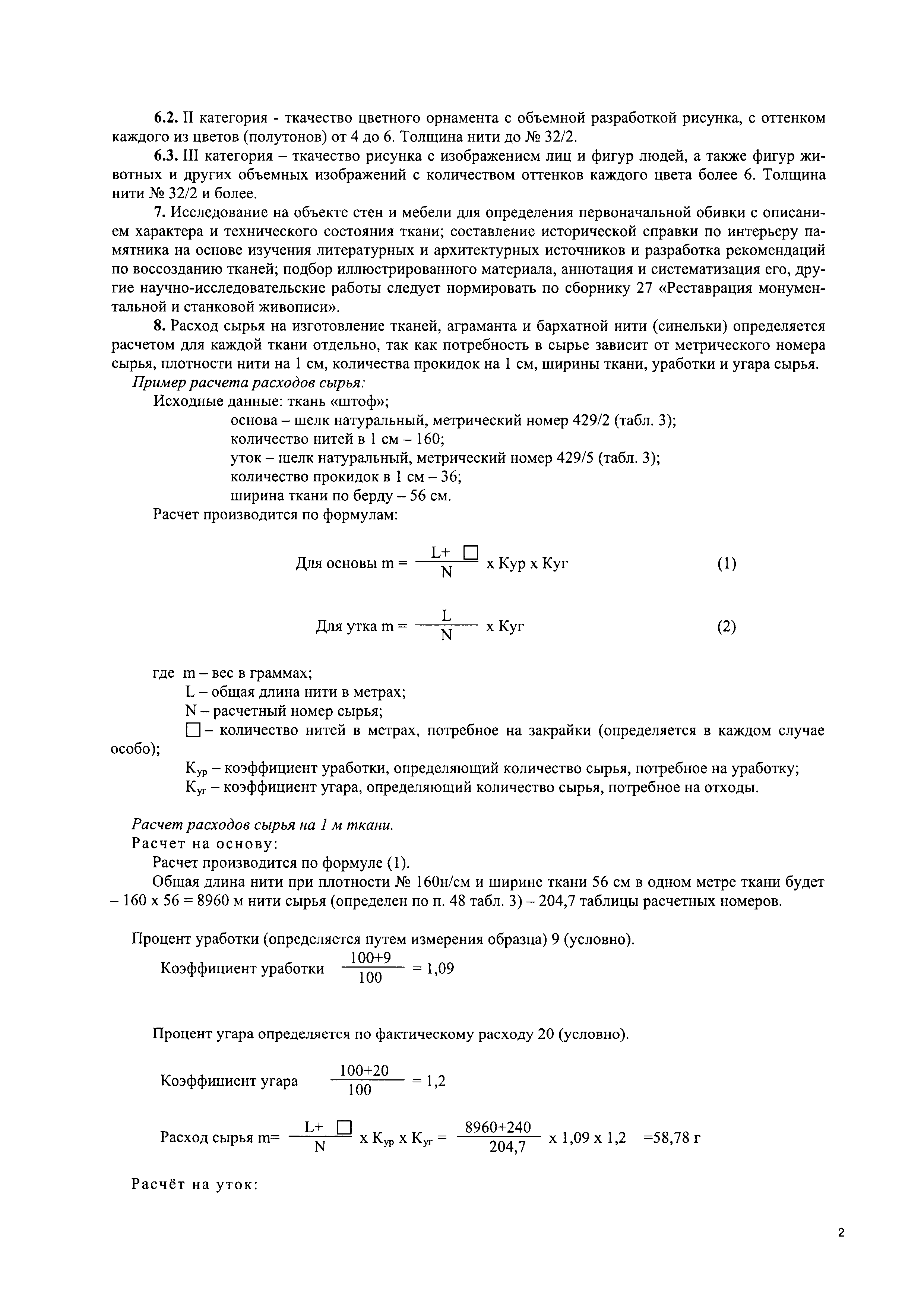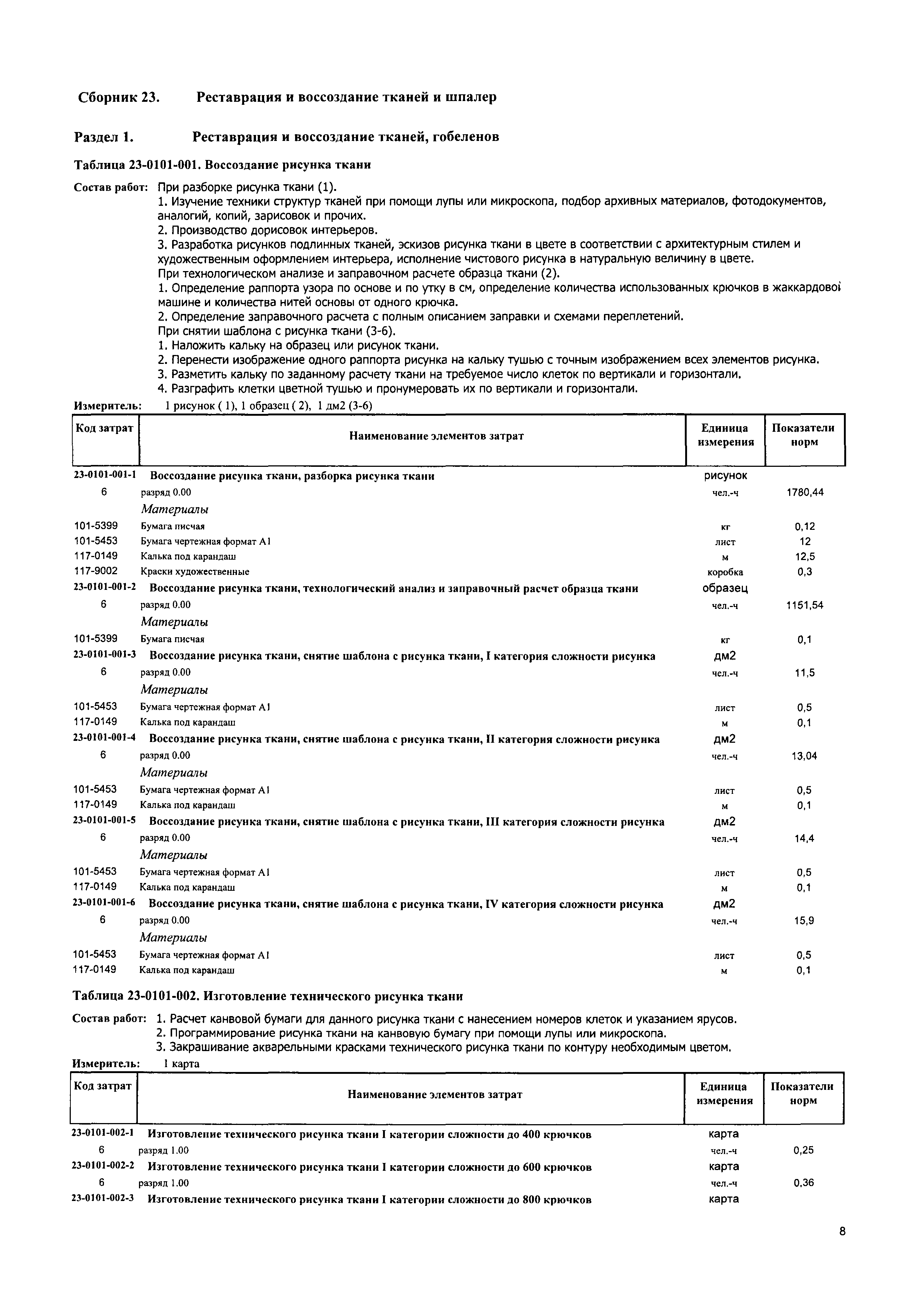 | Область применения: | Нормами раздела 1 сборника предусмотрены реставрация и воссоздание тканей и гобеленов по сохранившимся образцам и историко-архивным документам |