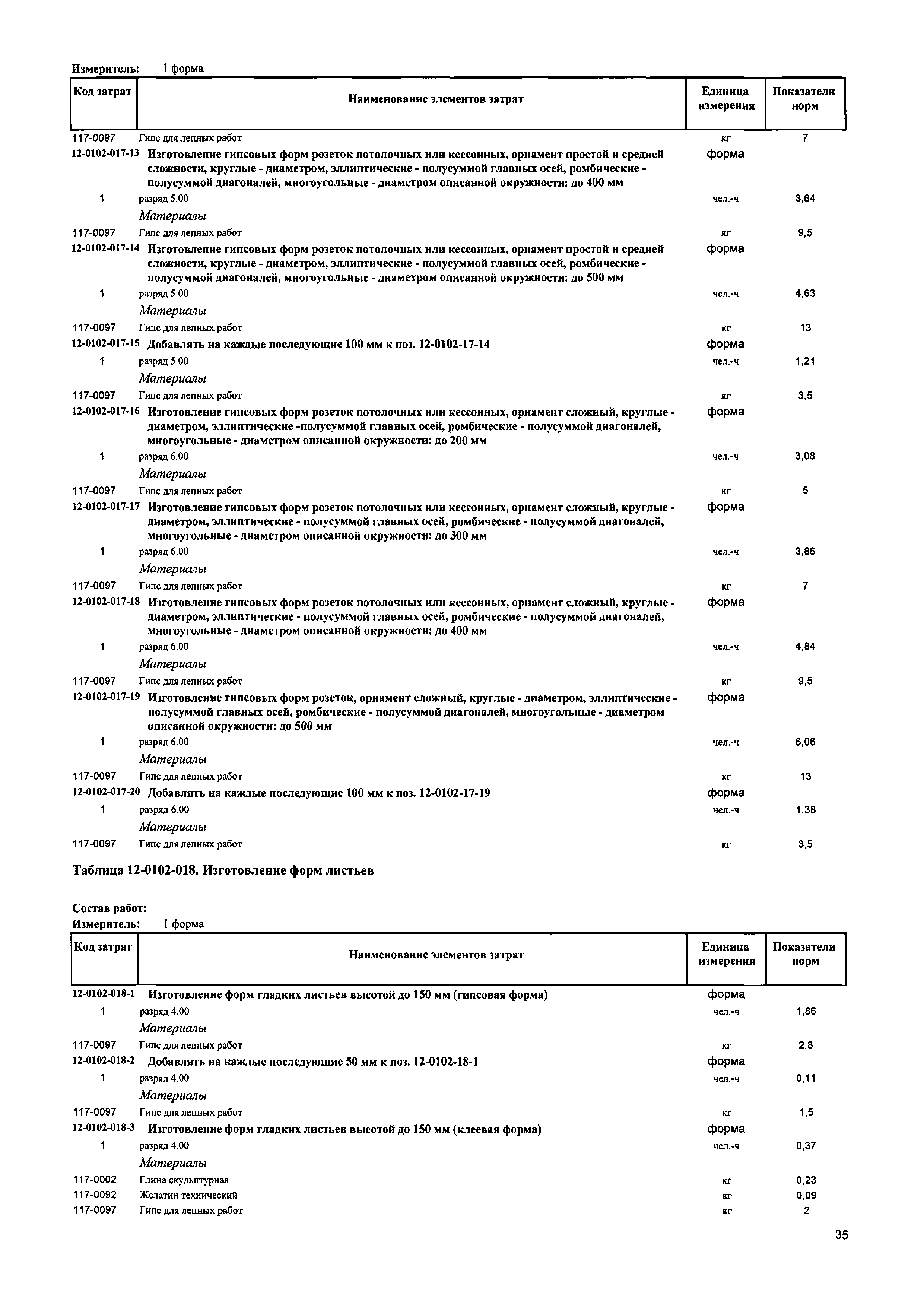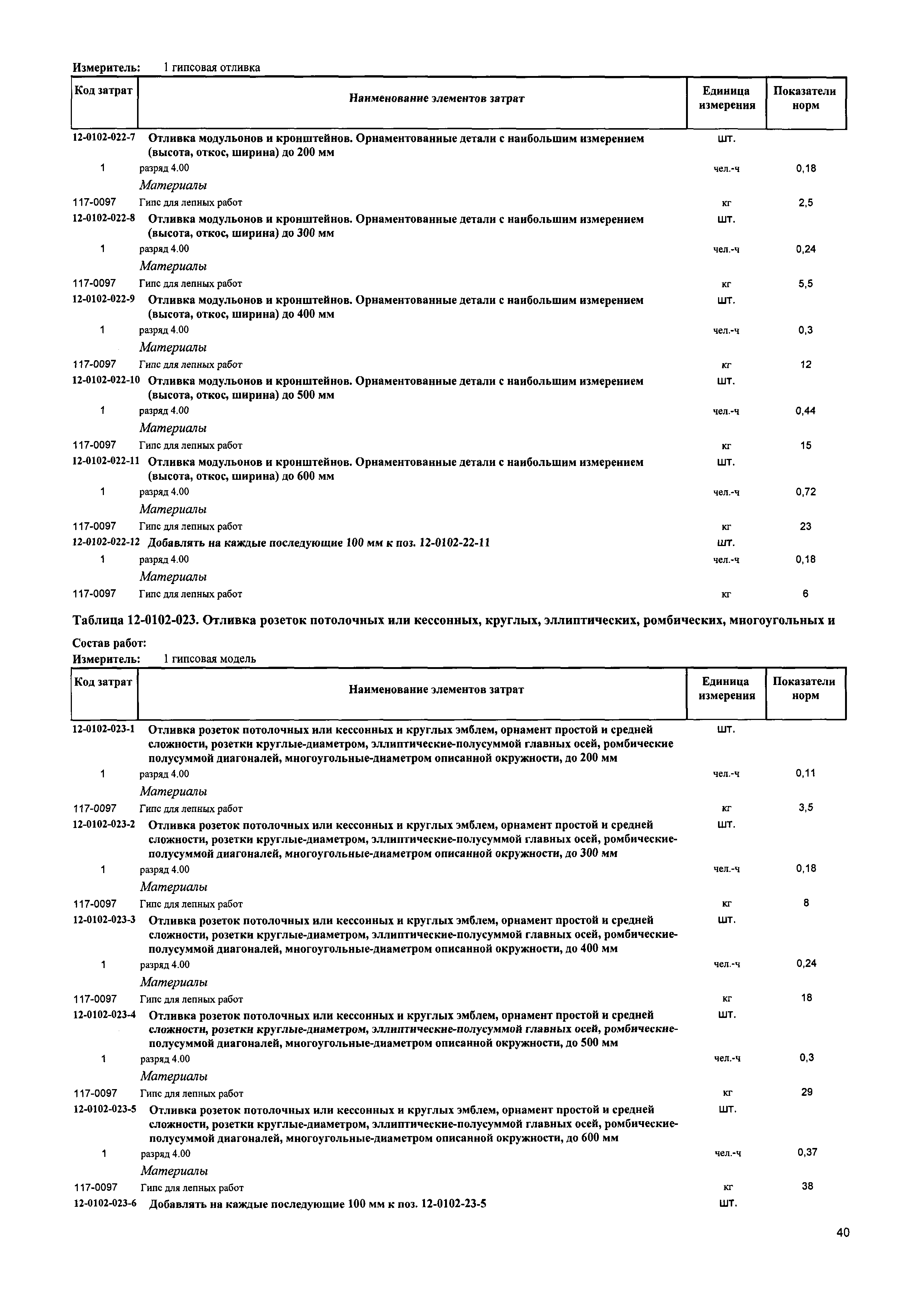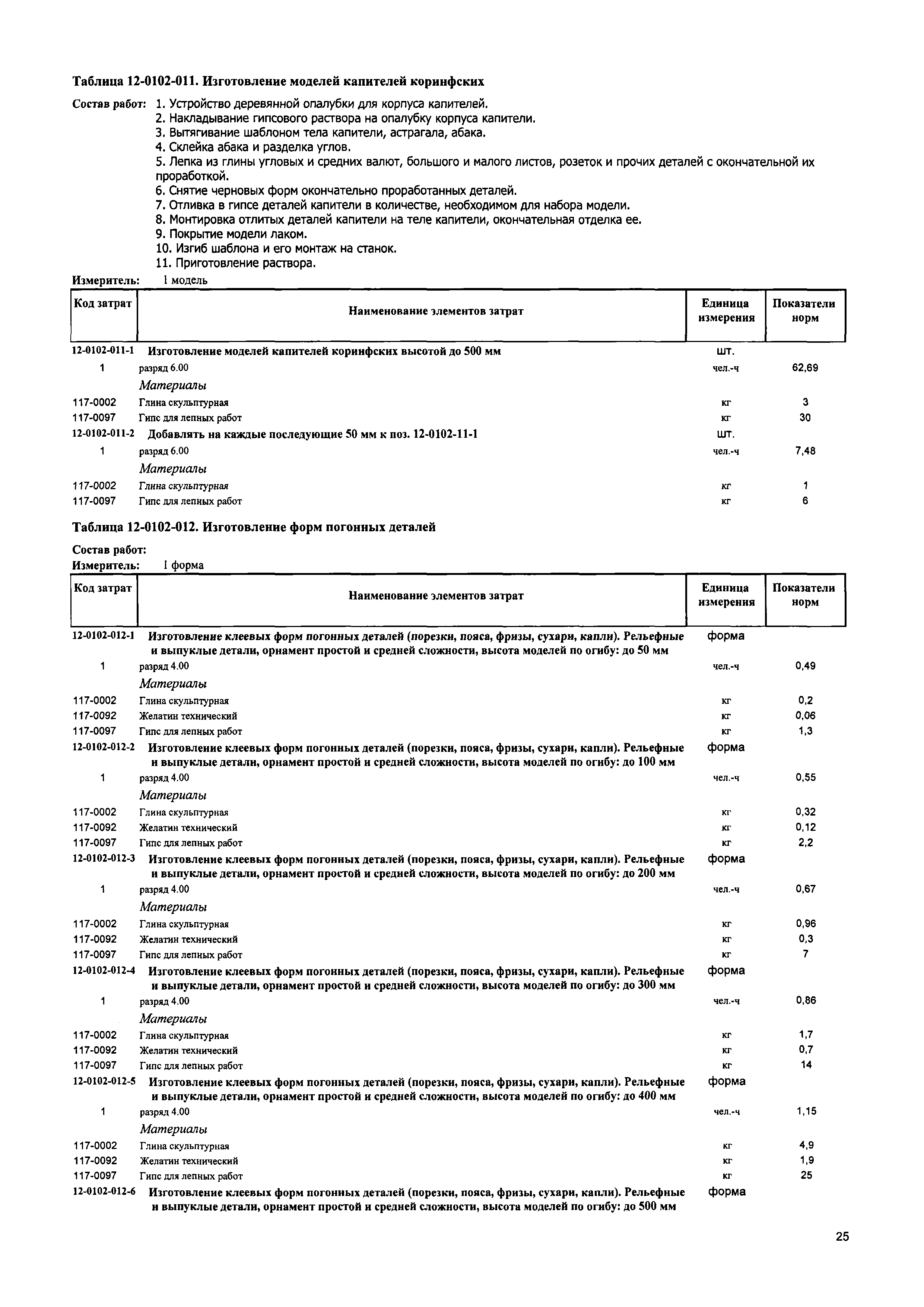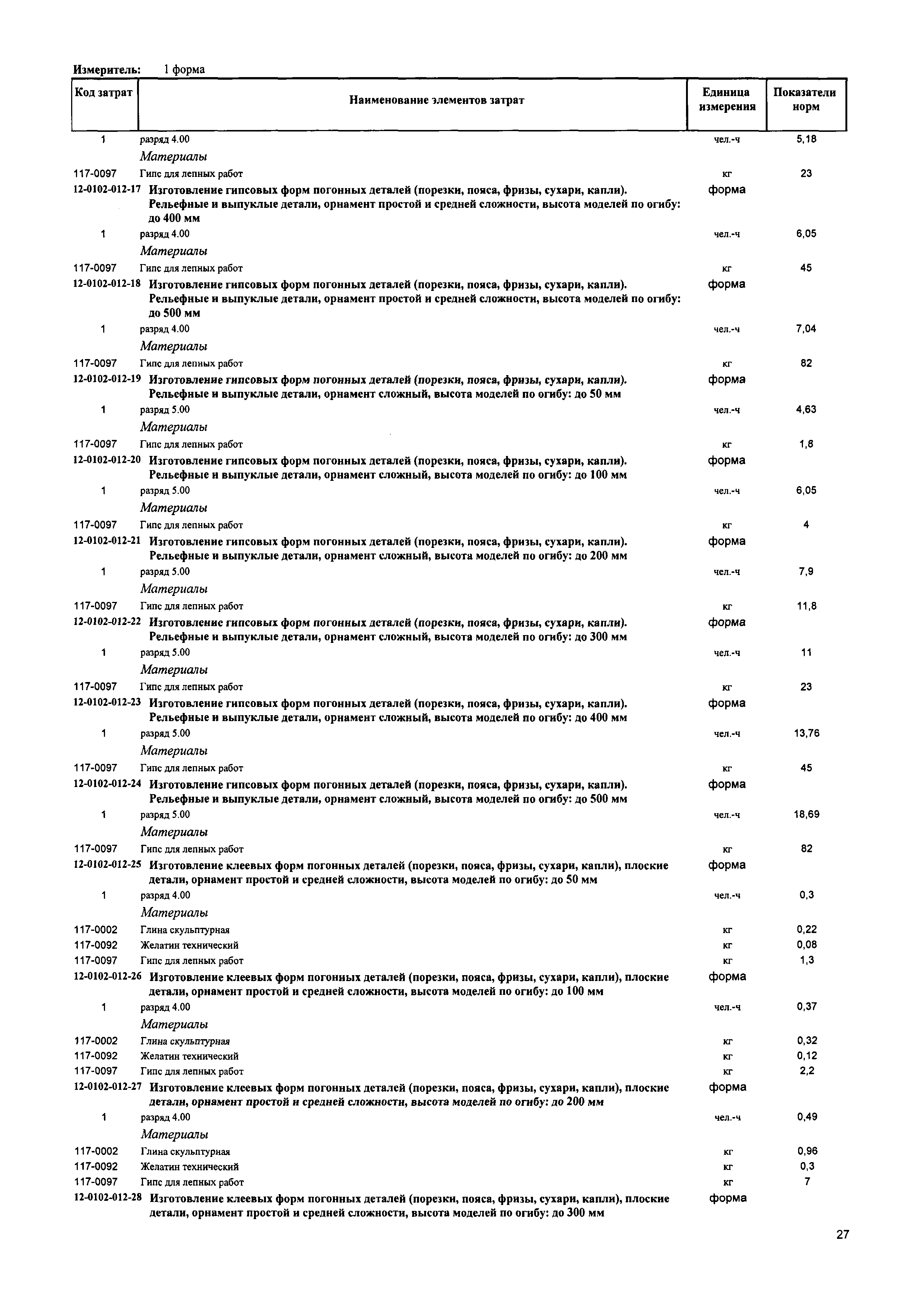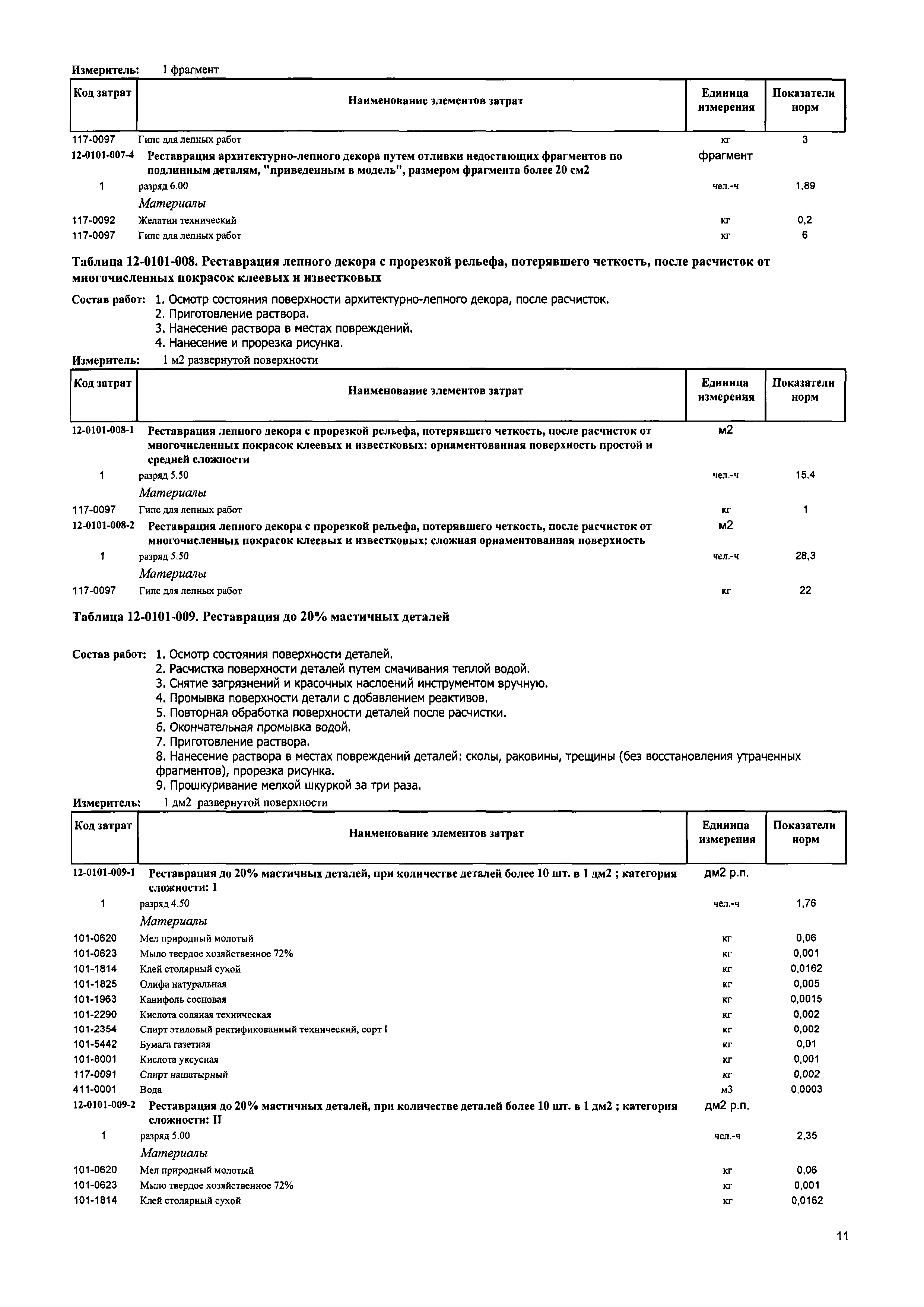 | Область применения: | Сборником предусмотрены нормы на реставрацию и воссоздание гипсового архитектурно-лепного декора в интерьерах или на фасадах памятников архитектуры, охраняемых государством |