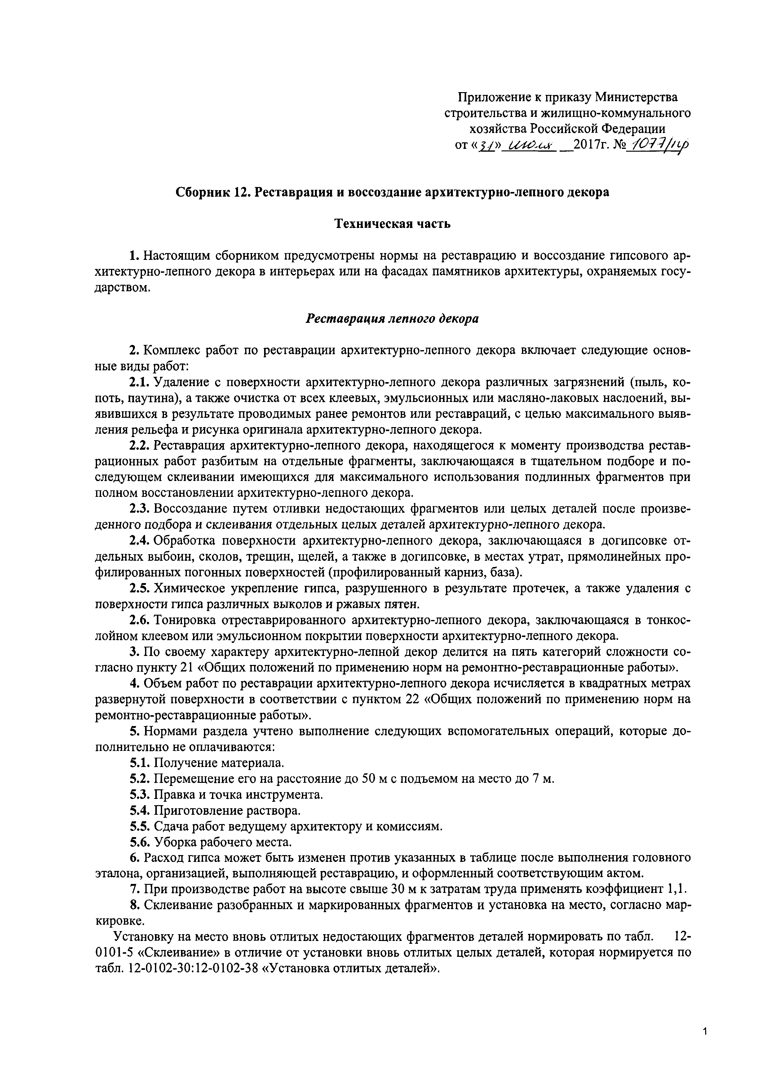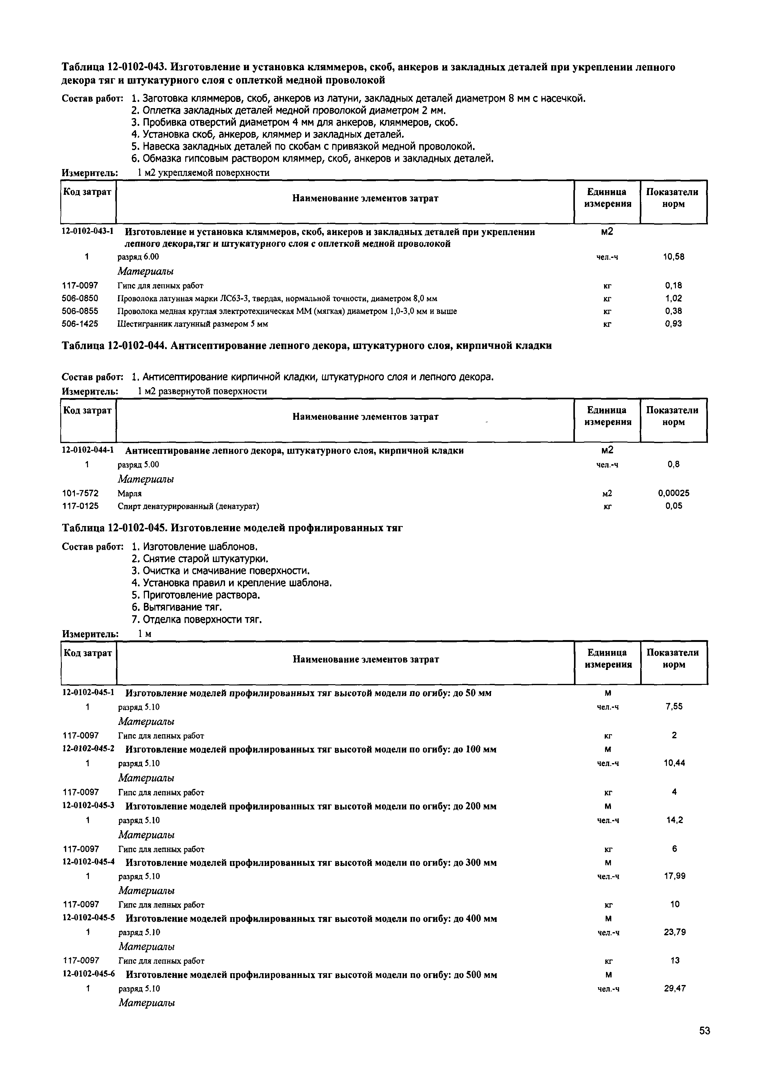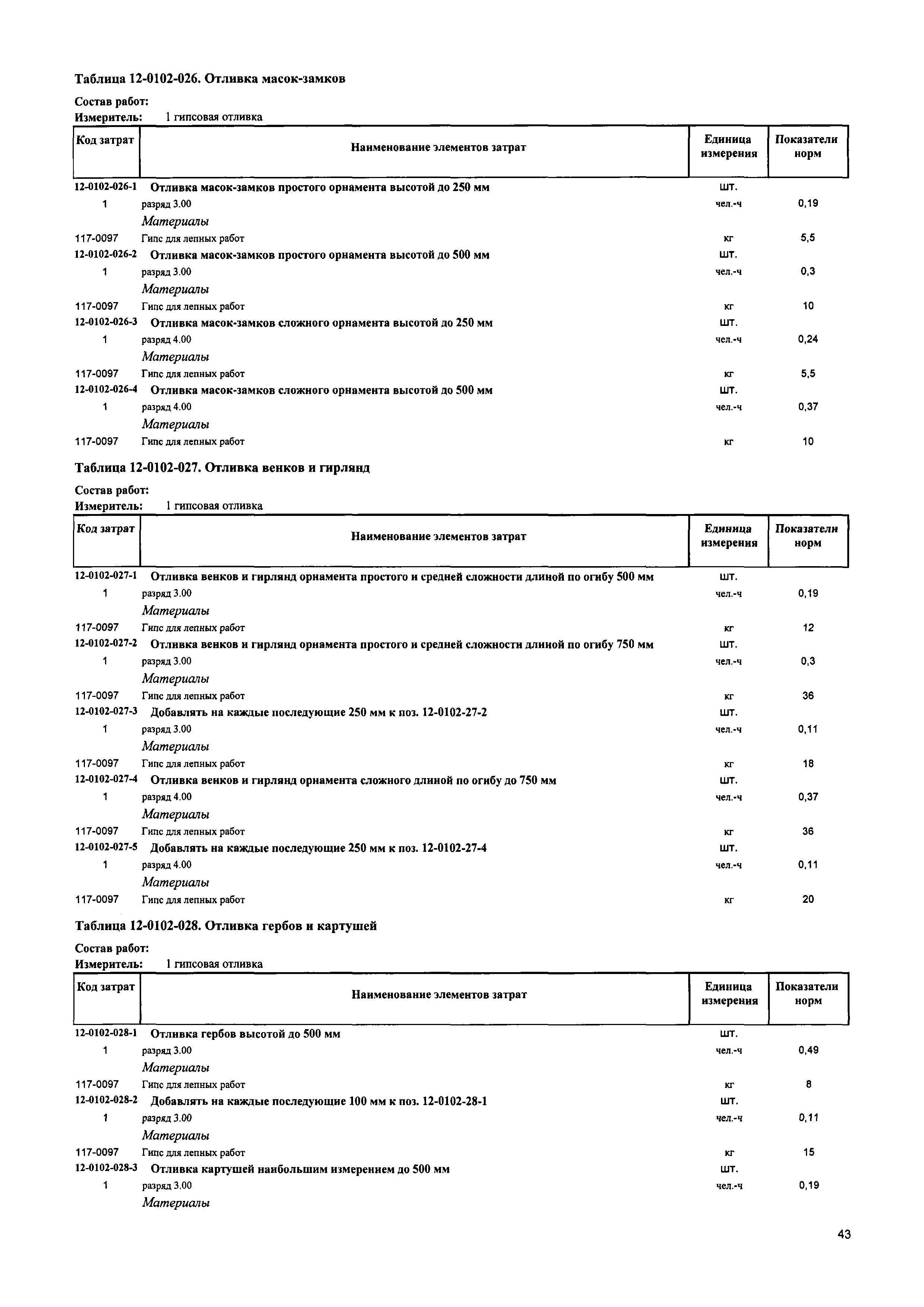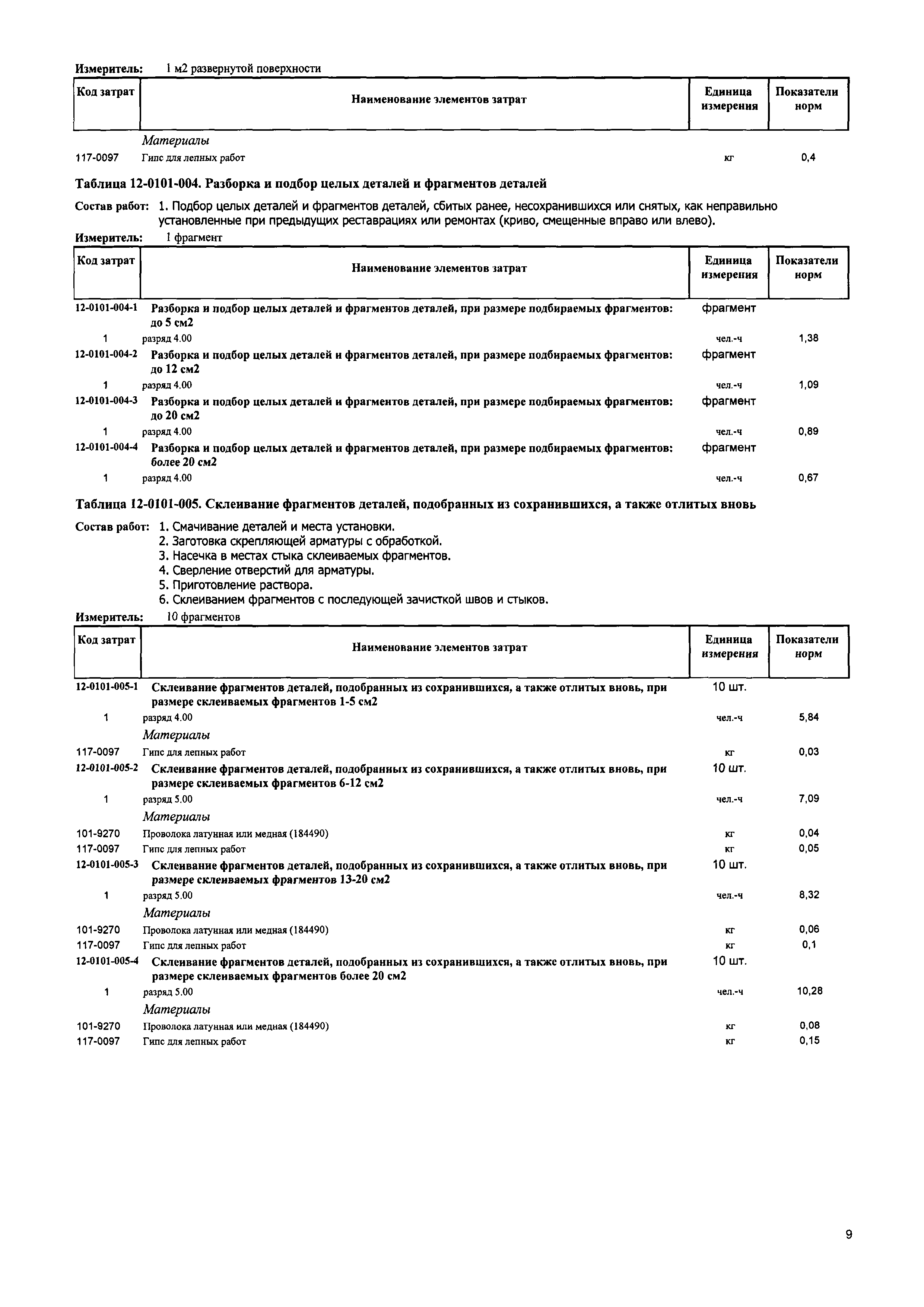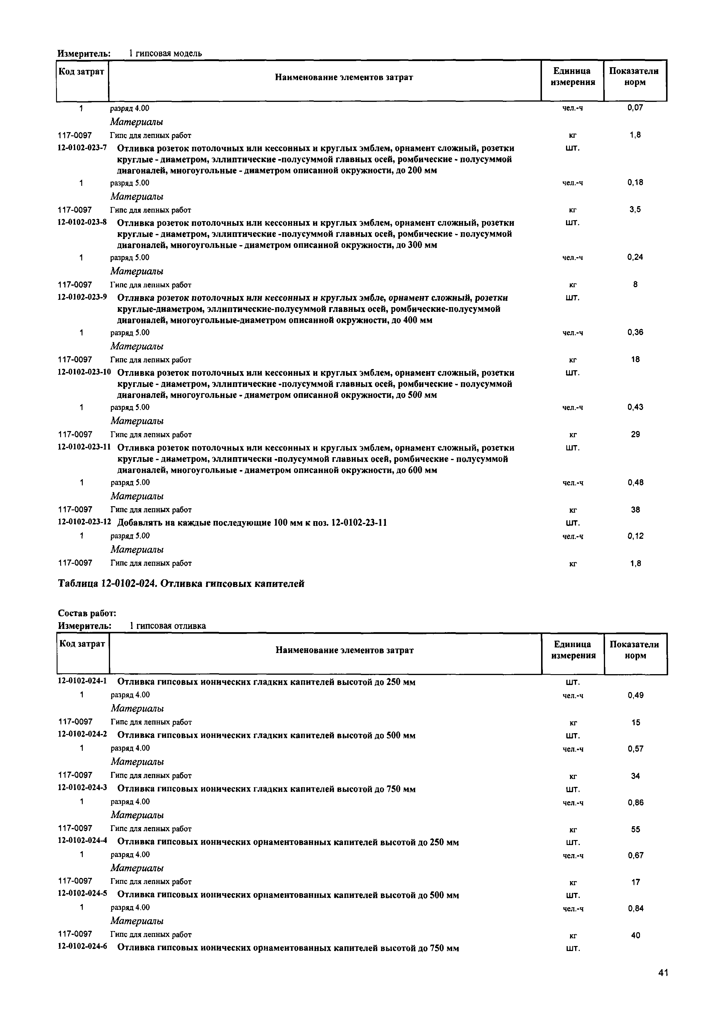 | Область применения: | Сборником предусмотрены нормы на реставрацию и воссоздание гипсового архитектурно-лепного декора в интерьерах или на фасадах памятников архитектуры, охраняемых государством |