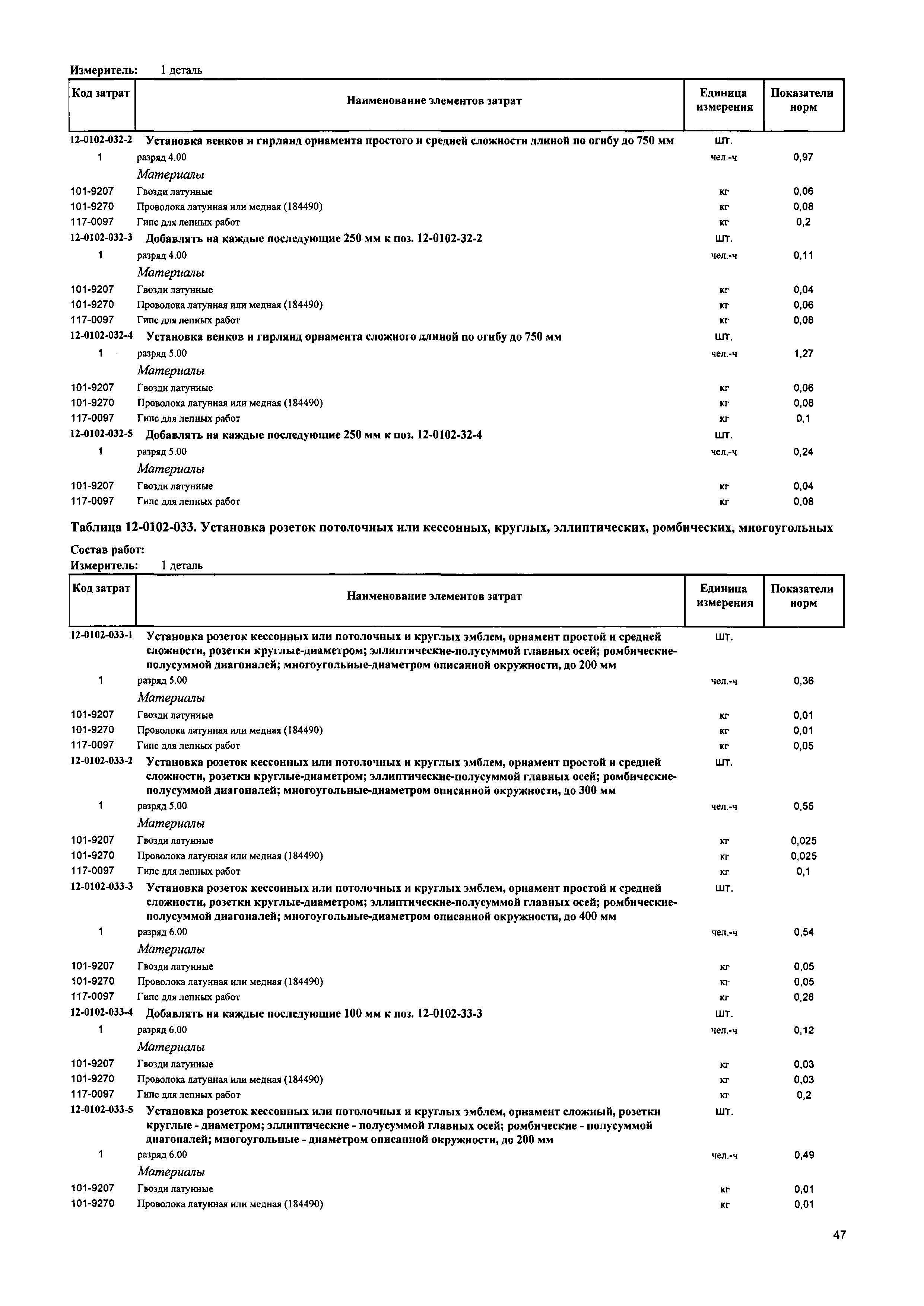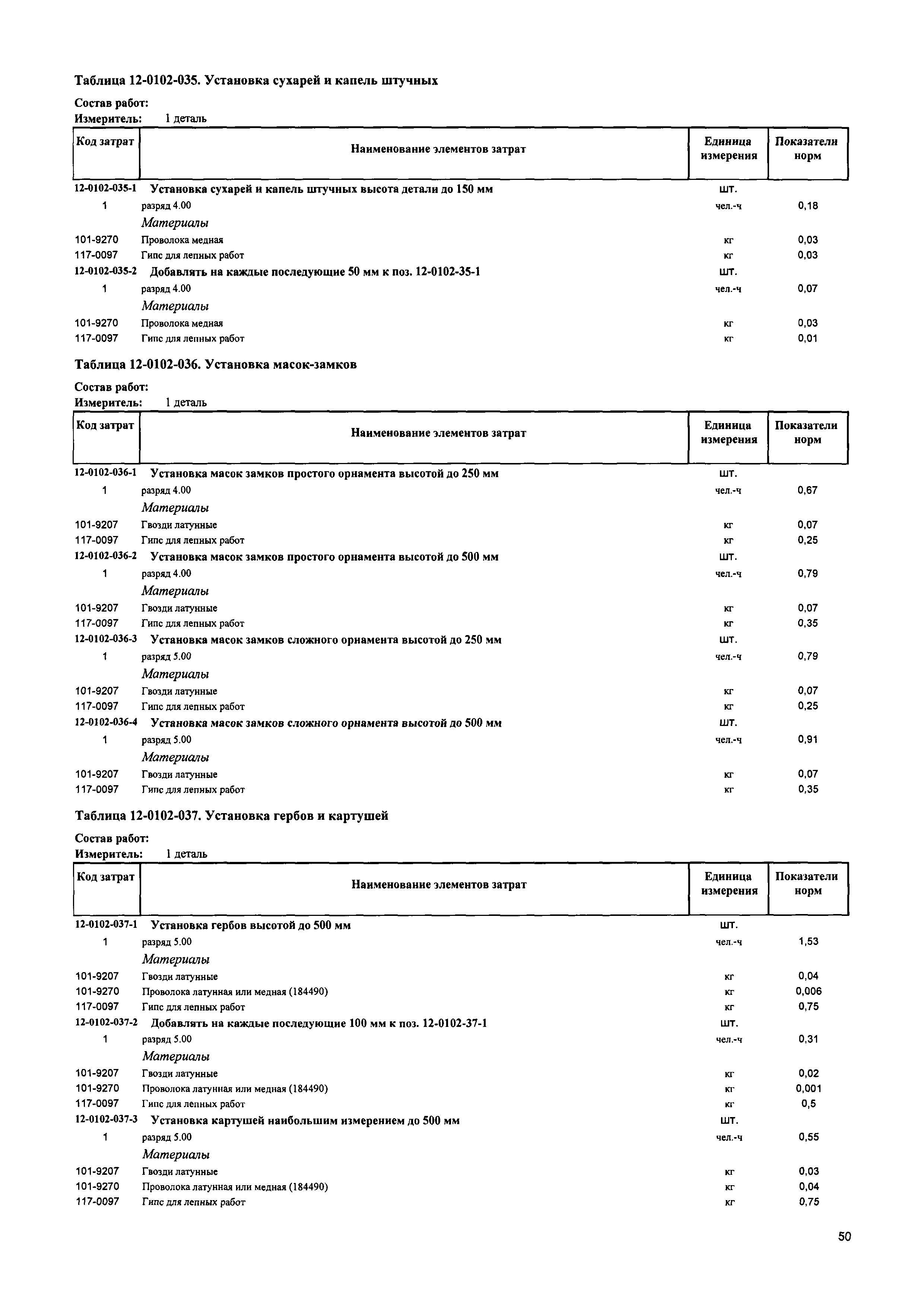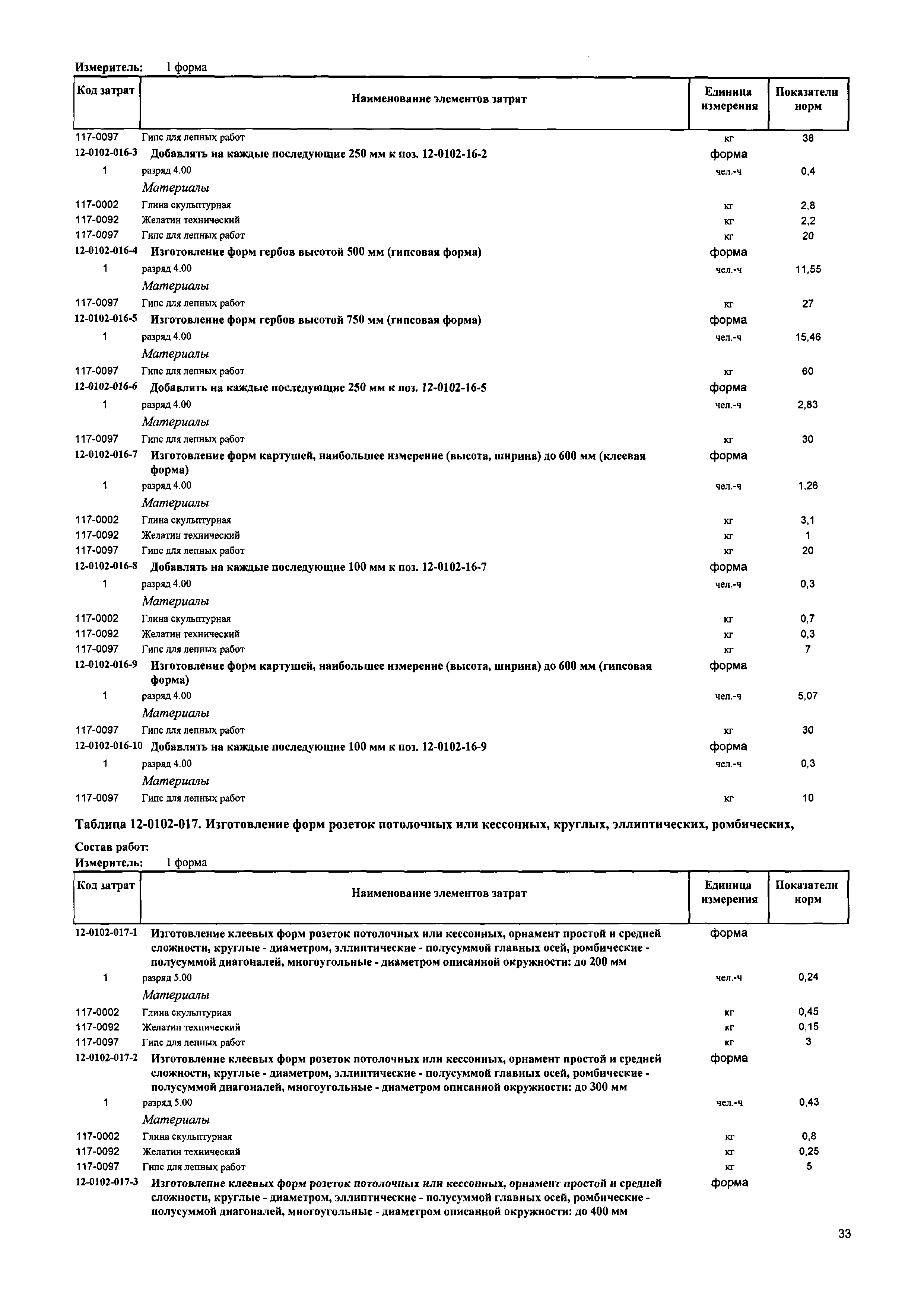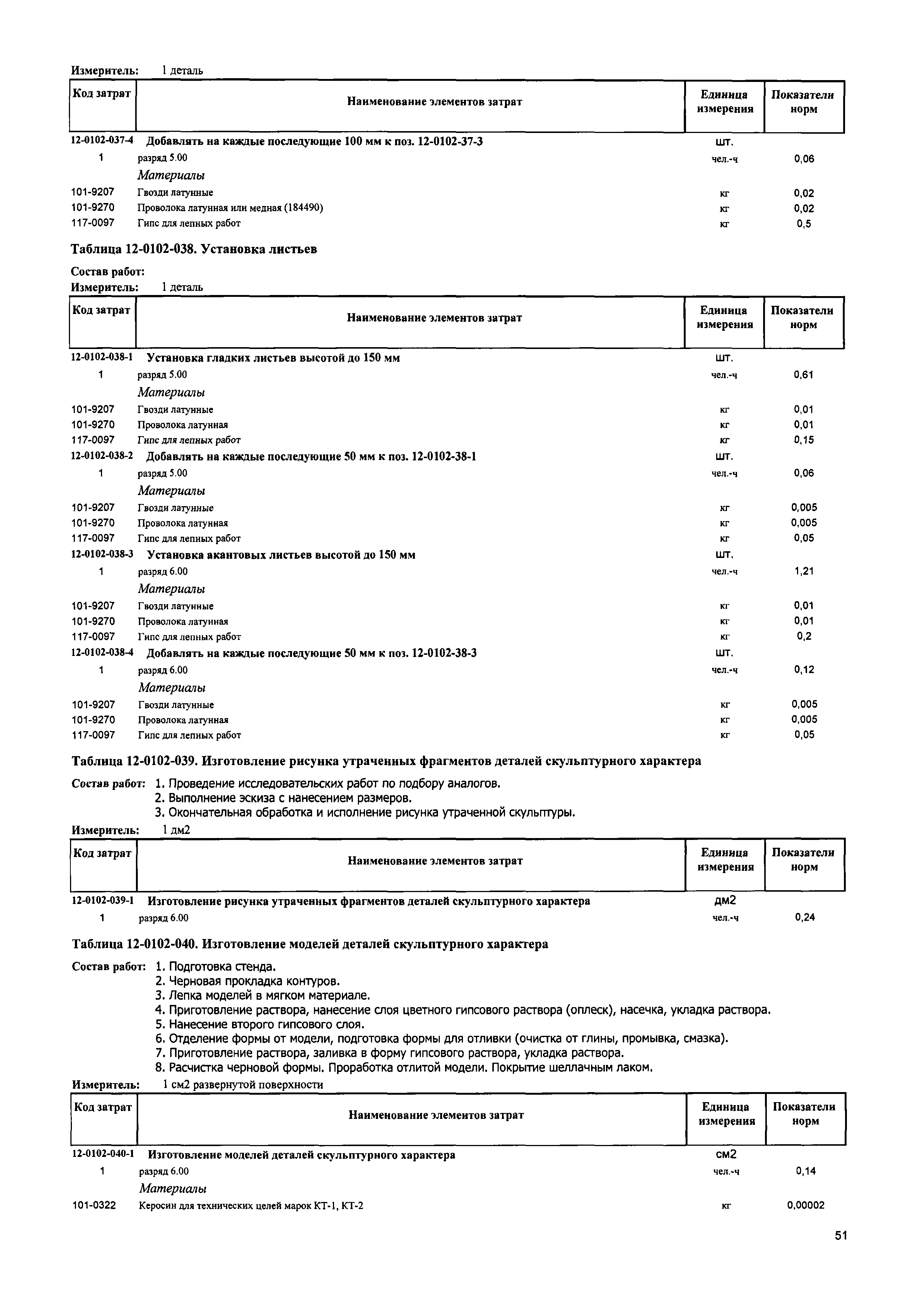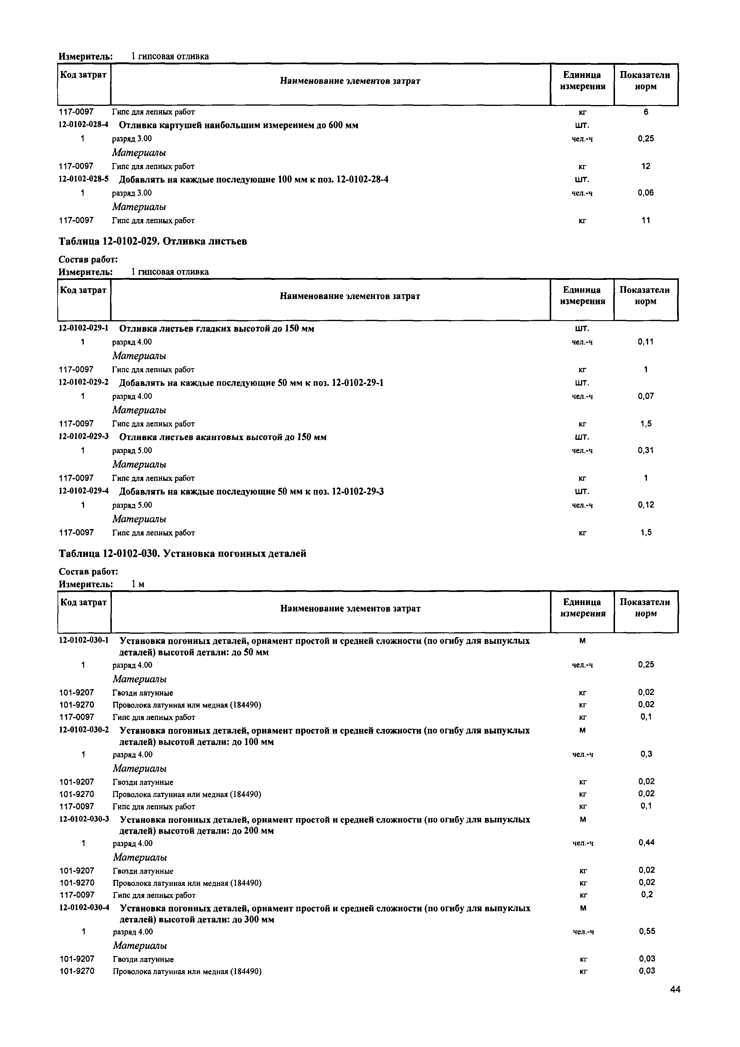 | Область применения: | Сборником предусмотрены нормы на реставрацию и воссоздание гипсового архитектурно-лепного декора в интерьерах или на фасадах памятников архитектуры, охраняемых государством |