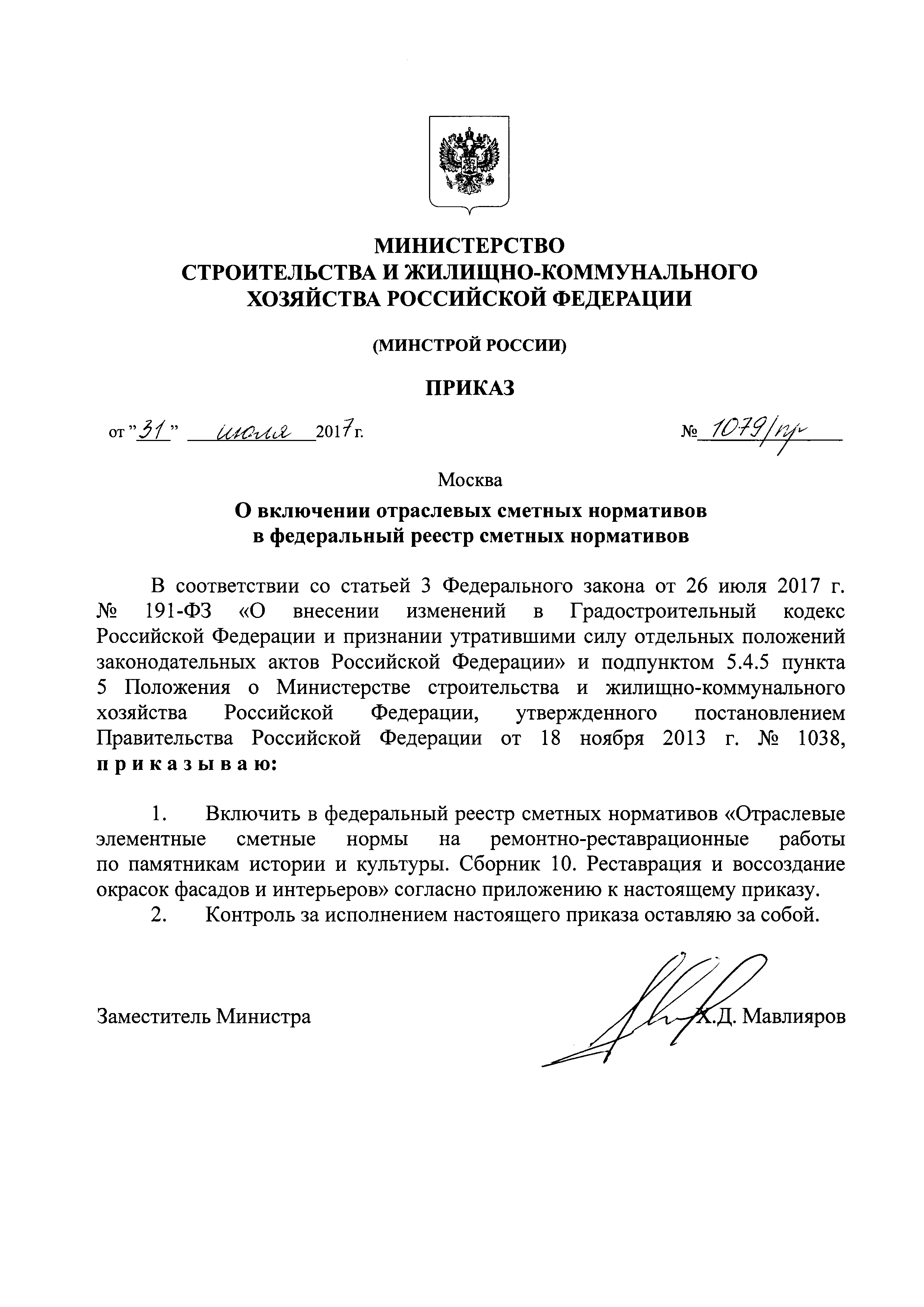 | Утверждён: | 31.07.2017 Министерство строительства и жилищно-коммунального хозяйства Российской Федерации (1079/пр)