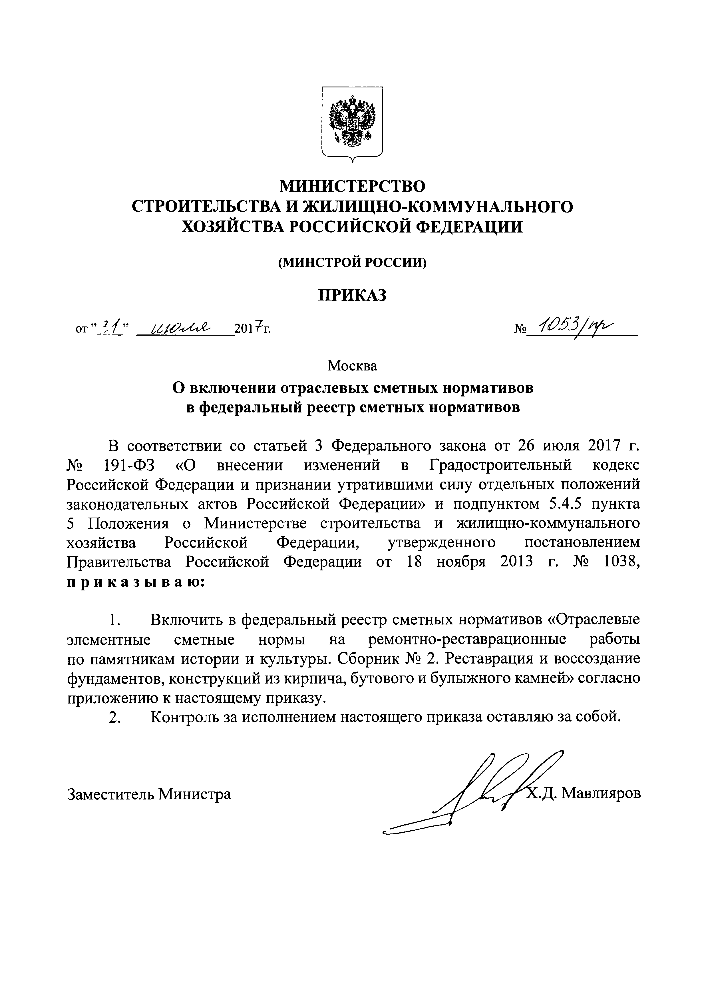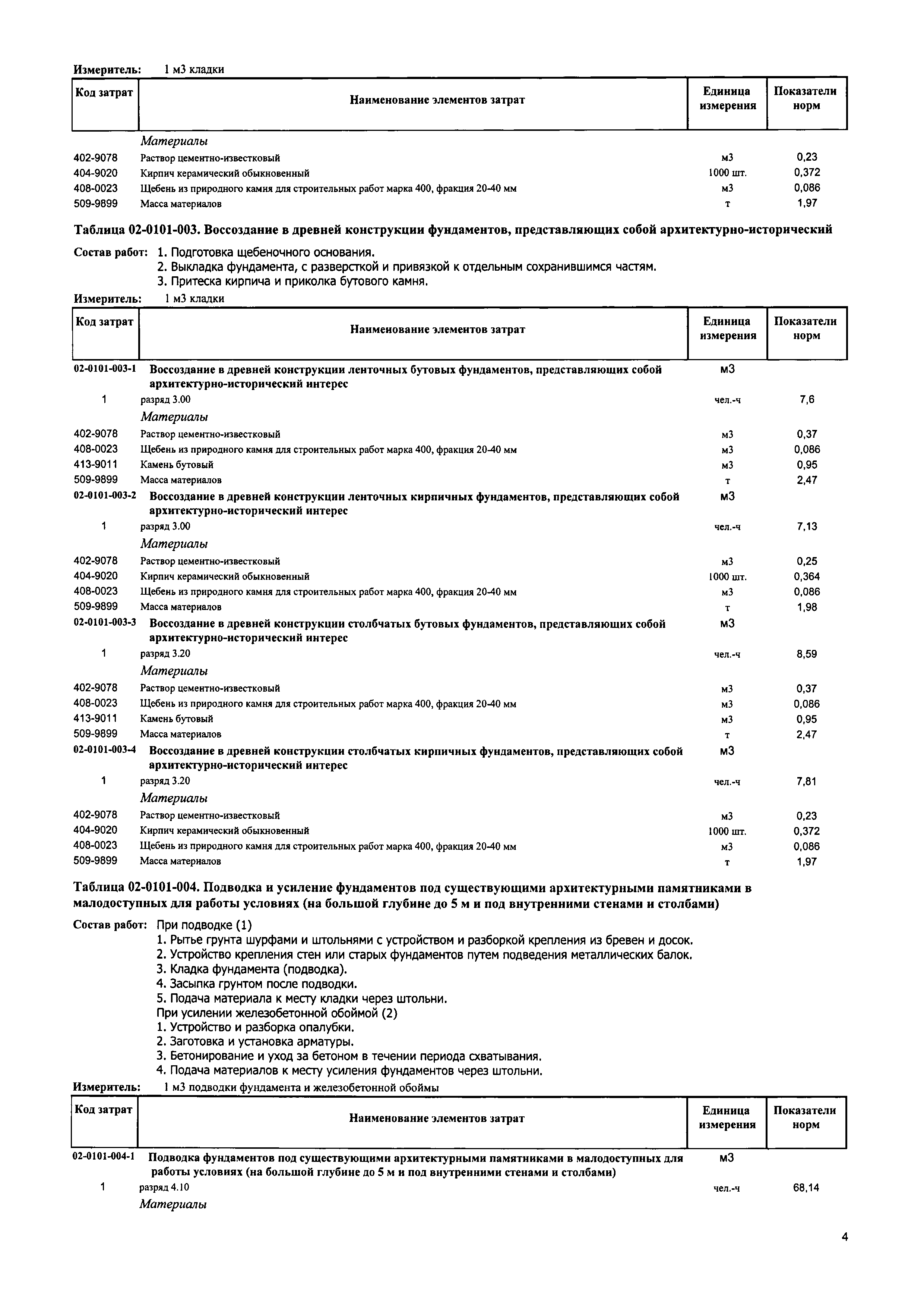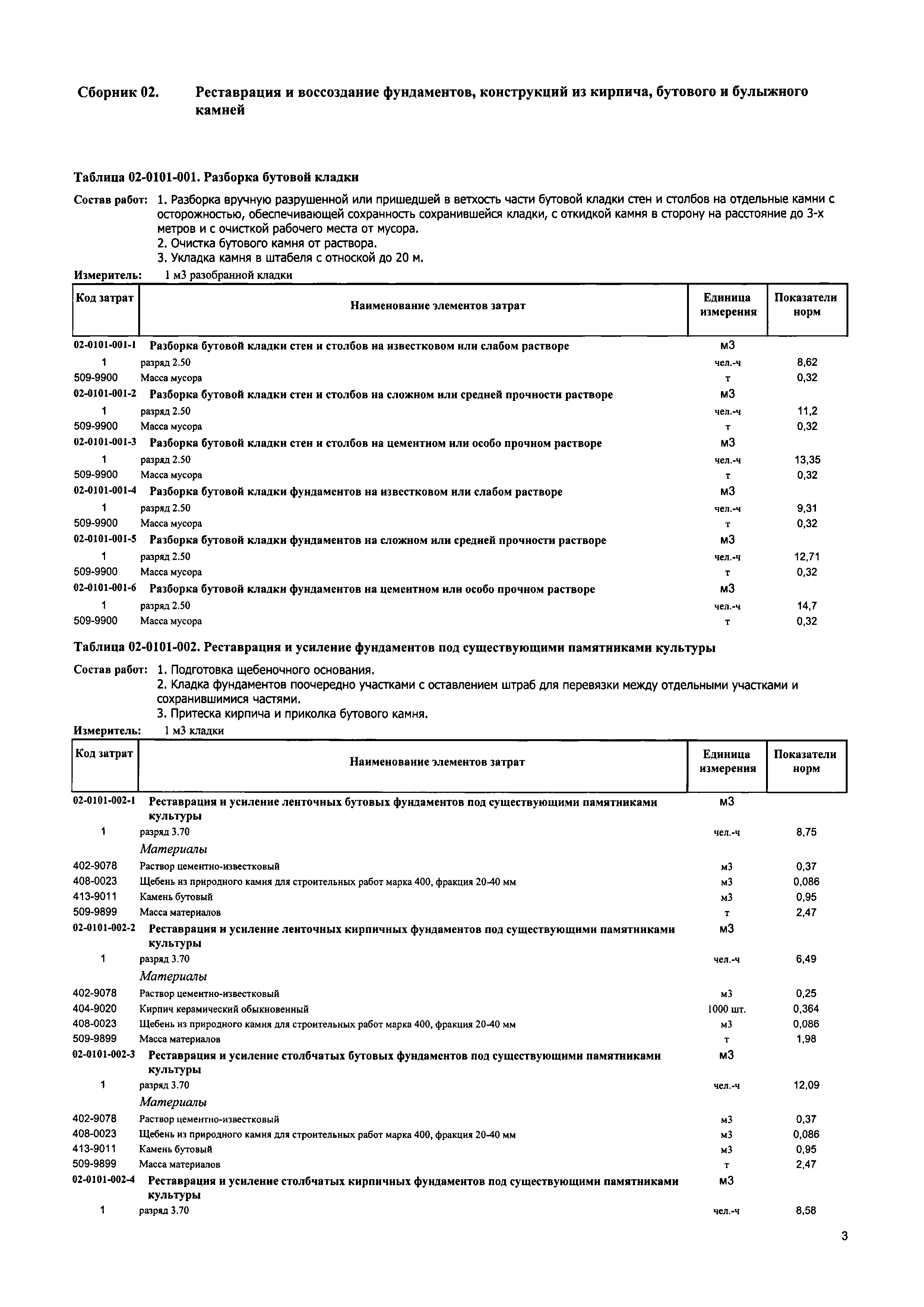 Сборник 2. Реставрация и воссоздание фундаментов, конструкций из кирпича, бутового и булыжного камней. Отраслевые элементные сметные нормы на ремонтно-реставрационные работы по памятникам истории и культуры| Статус: | действует | | Название рус.: | Сборник 2. Реставрация и воссоздание фундаментов, конструкций из кирпича, бутового и булыжного камней. Отраслевые элементные сметные нормы на ремонтно-реставрационные работы по памятникам истории и культуры | | Дата добавления в базу: | 01.01.2018 | | Дата актуализации: | 01.01.2021 | | Дата введения: | 31.07.2017 | | Область применения: | Нормами сборника предусмотрены работы по реставрации и воссозданию фундаментов зданий памятников культуры, а также крепостных и монастырских стен и башен, сложенных из бутового и булыжного камня | | Утверждён: | 31.07.2017 Министерство строительства и жилищно-коммунального хозяйства Российской Федерации (1053/пр)