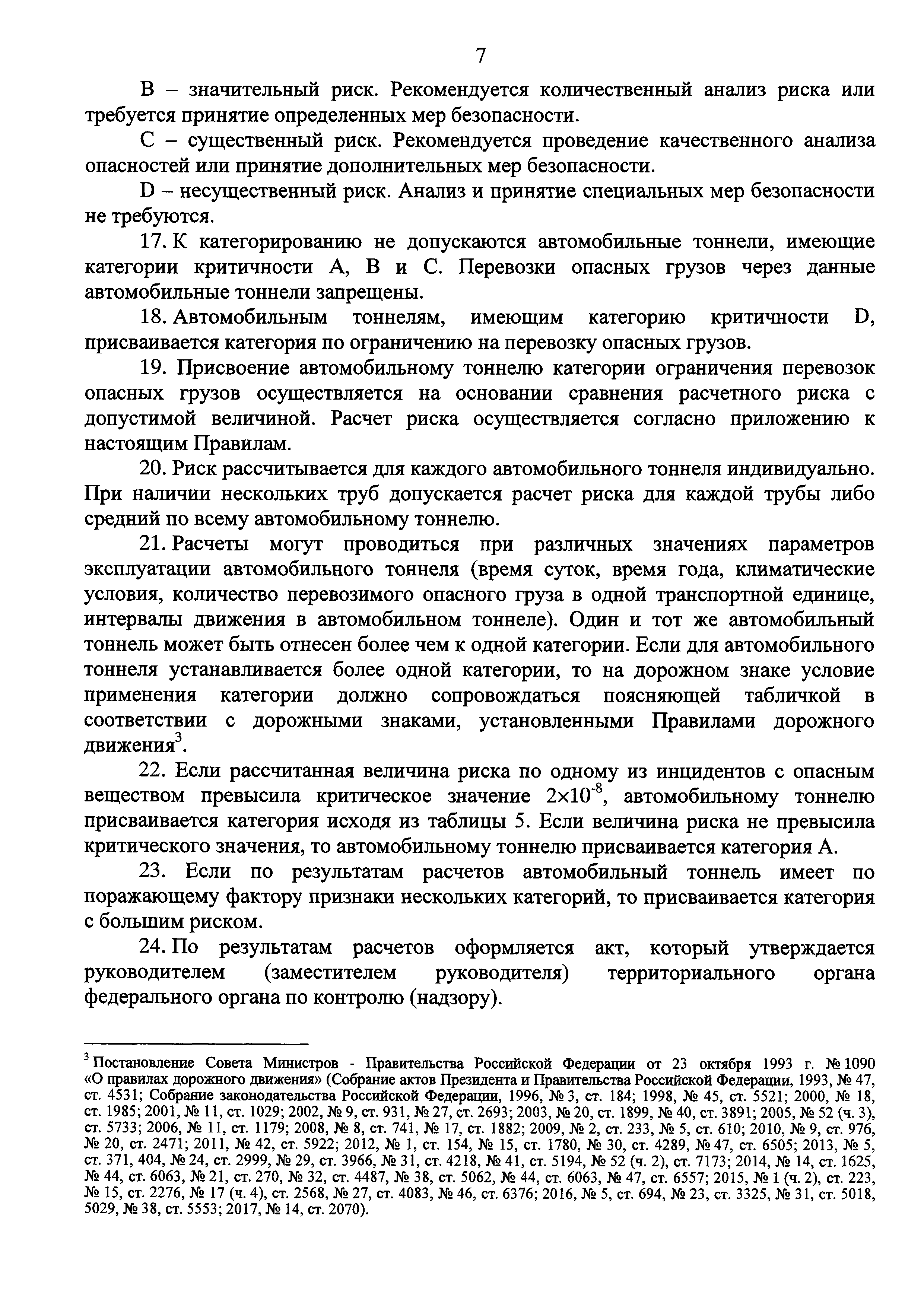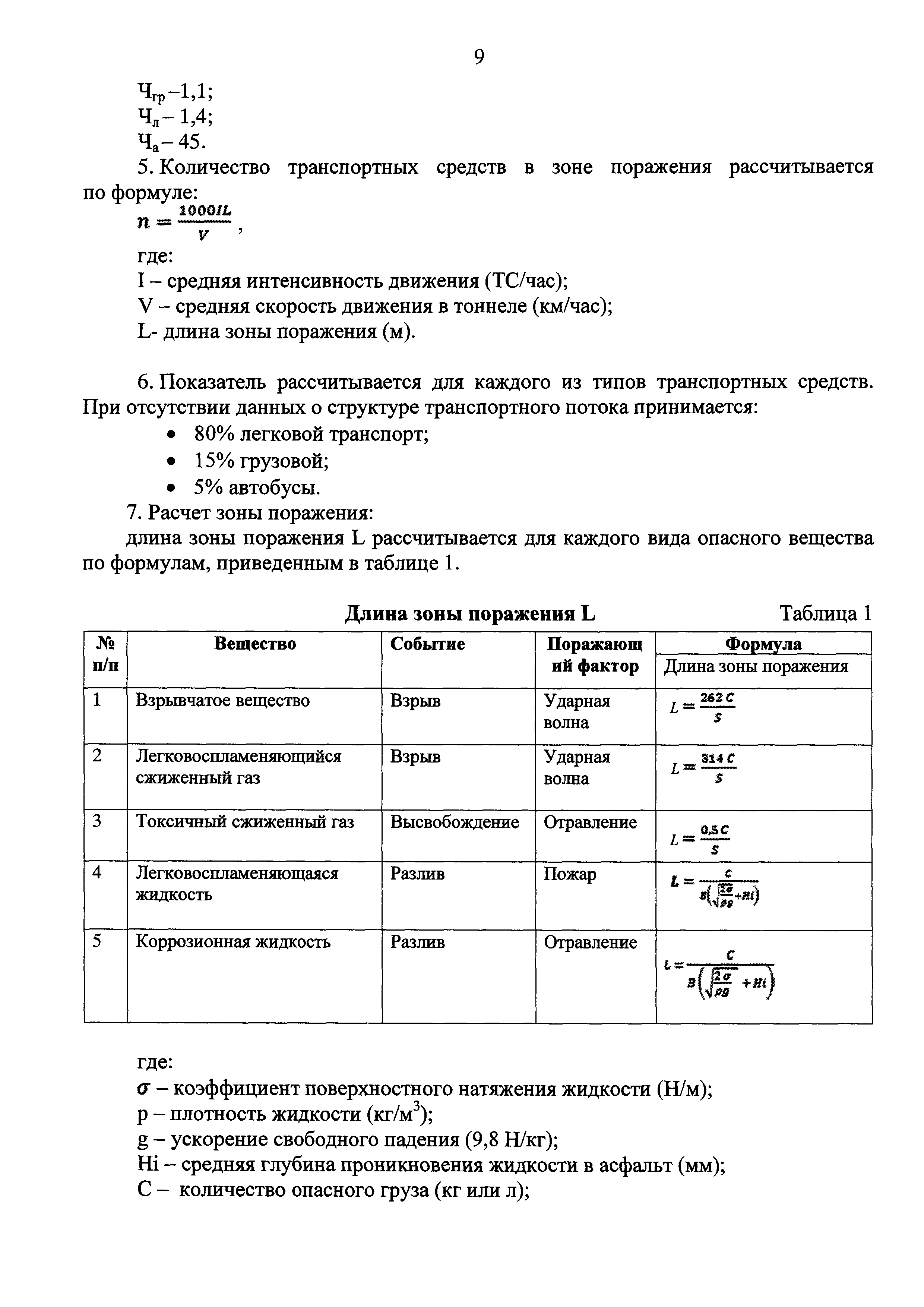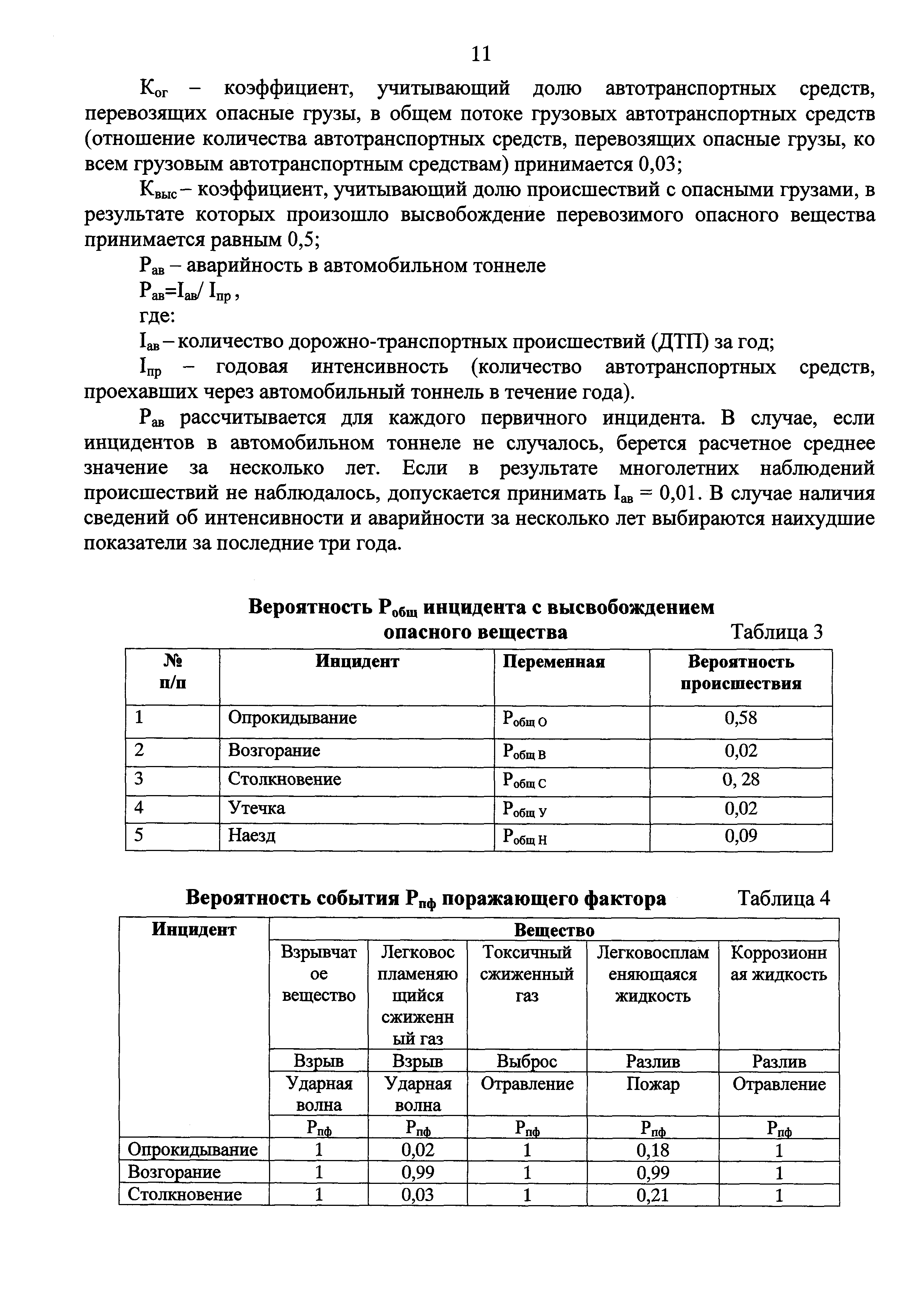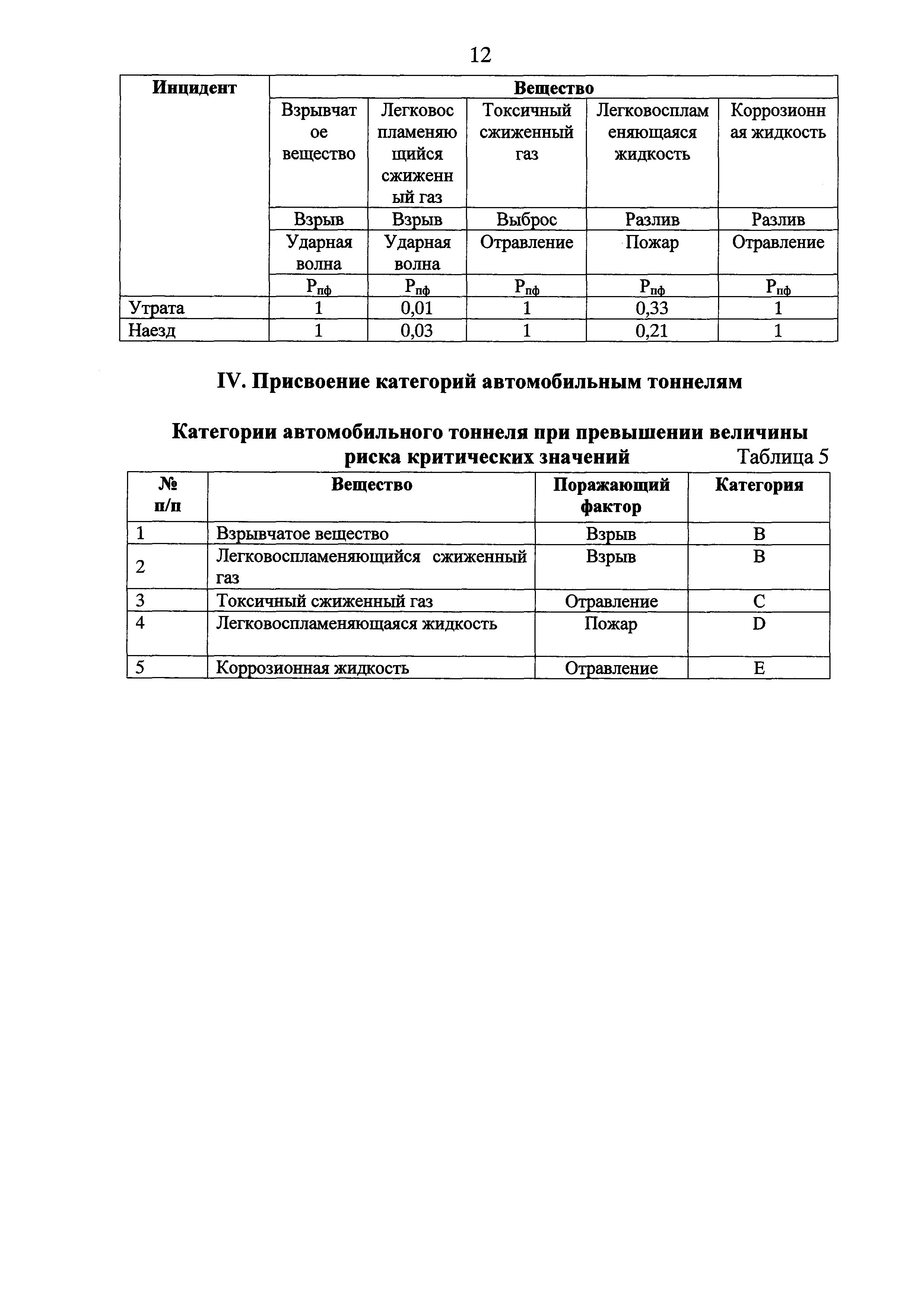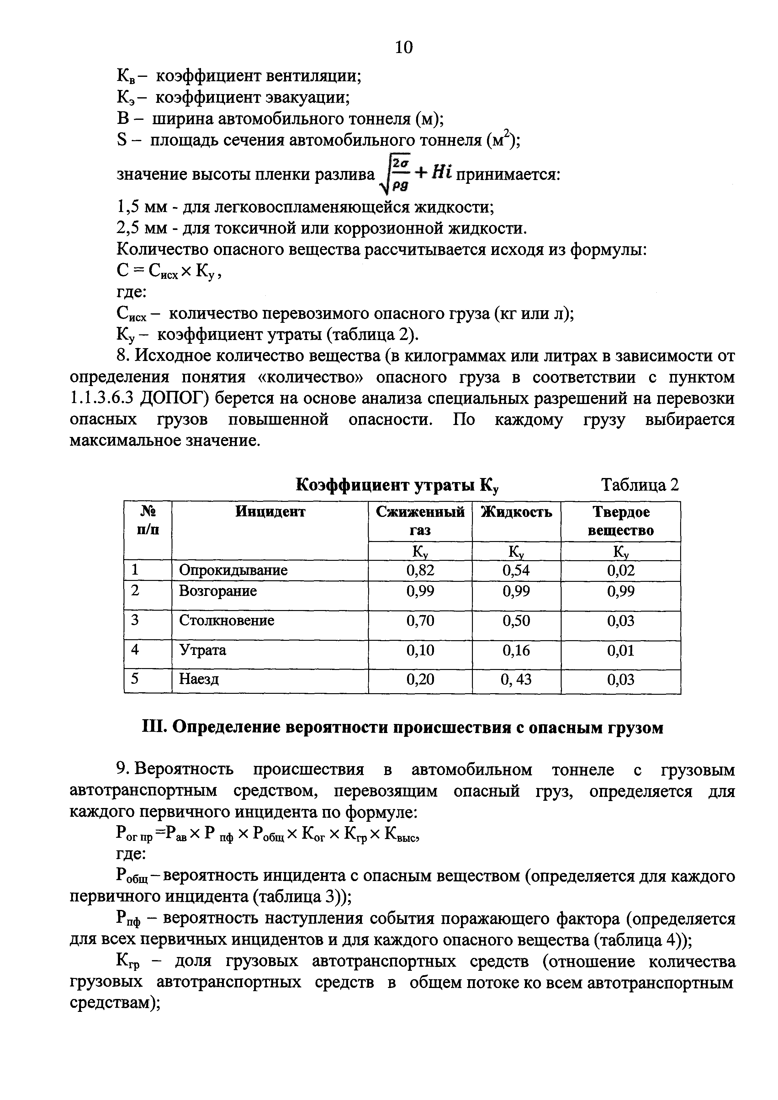 | Оглавление: | I. Общие положения II. Категорирование автомобильных тоннелей по видам ограничения движения в них автотранспортных средств, осуществляющих перевозку опасных грузов III. Определение критериев категорирования автомобильных тоннелей по ограничению проезда в них автотранспортных средств, осуществляющих перевозку опасных грузов Приложение I. Расчет риска II. Оценка величины физического вреда в результате происшествия с грузовым автотранспортным средством, перевозящим опасный груз в автомобильном тоннеле III. Определение вероятности происшествия с опасным грузом IV. Присвоение категорий автомобильным тоннелям |