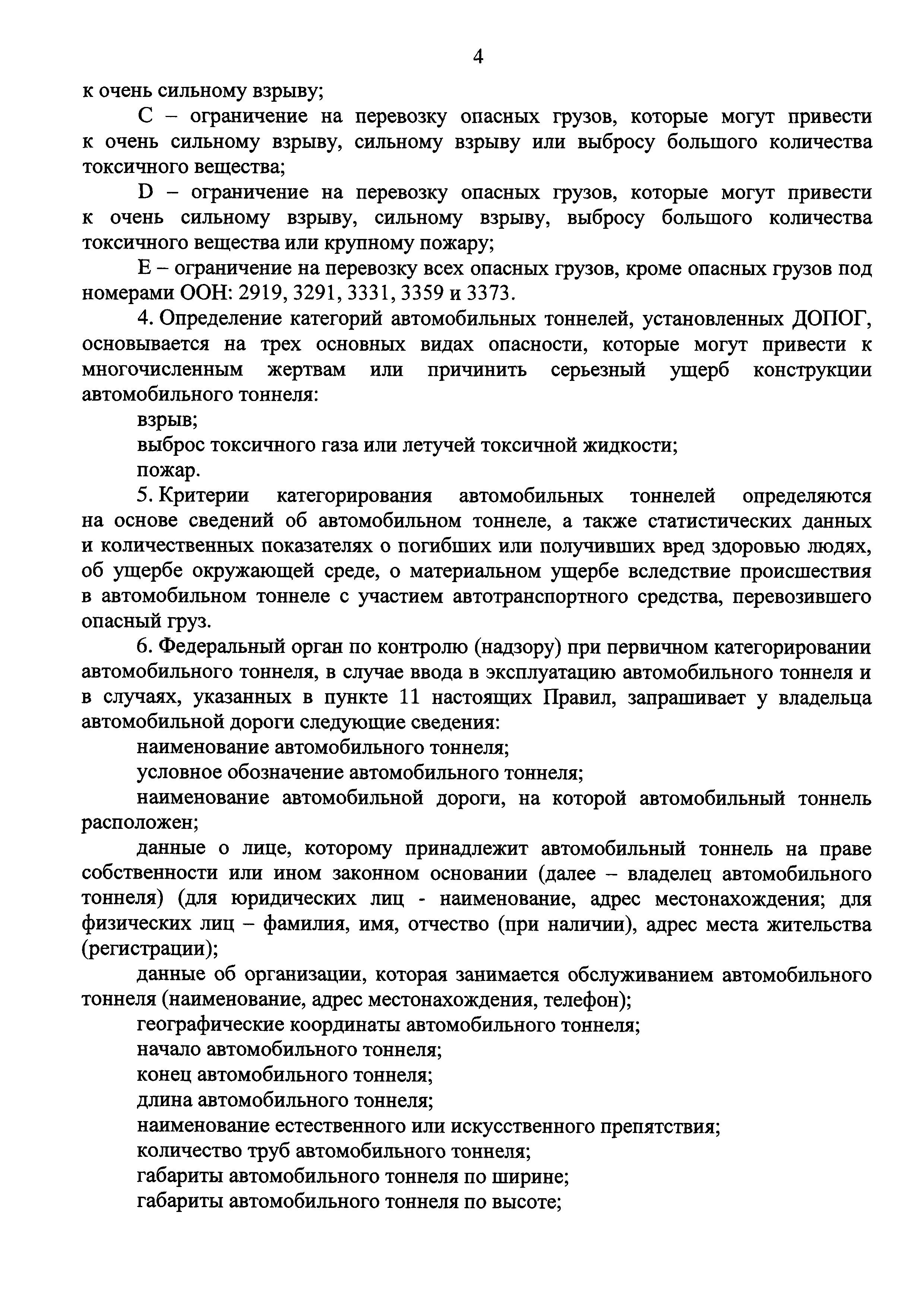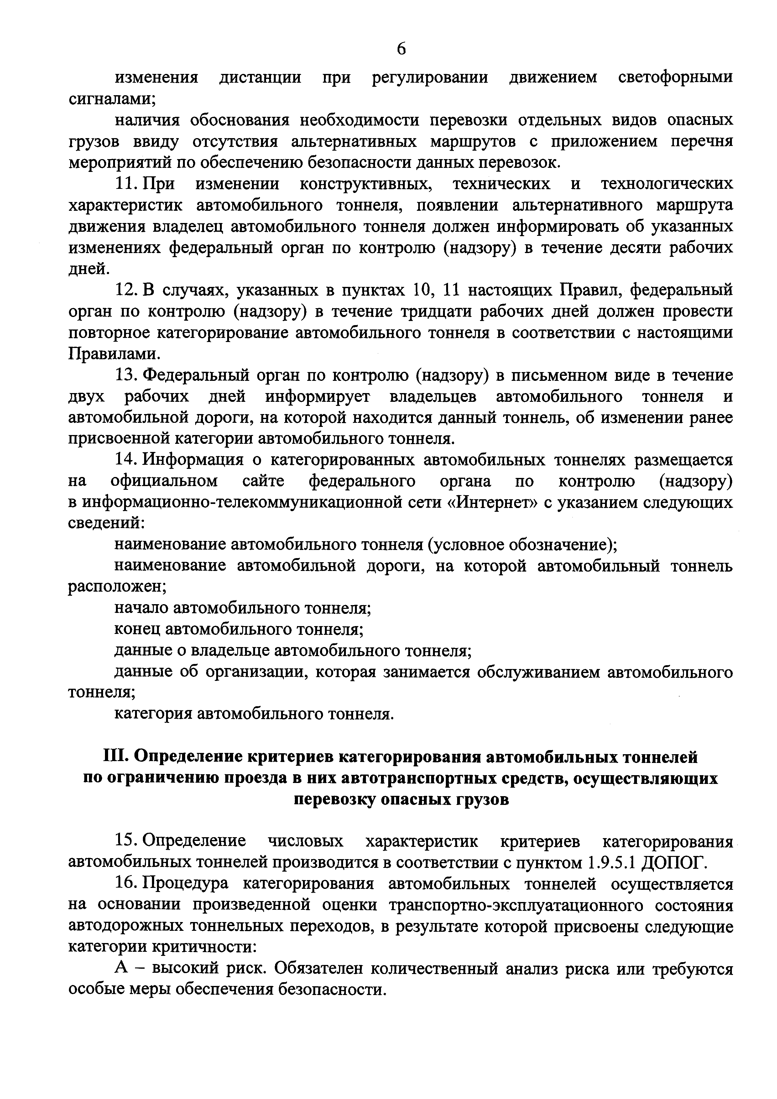| Название рус.: | Правила категорирования автомобильных тоннелей по видам ограничения движения в них автотранспортных средств, осуществляющих перевозку опасных грузов |