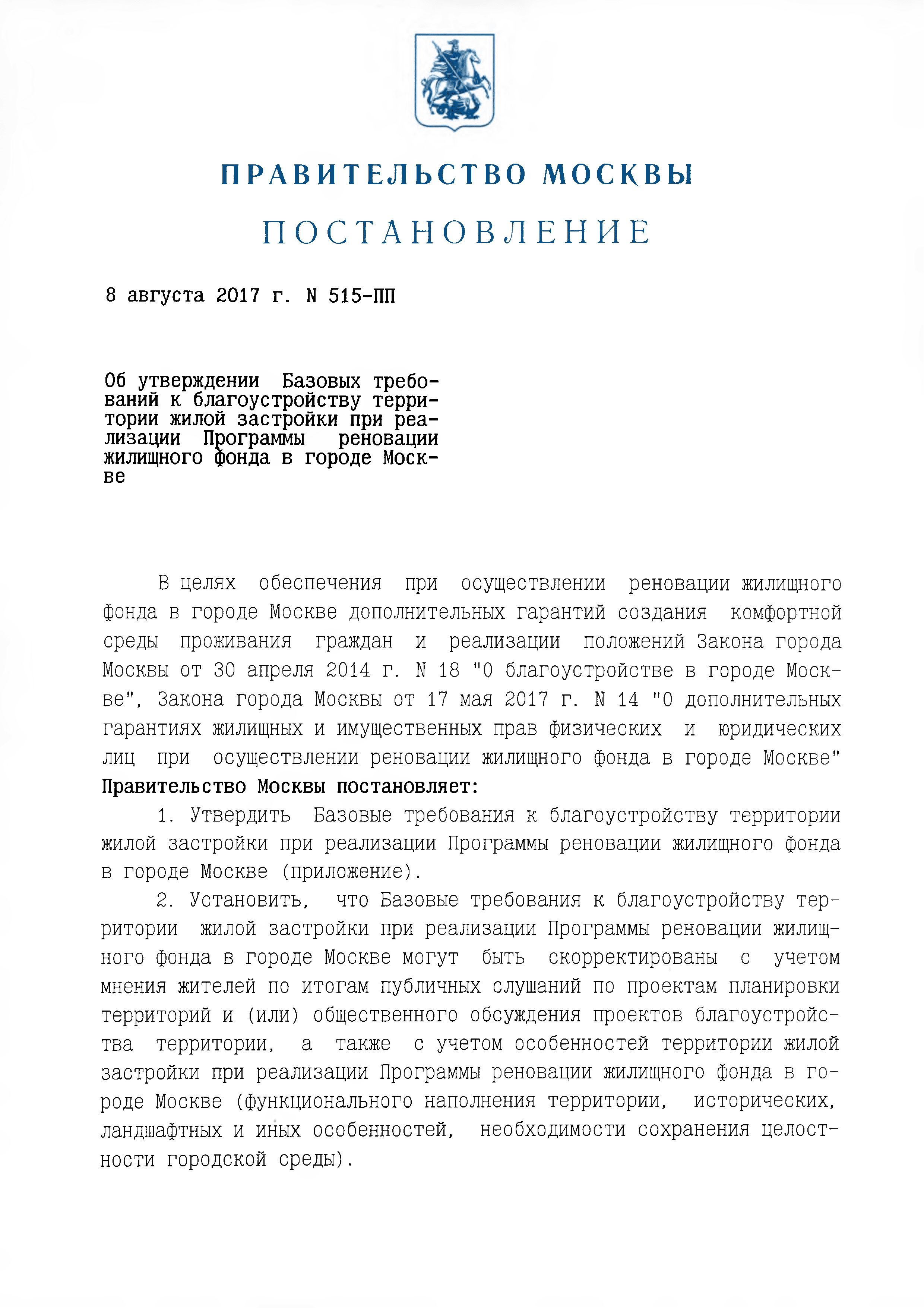 | Утверждён: | 08.08.2017 Правительство Москвы (Government of the City of Moscow 515-ПП)