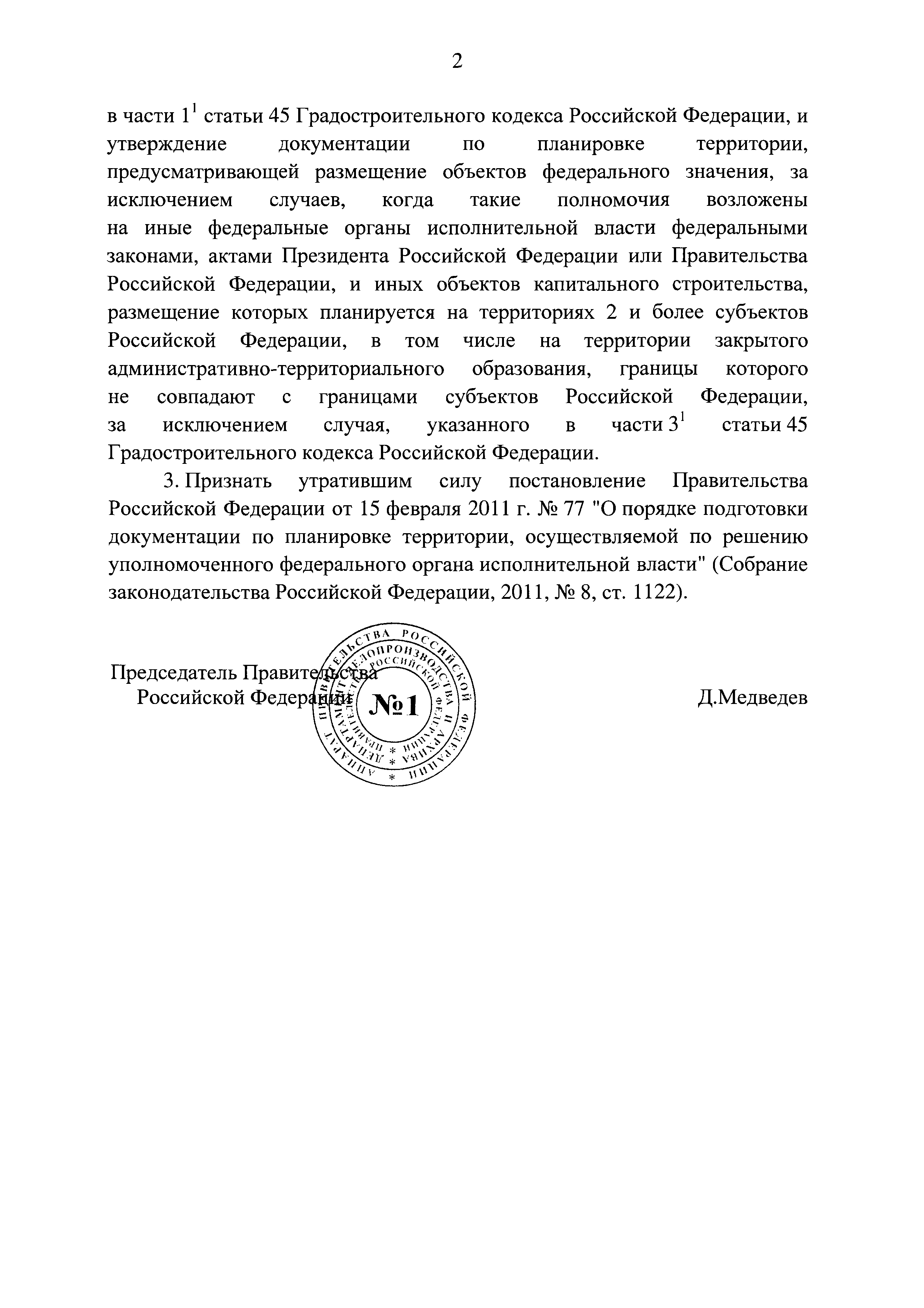| Название рус.: | Правила подготовки документации по планировке территории, подготовка которой осуществляется на основании решений уполномоченных федеральных органов исполнительной власти, и принятия уполномоченными федеральными органами исполнительной власти решений об утверждении документации по планировке территории для размещения объектов федерального значения и иных объектов капитального строительства, размещение которых планируется на территориях 2 и более субъектов Российской Федерации |