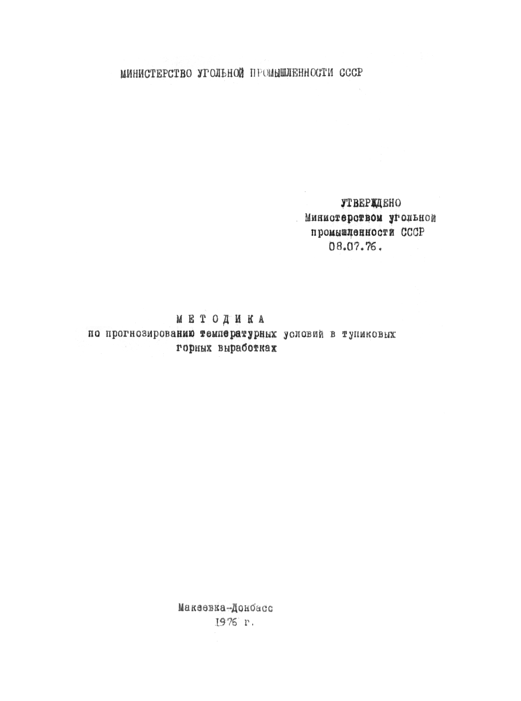 | Утверждён: | 08.07.1976 Министерство угольной промышленности СССР (USSR Ministry of the Coal Industry )