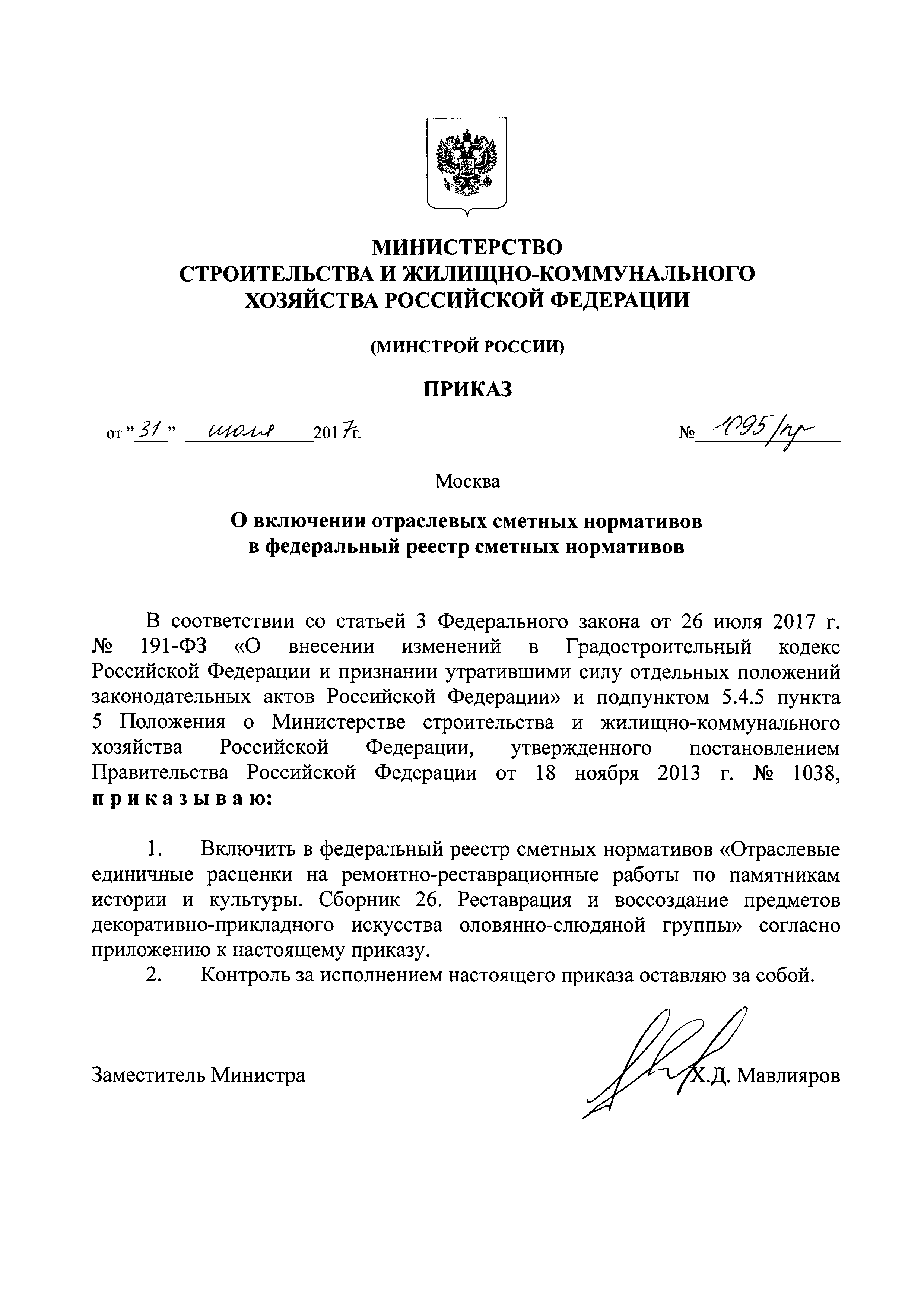 | Утверждён: | 31.07.2017 Минстрой России (Russian Federation Minstroy 1095/пр)