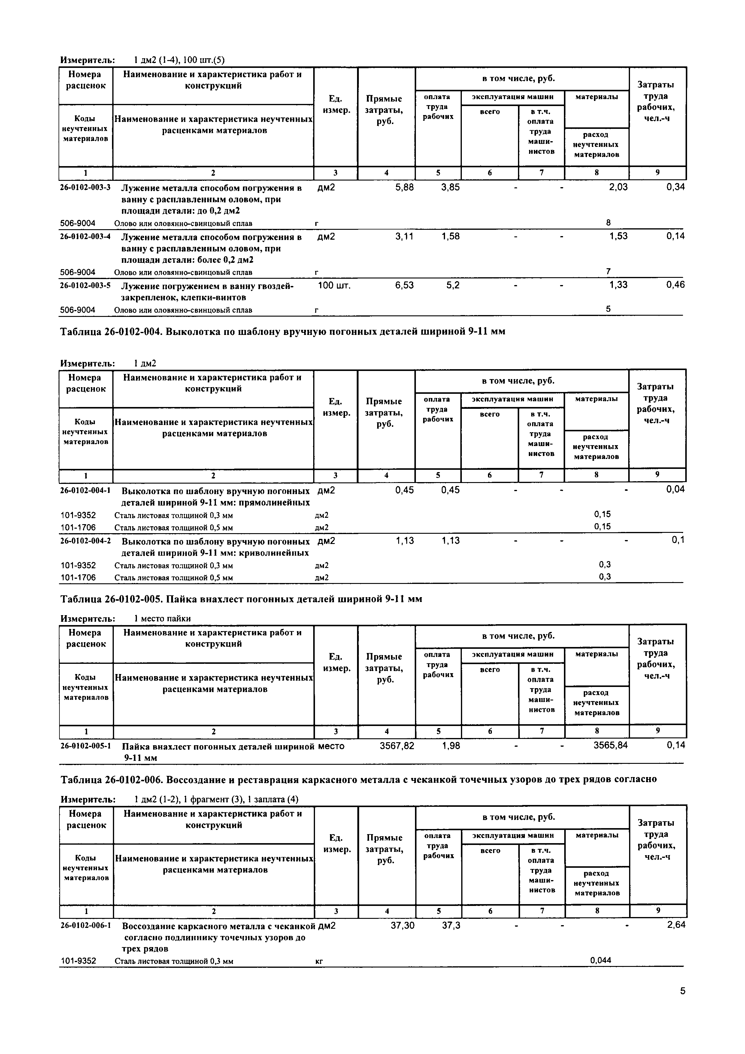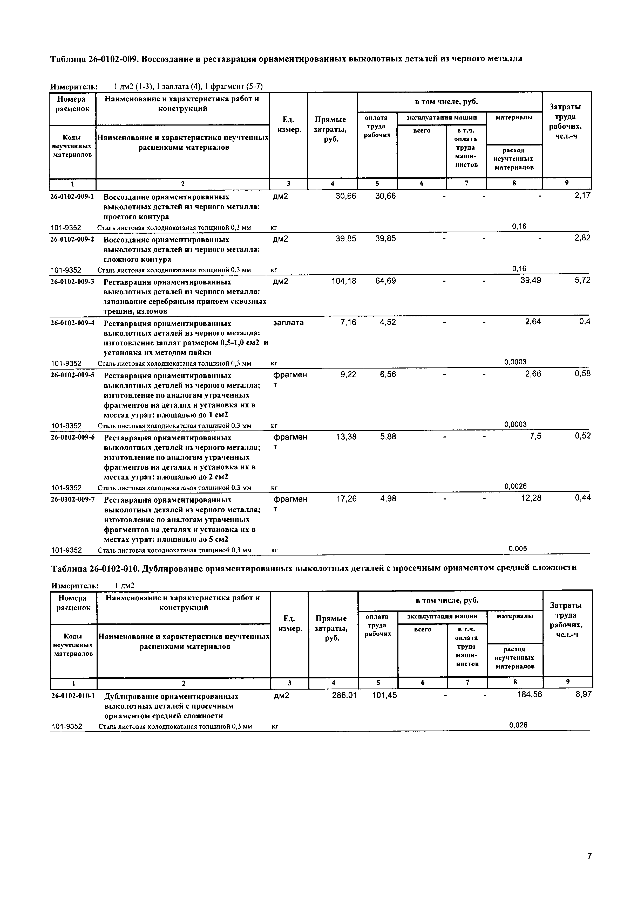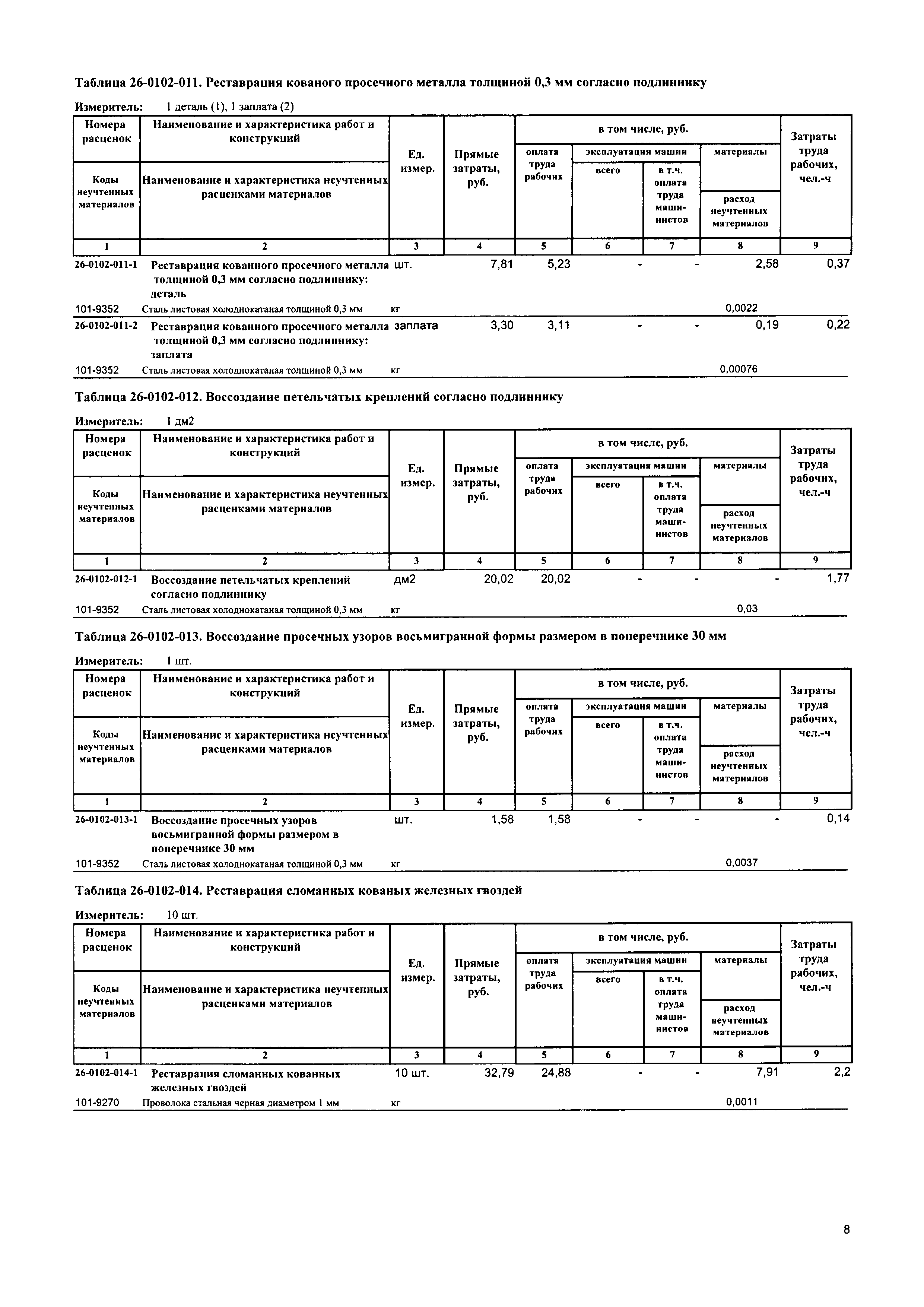 | Область применения: | Расценки сборника предусматривают специфические условия работ по реставрации и воссозданию произведений искусства, не проводимых ранее в условиях реставрационного производства. |