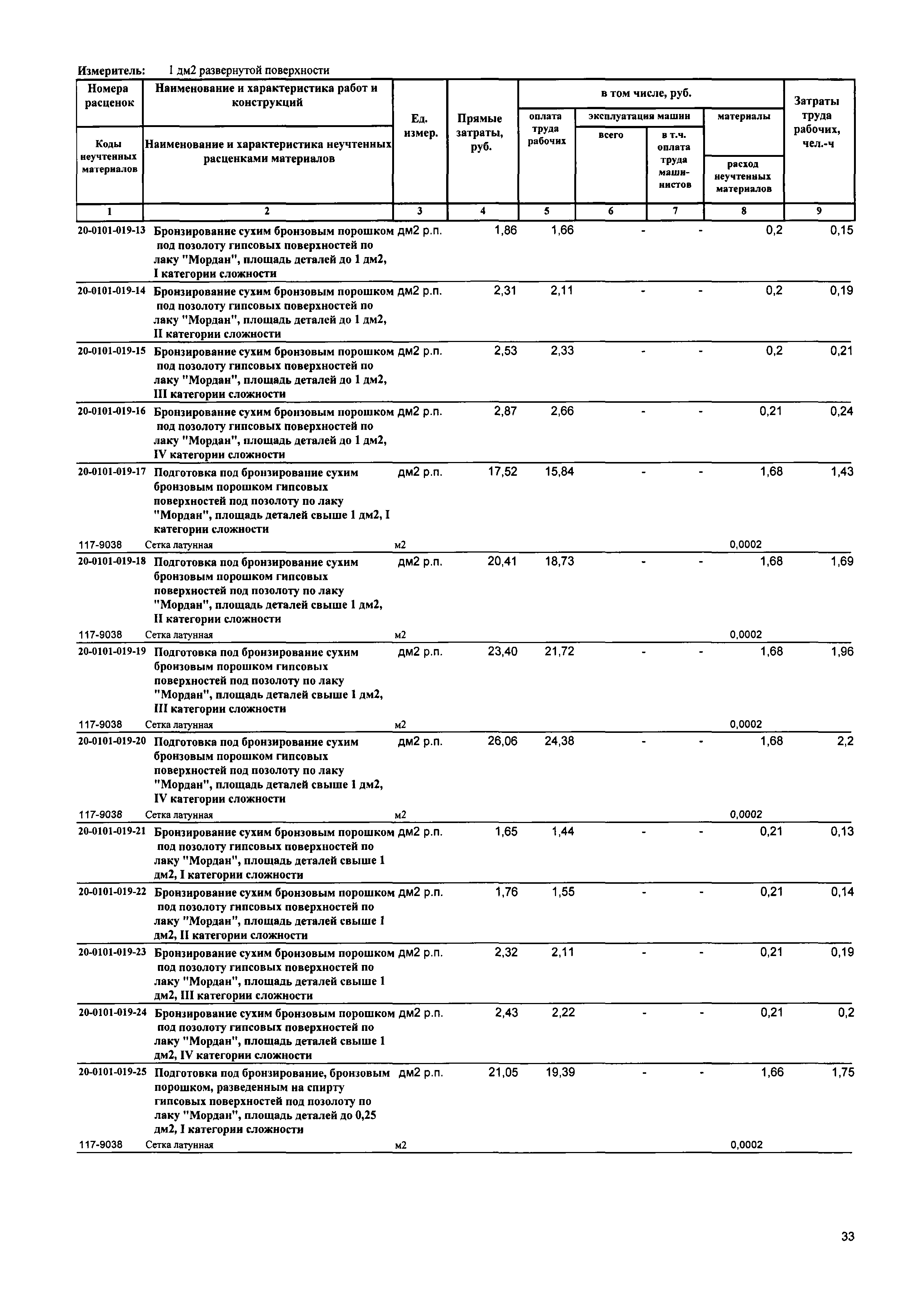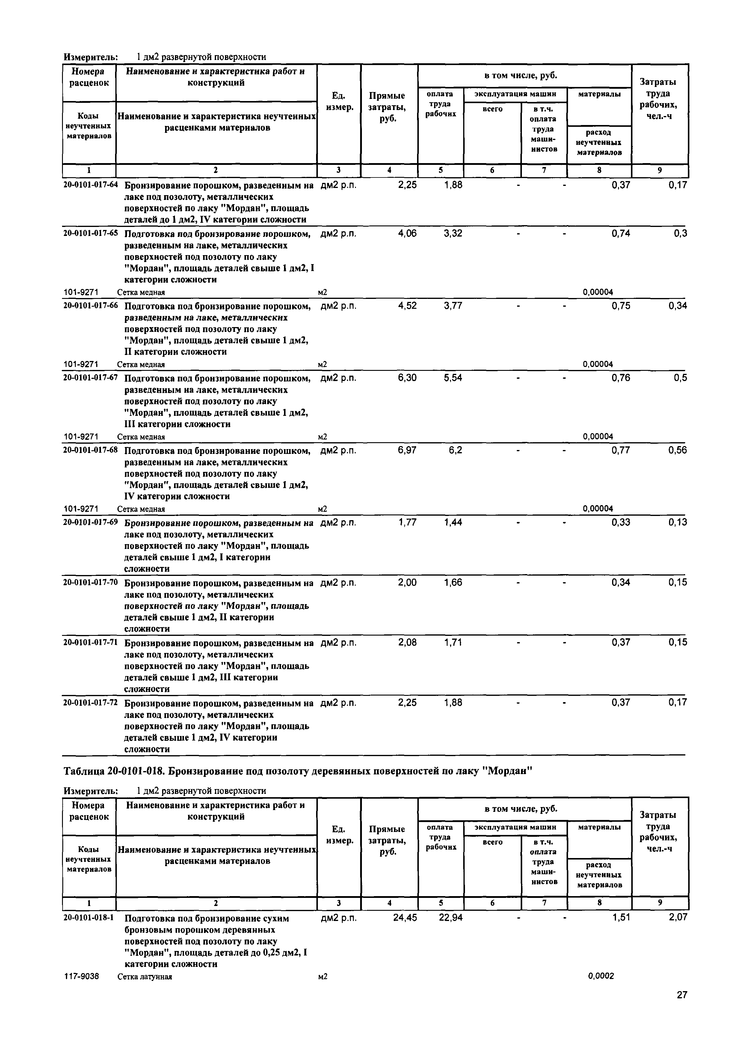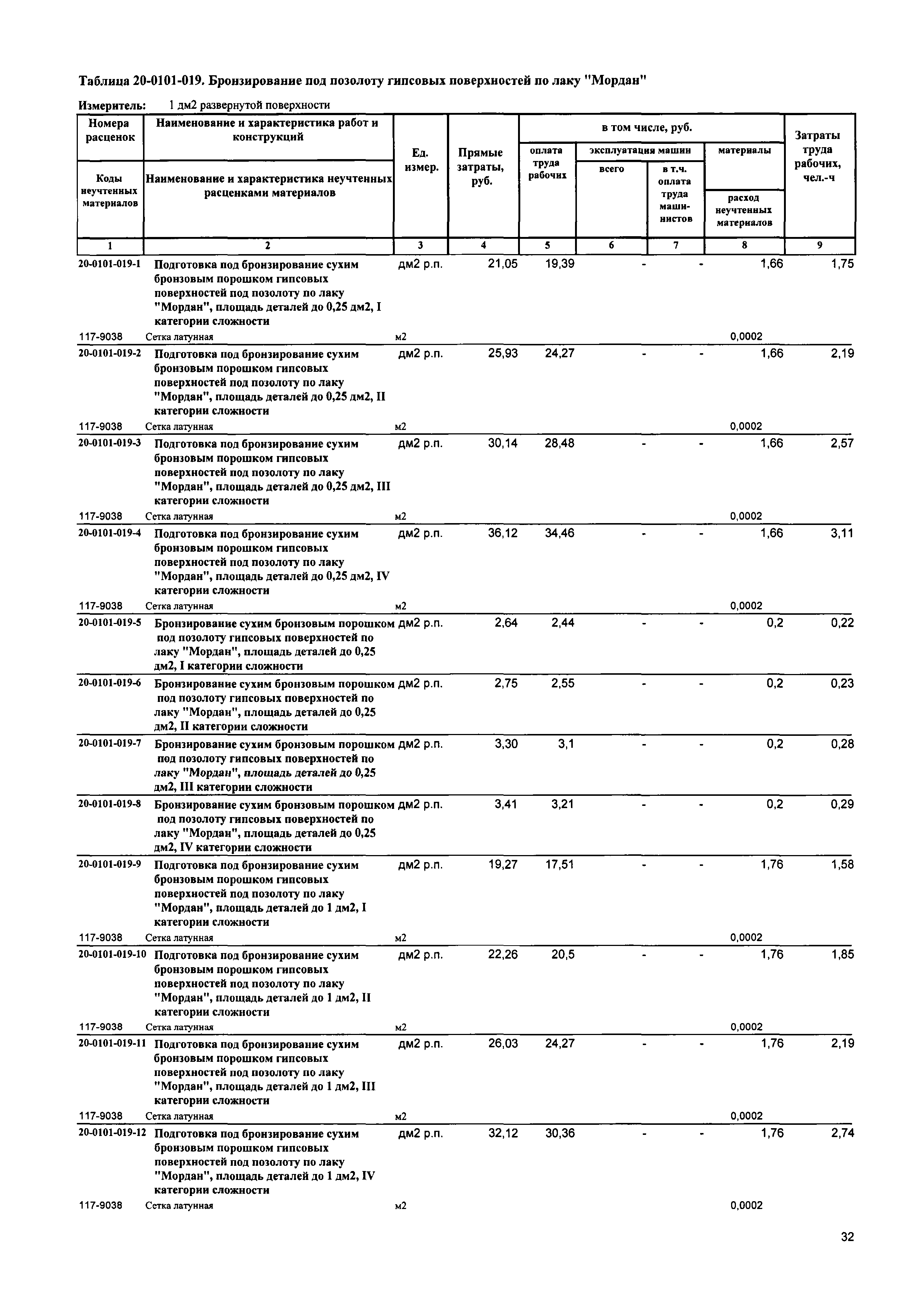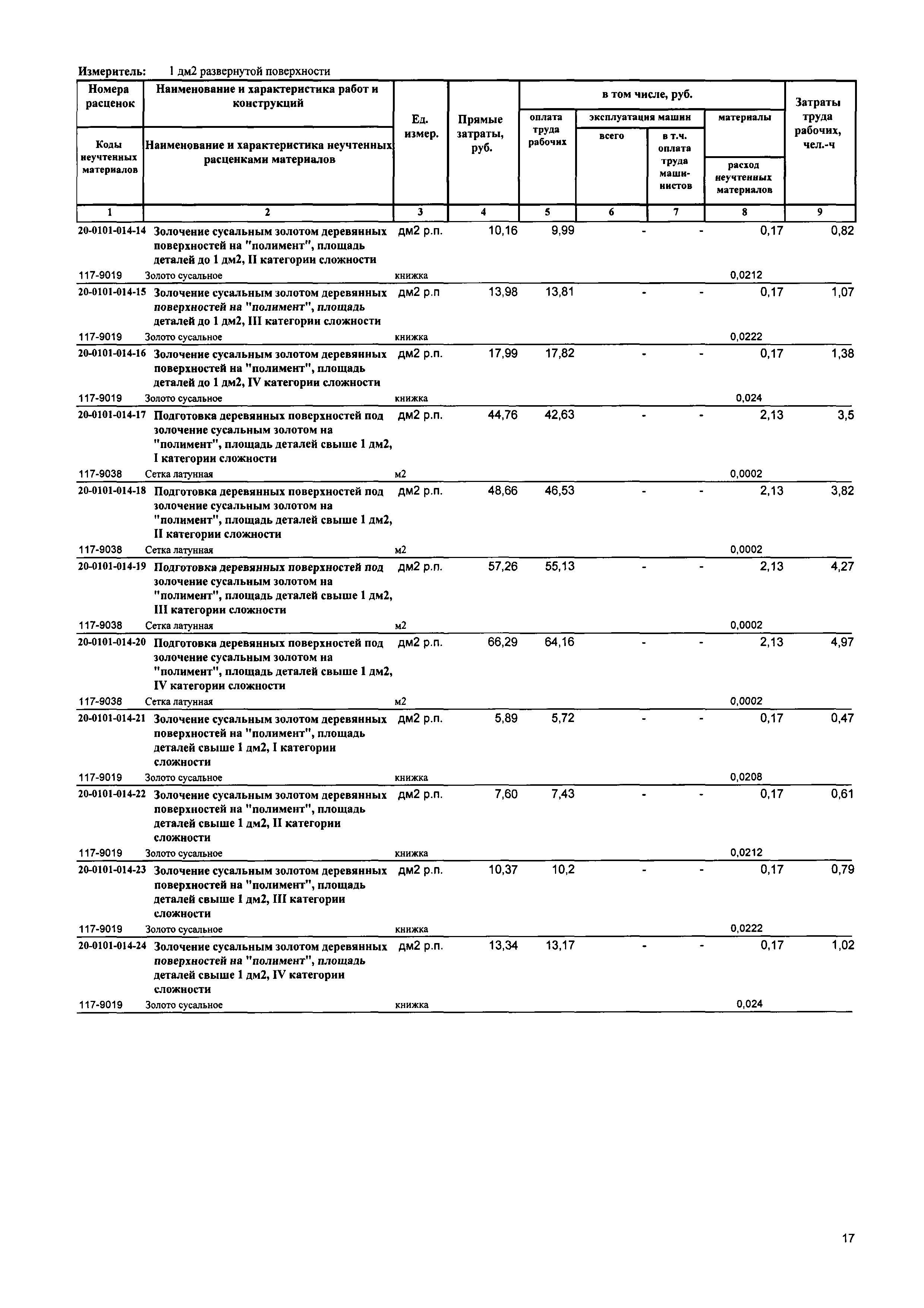 | Область применения: | Расценками сборника предусмотрены работы по реставрации и воссозданию позолоты наружных и внутренних элементов памятников истории и культуры на деревянных металлических и гипсовых поверхностях. |