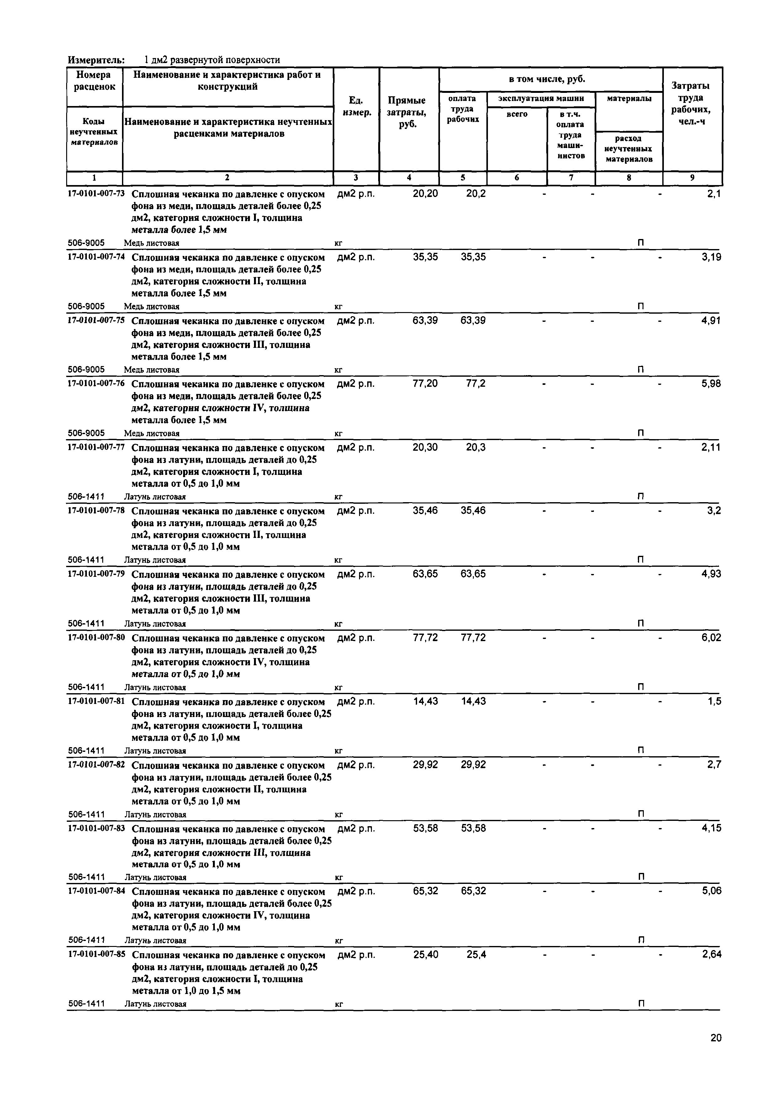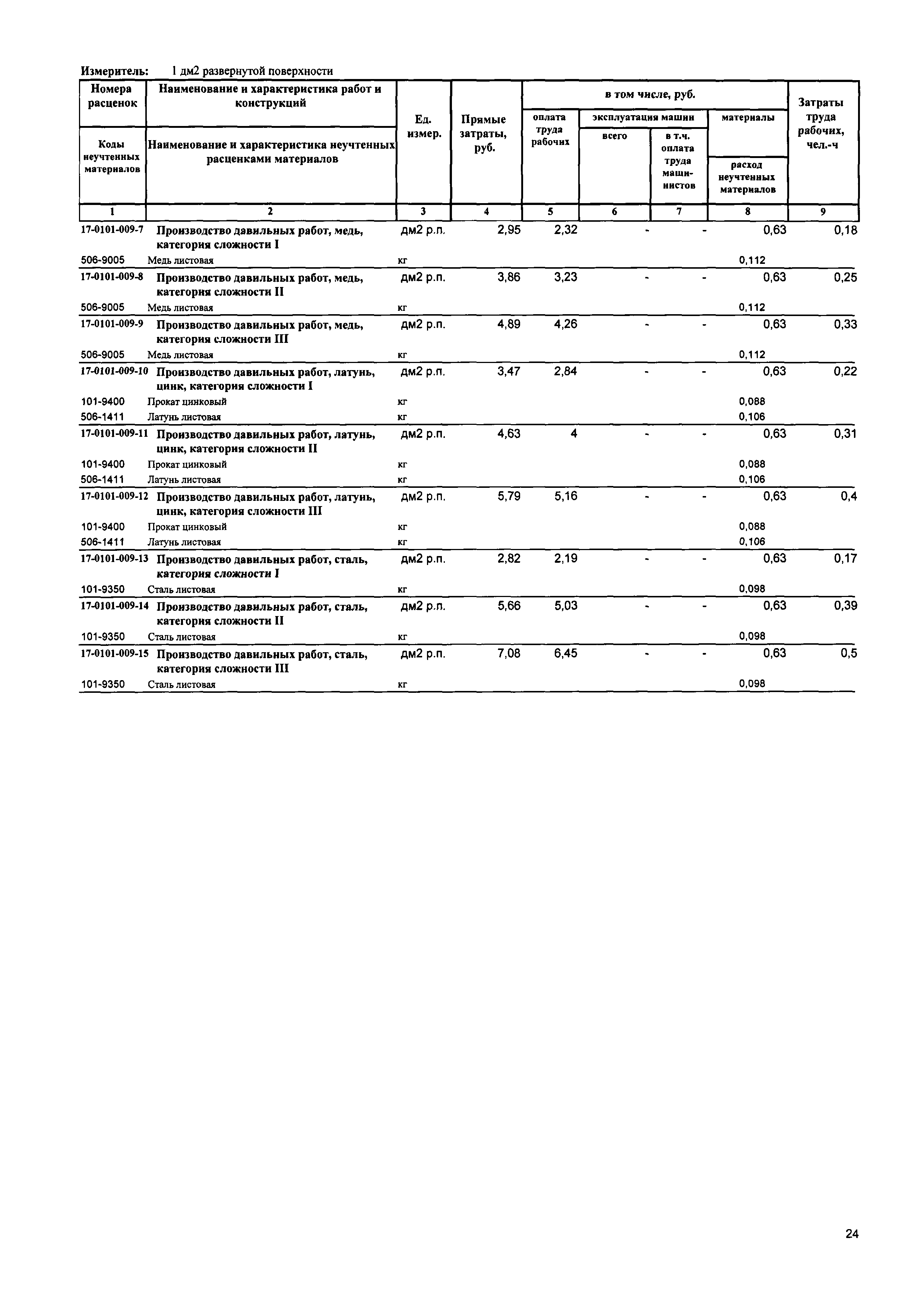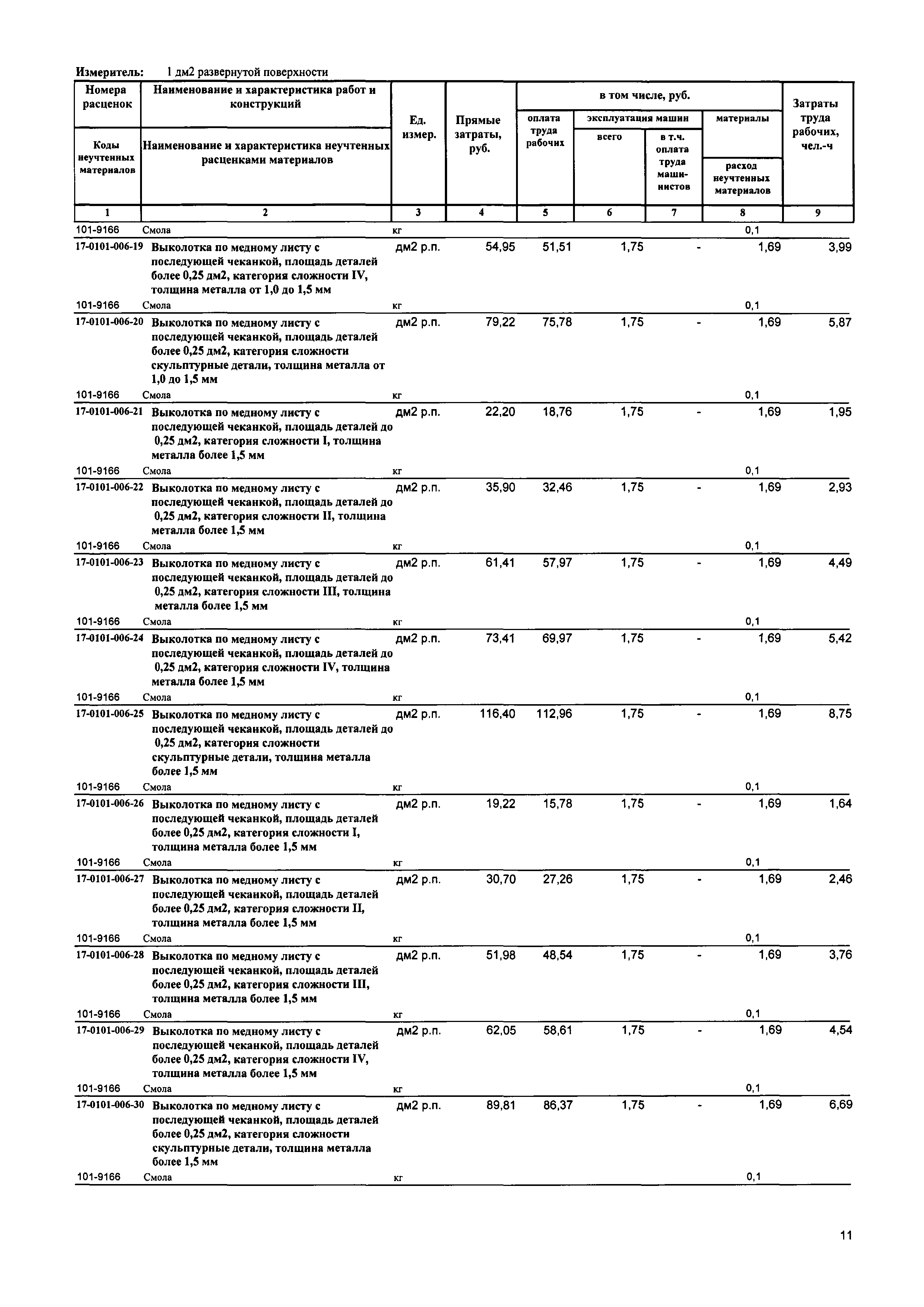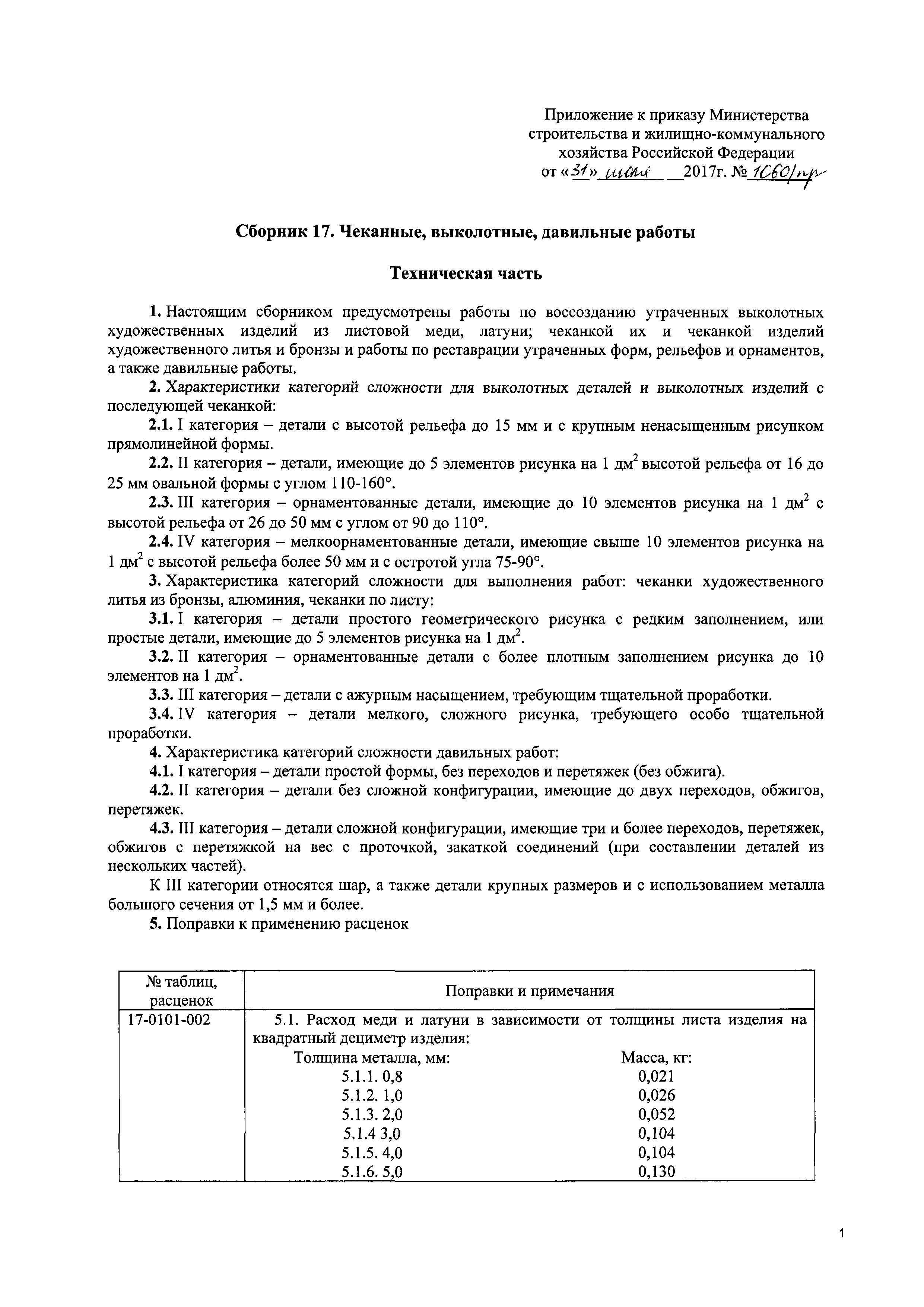 Сборник 17. Чеканные, выколотные, давильные работы. Отраслевые единичные расценки на ремонтно-реставрационные работы по памятникам истории и культуры| Статус: | действует | | Название рус.: | Сборник 17. Чеканные, выколотные, давильные работы. Отраслевые единичные расценки на ремонтно-реставрационные работы по памятникам истории и культуры | | Дата добавления в базу: | 01.01.2018 | | Дата актуализации: | 01.01.2021 | | Дата введения: | 31.07.2017 | | Область применения: | Сборником предусмотрены работы по воссозданию утраченных выколотых художественных изделий из листовой меди, латуни; чеканкой и их чеканкой изделий художественного литья и бронзы и работы по реставрации утраченных форм, рельефов и орнаментов, а также давильные работы. | | Оглавление: | Техническая часть | | Утверждён: | 31.07.2017 Минстрой России (Russian Federation Minstroy 1060/пр)