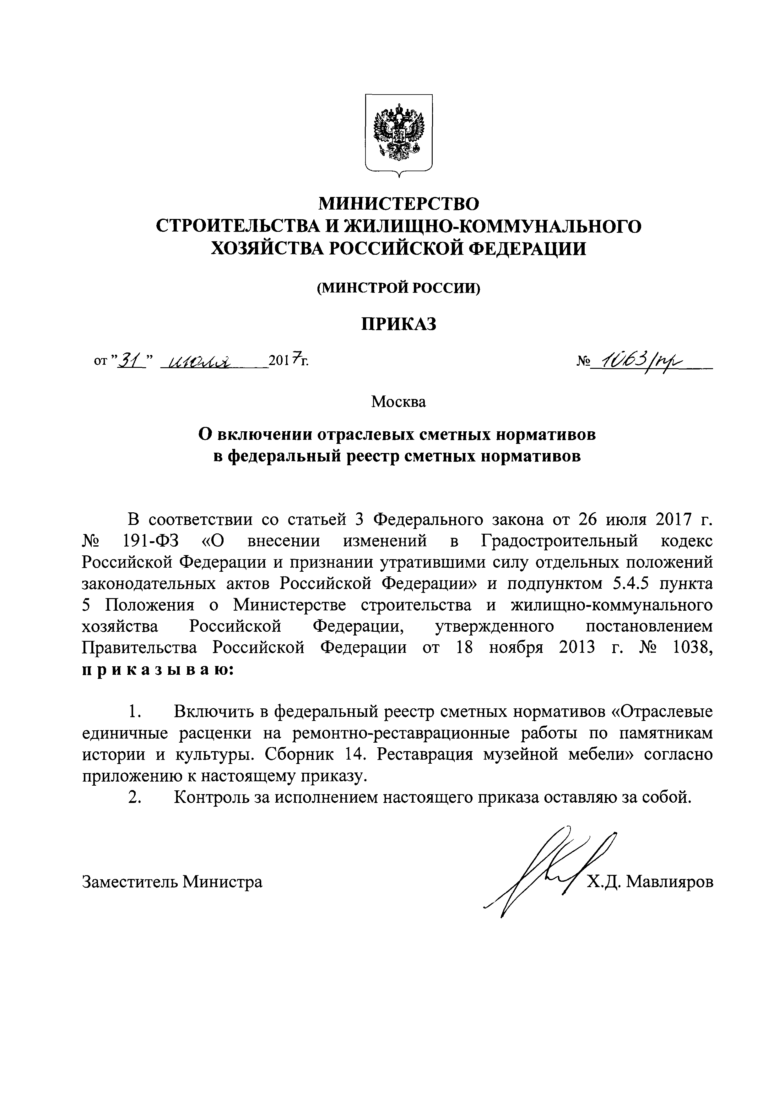 | Утверждён: | 31.07.2017 Минстрой России (Russian Federation Minstroy 1063/пр)