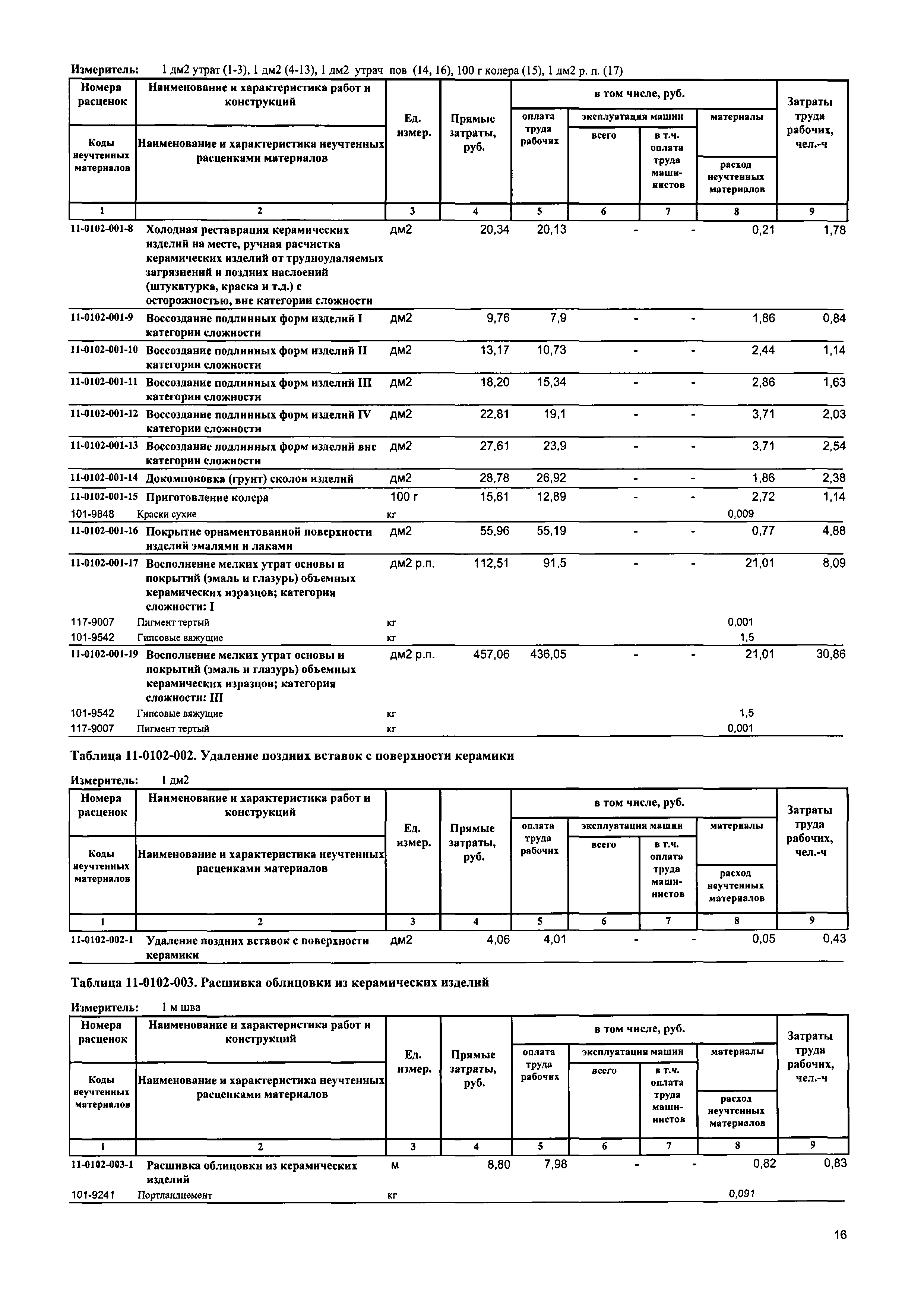 | Область применения: | Нормами и расценками сборника предусмотрены работы по воссозданию и реставрации керамического декора памятников истории и культуры (изразцы, плитки, черепица, керамические фигурные камни древнего образца). |