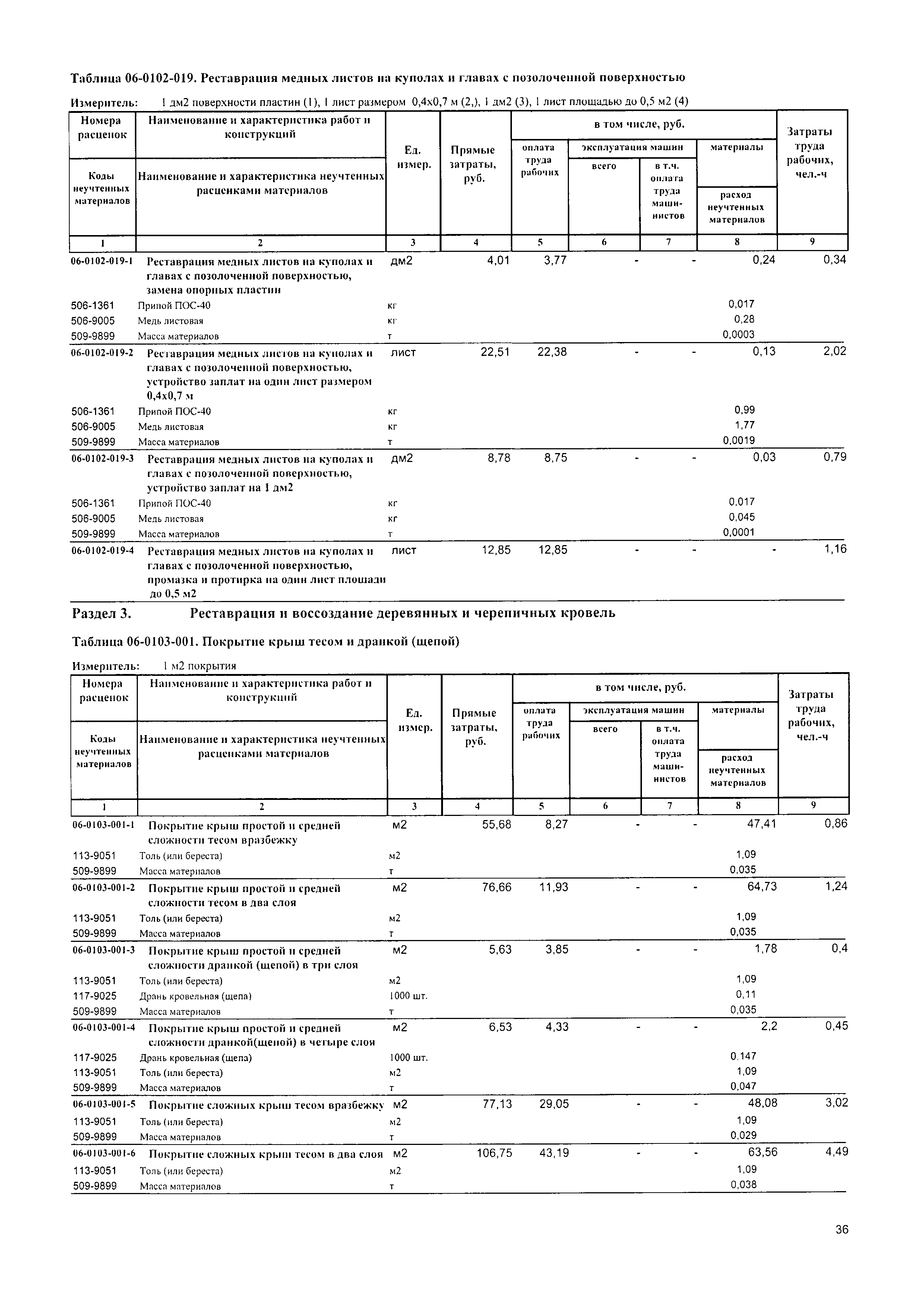 | Область применения: | Расценки сборника предусматривают реставрацию и воссоздание кровель памятников культуры, отличающихся от современных сложностью форм, материалом покрытия, способом крепления. |