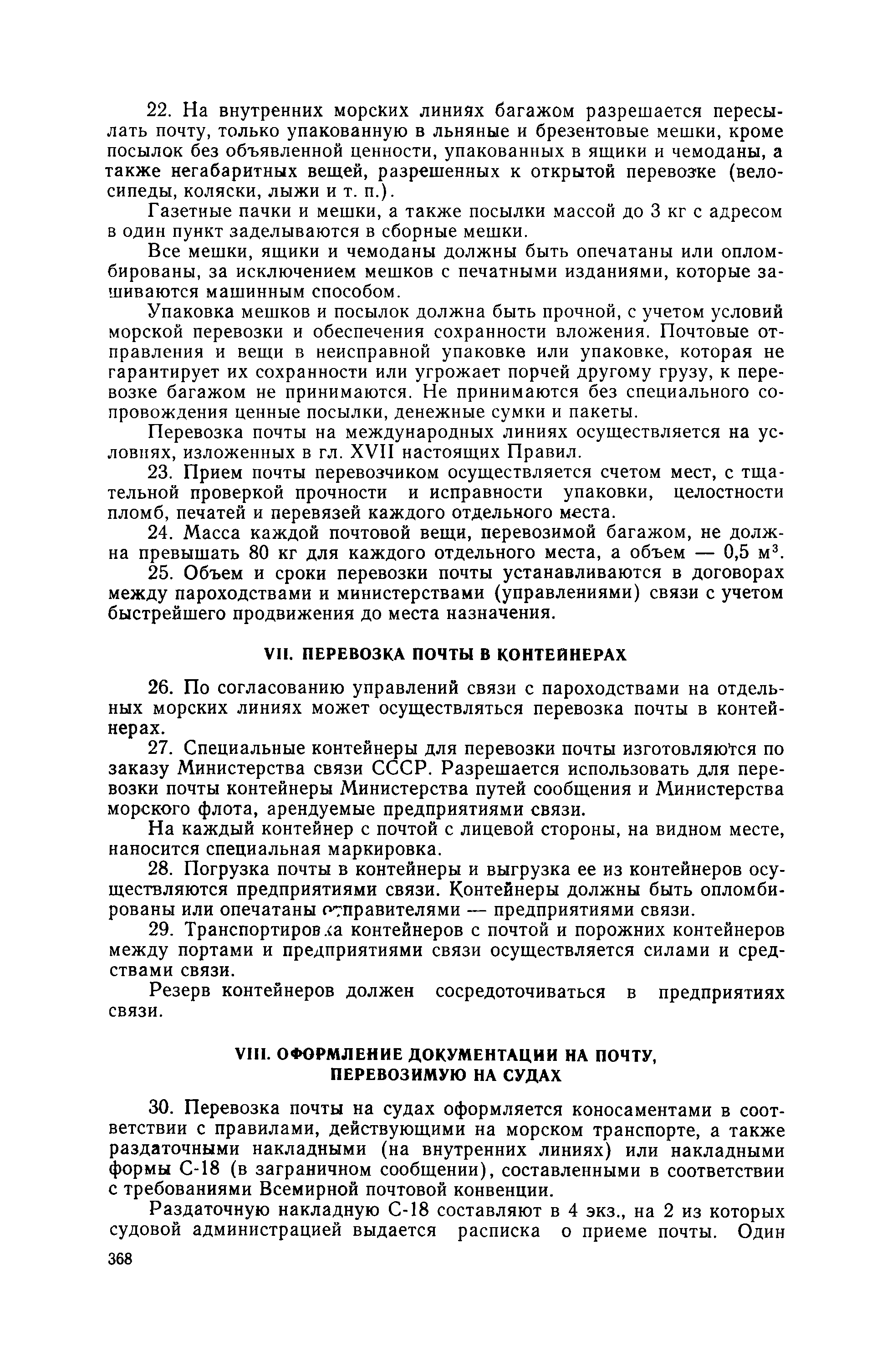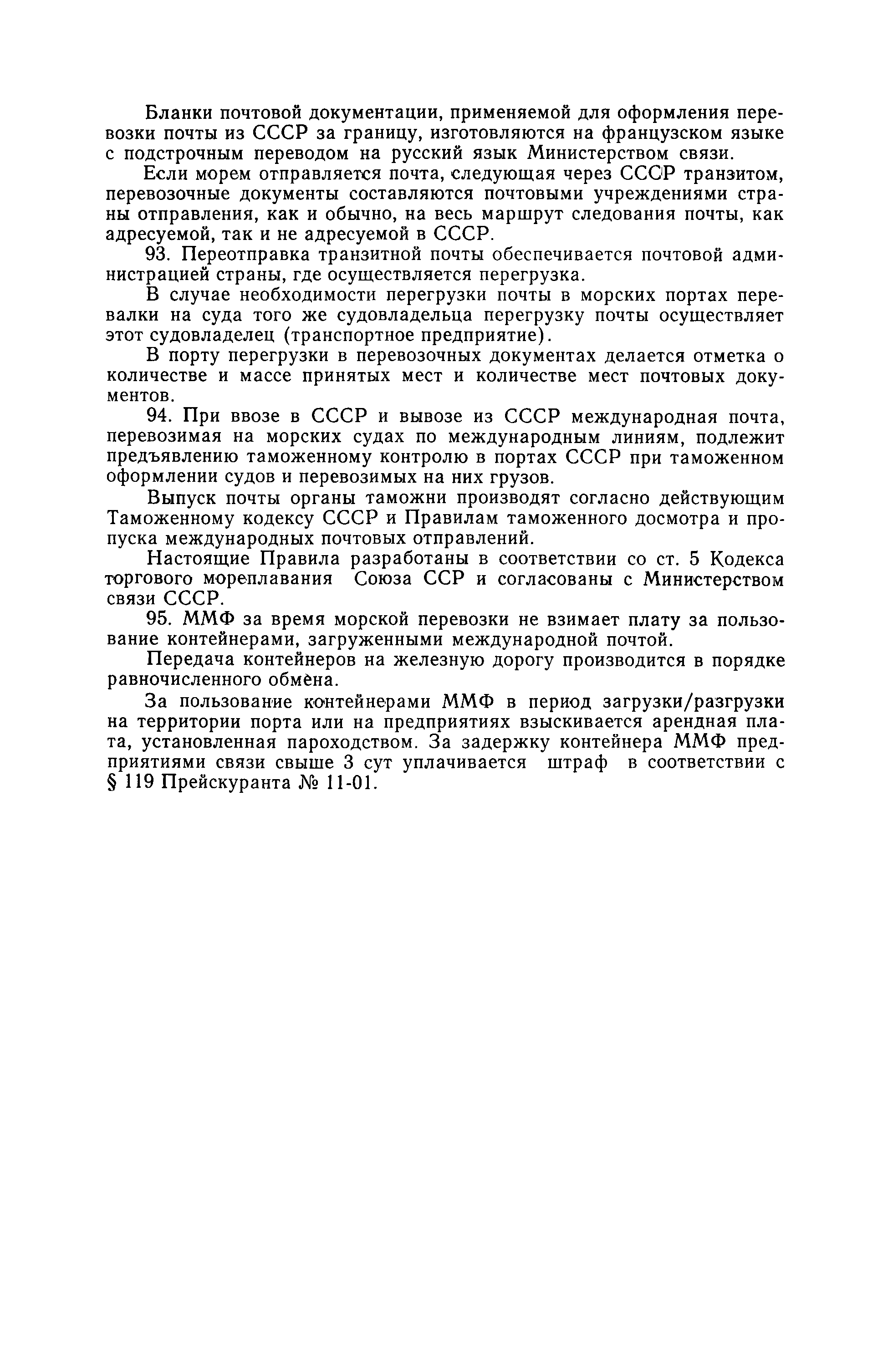 | Область применения: | Правила распространяются на все виды почтовых перевозок на внутренних и международных линиях морским транспортом Министерства морского флота СССР. |