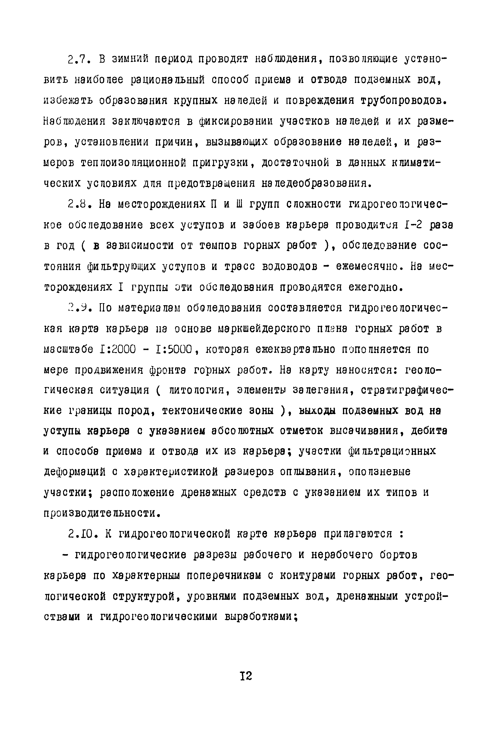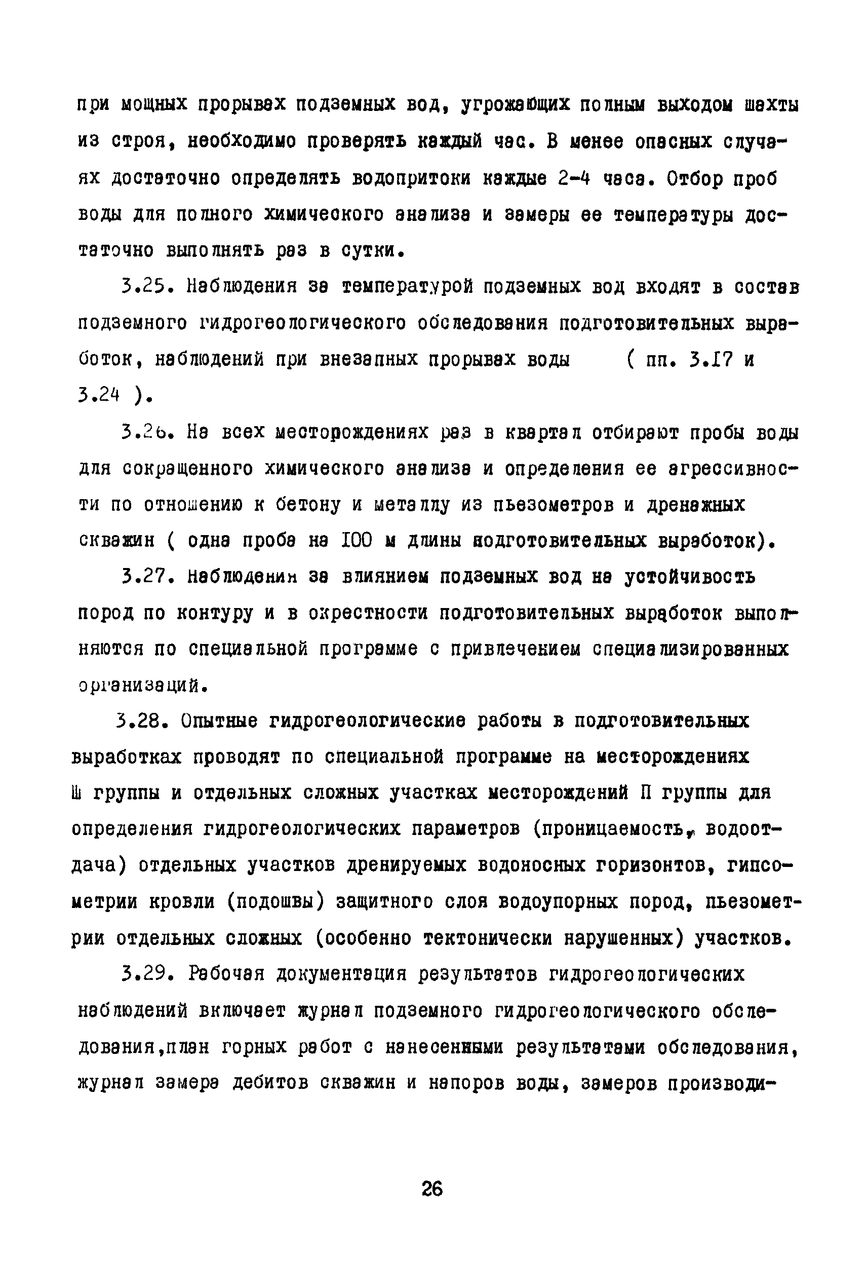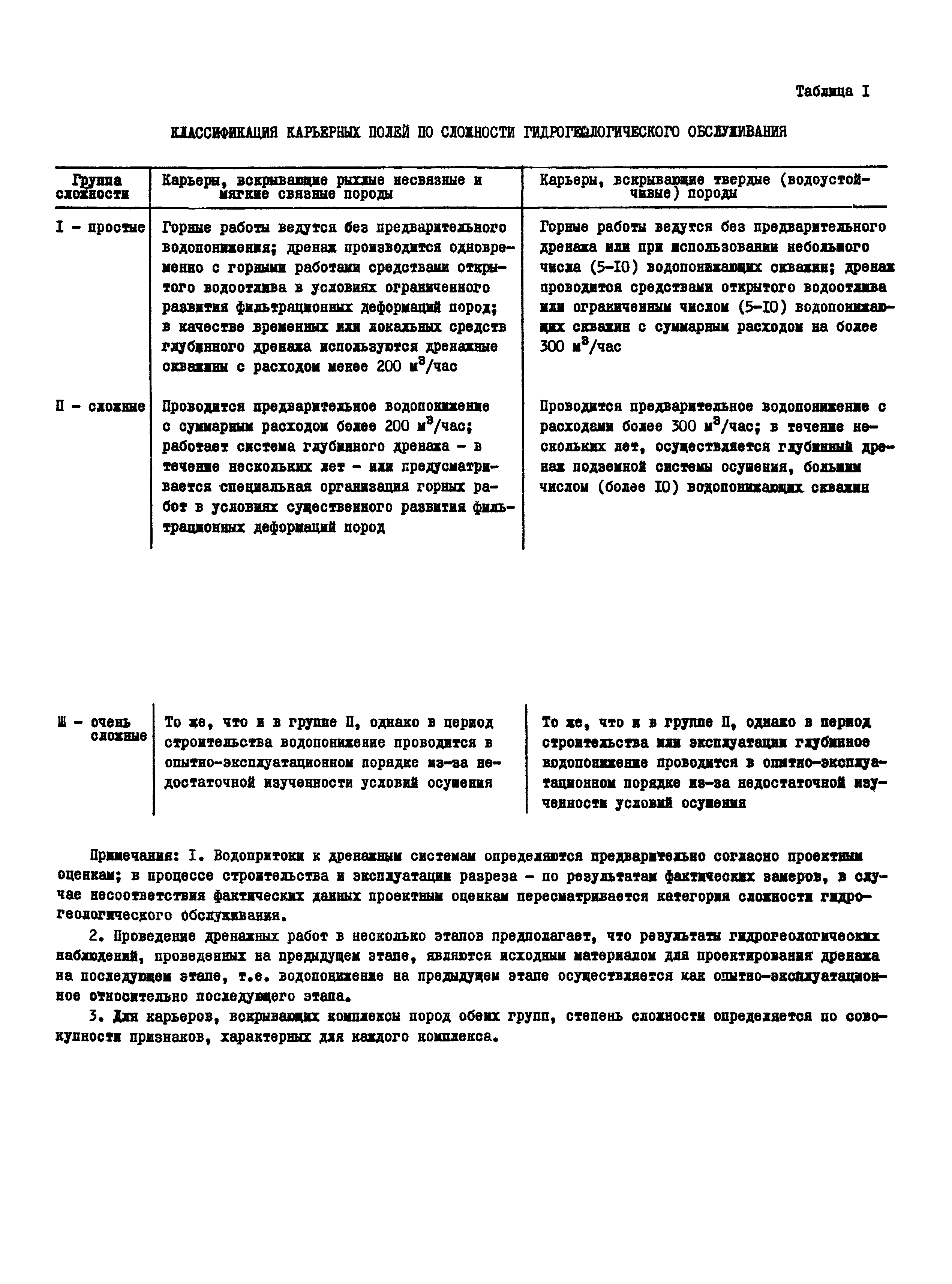 Методические указания по гидрогеологическому обслуживанию угледобывающих предприятий| Статус: | справочные материалы, мп, тпр | | Название рус.: | Методические указания по гидрогеологическому обслуживанию угледобывающих предприятий | | Дата добавления в базу: | 01.01.2018 | | Дата актуализации: | 01.01.2021 | | Область применения: | В документе изложена классификация месторождений по сложности гидрогеологического обслуживания, приведен состав и объем гидрогеологических наблюдений. Рассмотрены цели, состав, методика и объем наблюдений при открытом и подземном способах разработки месторождений, а также содержание гидрогеологической документации | | Оглавление: | 1 Общие положения 2 Гидрогеологические наблюдения в открытых горных выработках Гидрогеологическое обследование карьера Наблюдения за строительством и эксплуатацией внутрикарьерных дренажных устройств Специальные гидрогеологические наблюдения и исследования 3 Гидрогеологические наблюдения в подземных горных выработках Наблюдения при проходке и эксплуатации шахтных стволов Наблюдения при проходке и эксплуатации подготовительных горных выработок Гидрогеологические наблюдения на участках ведения очистных работ Наблюдения за затопленными горными выработками 4 Гидрогеологическое обслуживание дренажных скважин Наблюдения при бурении и оборудовании дренажных скважин Наблюдения за изменением дебита дренажных скважин Наблюдения за уровнями подземных вод Контроль за состоянием дренажных скважин Специальные гидрогеологические наблюдения Документация наблюдений и их интерпретация 5 Гидрологические наблюдения на поверхности карьерных и шахтных полей Гидрогеологическое обследование поверхности при открытой разработке месторождений Гидрогеологическое обследование поверхности при подземной разработке месторождений Стационарные наблюдения за режимом подземных и поверхностных вод 6 Гидрогеологическая отчетность | | Разработан: | ВНИМИ